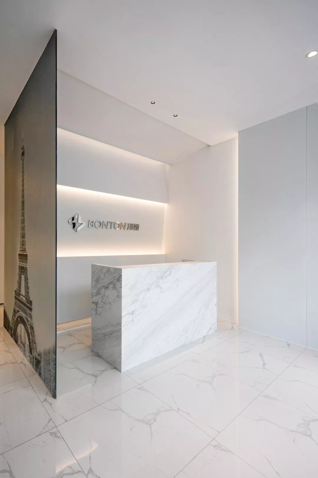 人们对一家公司的第一印象往往是从前台的设计得到的,也是一个公司的品牌形象和文化。前台设计师采用大理石材质,是因为大理石天然的纹理善于营造独特的空间质感,像一件时尚而又魅力的艺术品。