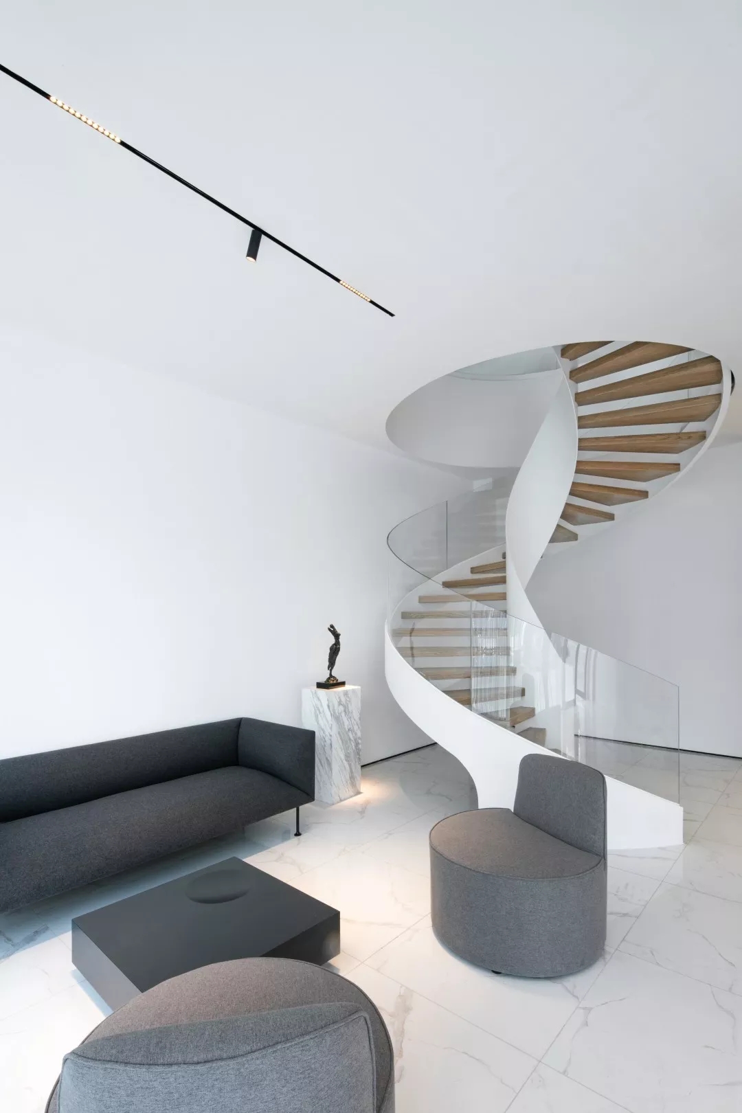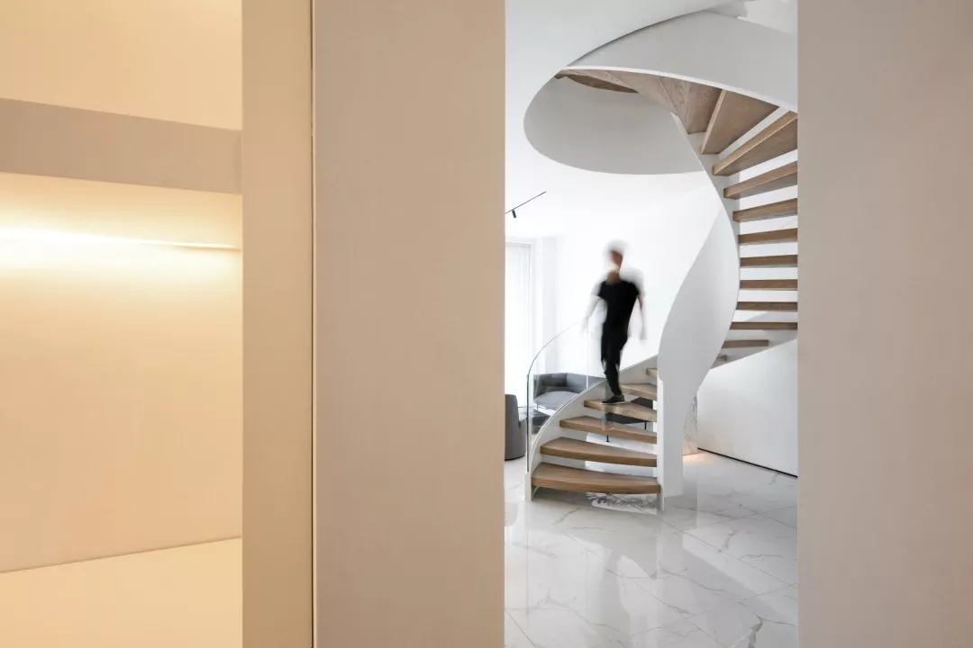 楼梯作为衔接两个空间重要的桥梁, 它的美并不是一种偶然,因为其中藏有一个重要的数学美学定律——斐波那契数列。除了不可动摇的功能性, 设计师让它呈现出更立体的装饰美感。
