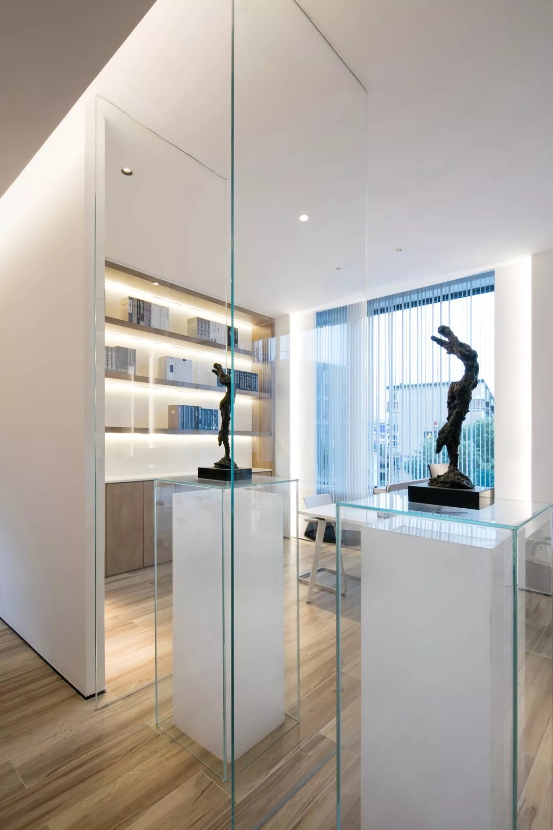 经典的木色、通透的玻璃与白色金属等细腻的材质碰撞,为空间中的细节添增更为丰富的层次。空间的铺叙看似平淡素雅,设计将思考的切面还原本质,由此映射出办公的充实和情感的丰富。