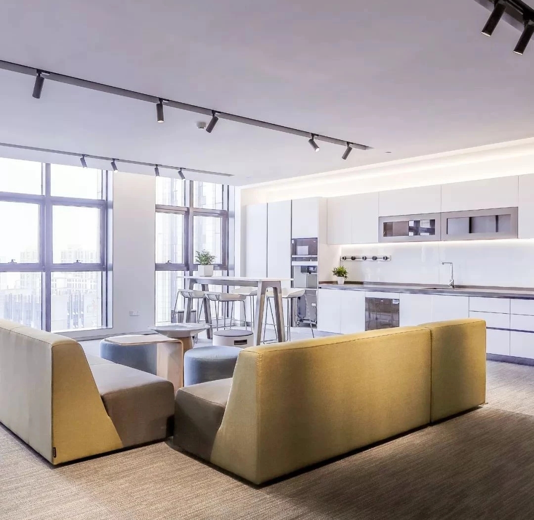 时尚、现代、稳重是三个层面的不同需求,如何平衡三个层面的不同需求,如何将一个传统企业1.0的办公环境平稳的升级到当代的3.0的版本是本次设计中需要重点考虑的问题。
