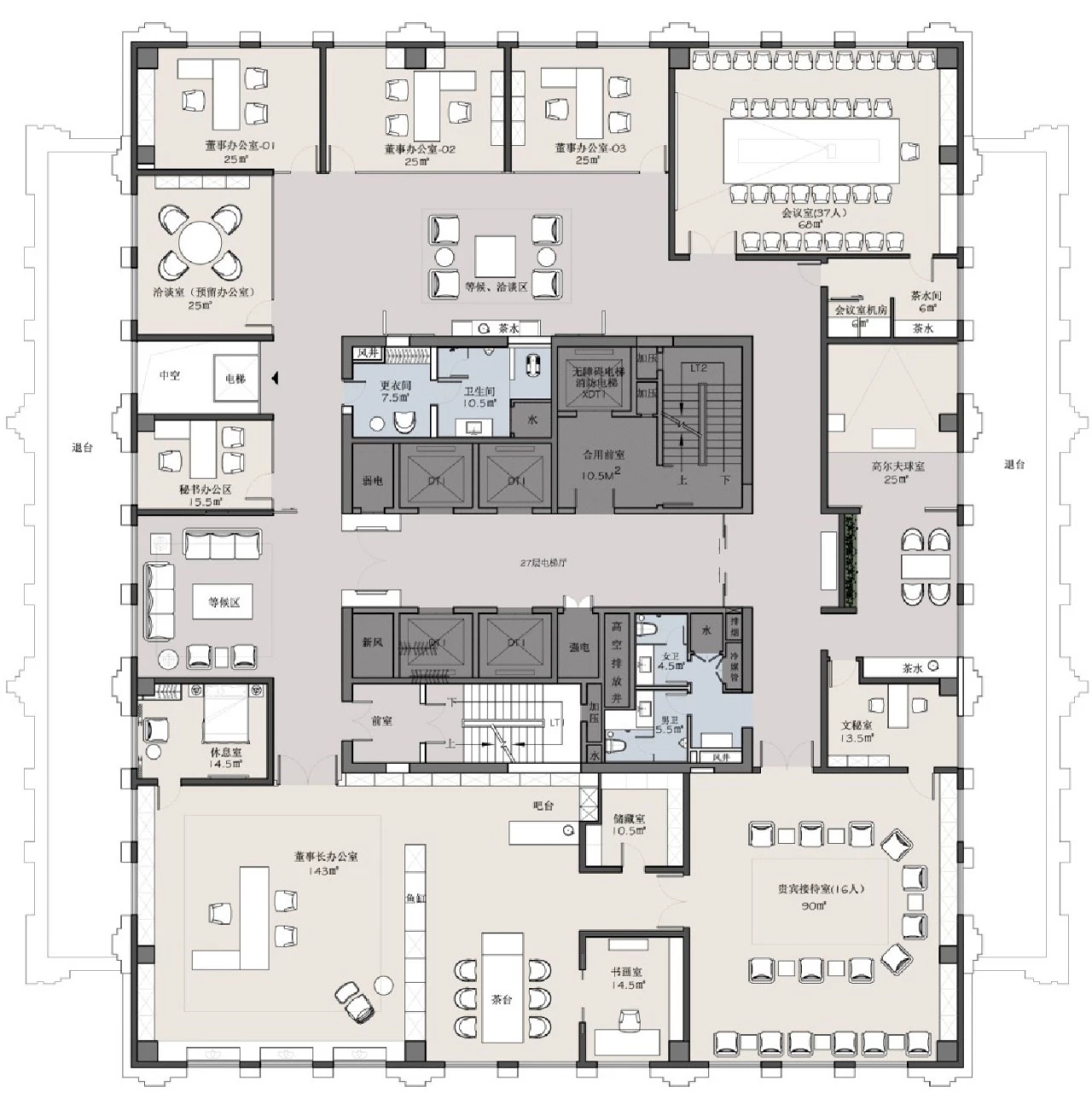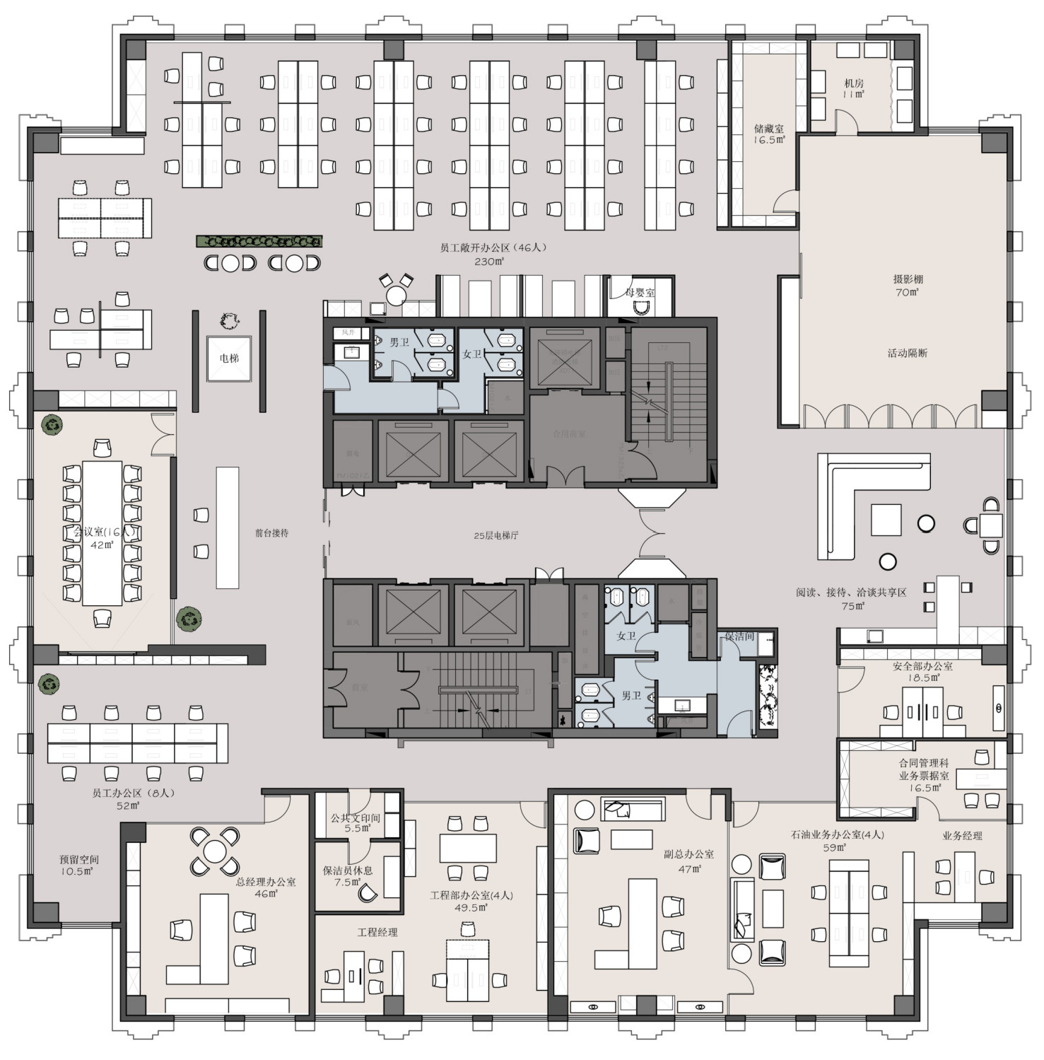 项目的设计策略是“平衡之道”,平衡不代表中庸和平庸,而是对于度的把握,因此,我们选取中间楼层,当代能源企业作为基准,向下一层更国际时尚,但不另类,向上一层更稳重,品质但不失活力。