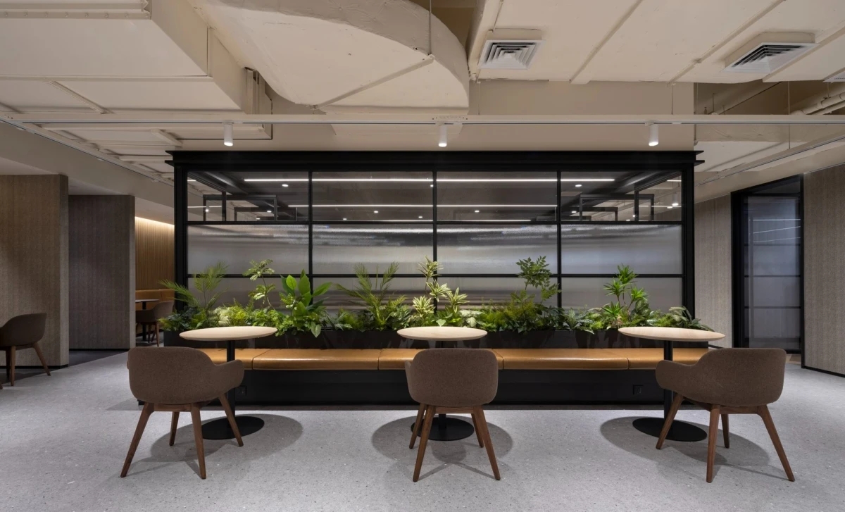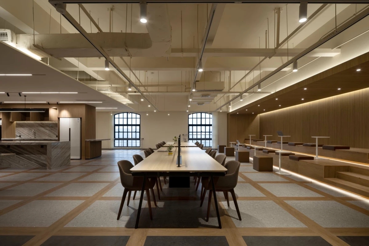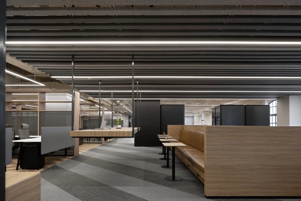 空间的色调以黑色、灰色和棕色为主,这种光滑而简约的调色板贯穿了整个办公室。墙面、地板、家具上的颜色无缝衔接,创造了视觉上的统一感。深沉的色调营造了一种现代、优雅且有层次的氛围,既符合品牌的时尚前瞻性,又不失亲和力。这种色彩方案的设计使得空间既具现代感,又保持着温馨和舒适的氛围,为员工提供了一个理想的工作环境。