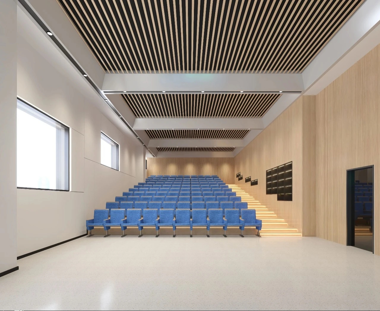 入口大堂的天花设计上遵循人的视觉心理,利用竖向线条的元素加强了空间的纵深感。并以此为模数延伸至大堂,突出空间的连贯性,将原本割离的两个空间连接起来,丰富了流线上的空间体验。同时独特的造型也体现了业主施工工艺的专业性。