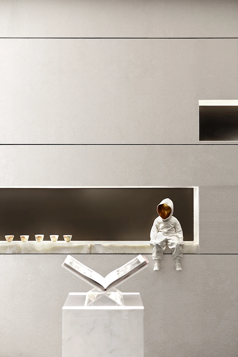 模糊空间界限是一种既非完全私密,又非完全公共的区域,它的出现象征着格子化的传统空间将会渐渐退居幕后,而代表着一种透明的互动空间开始登场;让每个人得到最大程度的释放,轻盈无压,思绪回归明晰,专注于自己的内心。