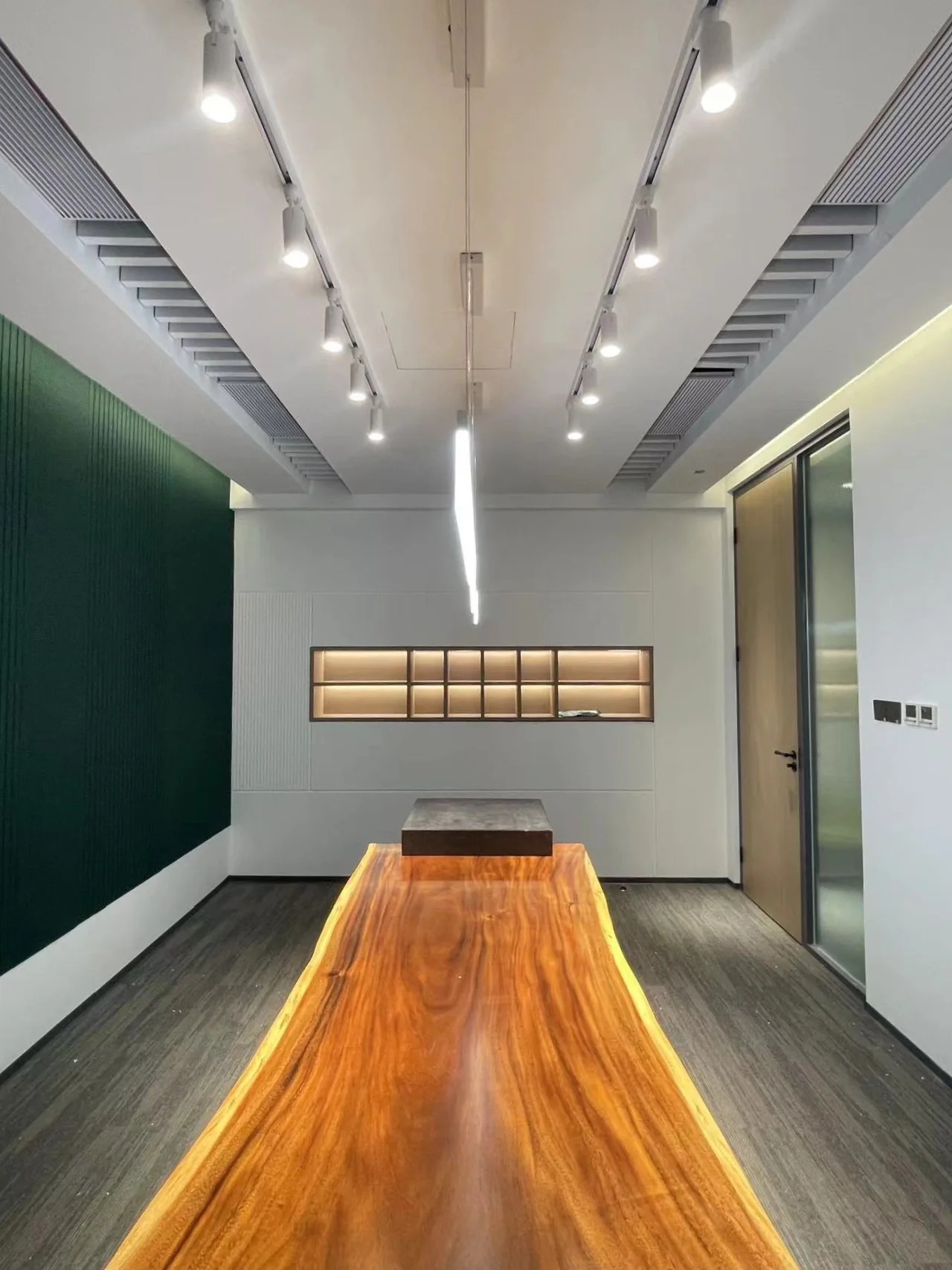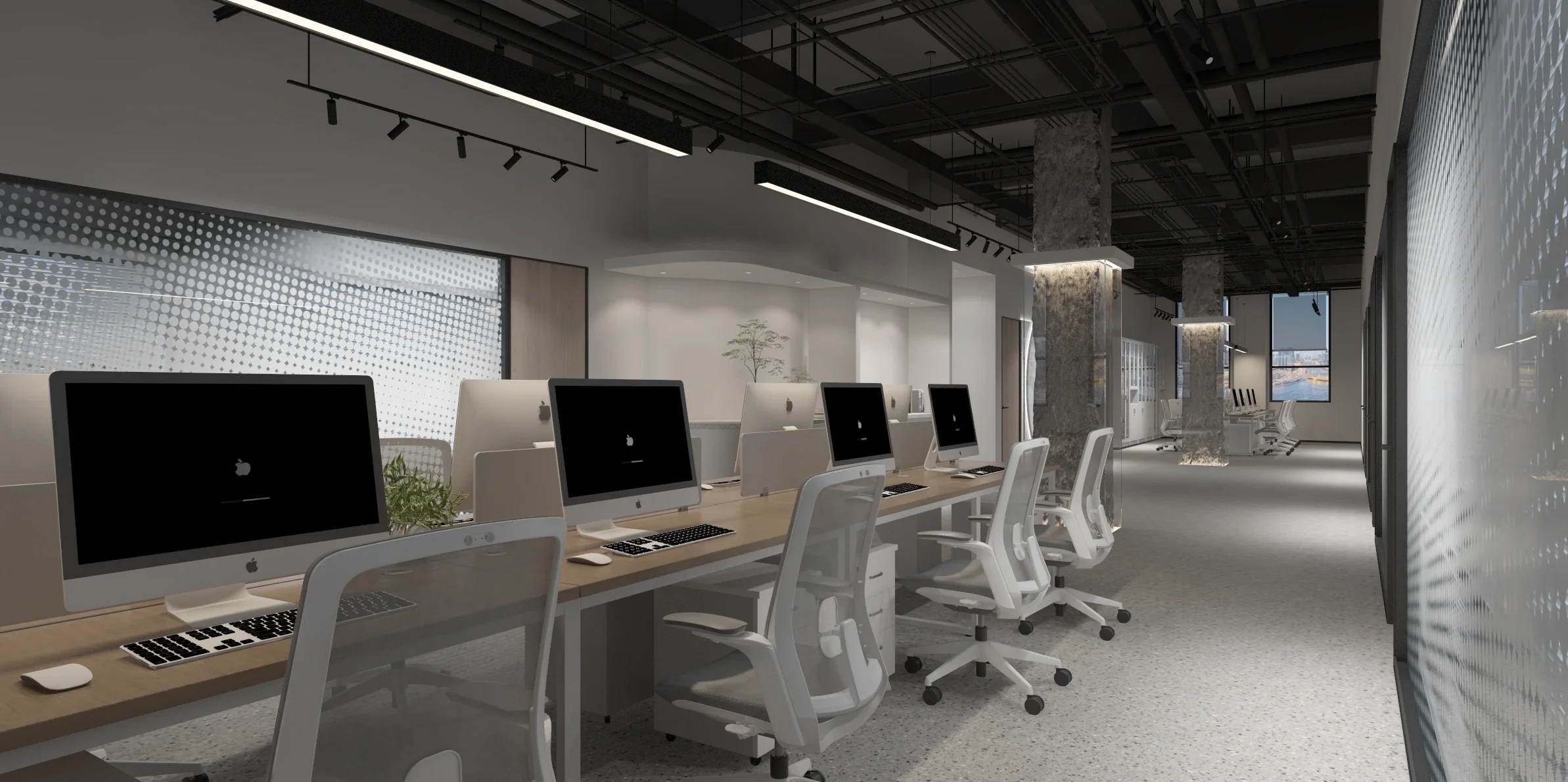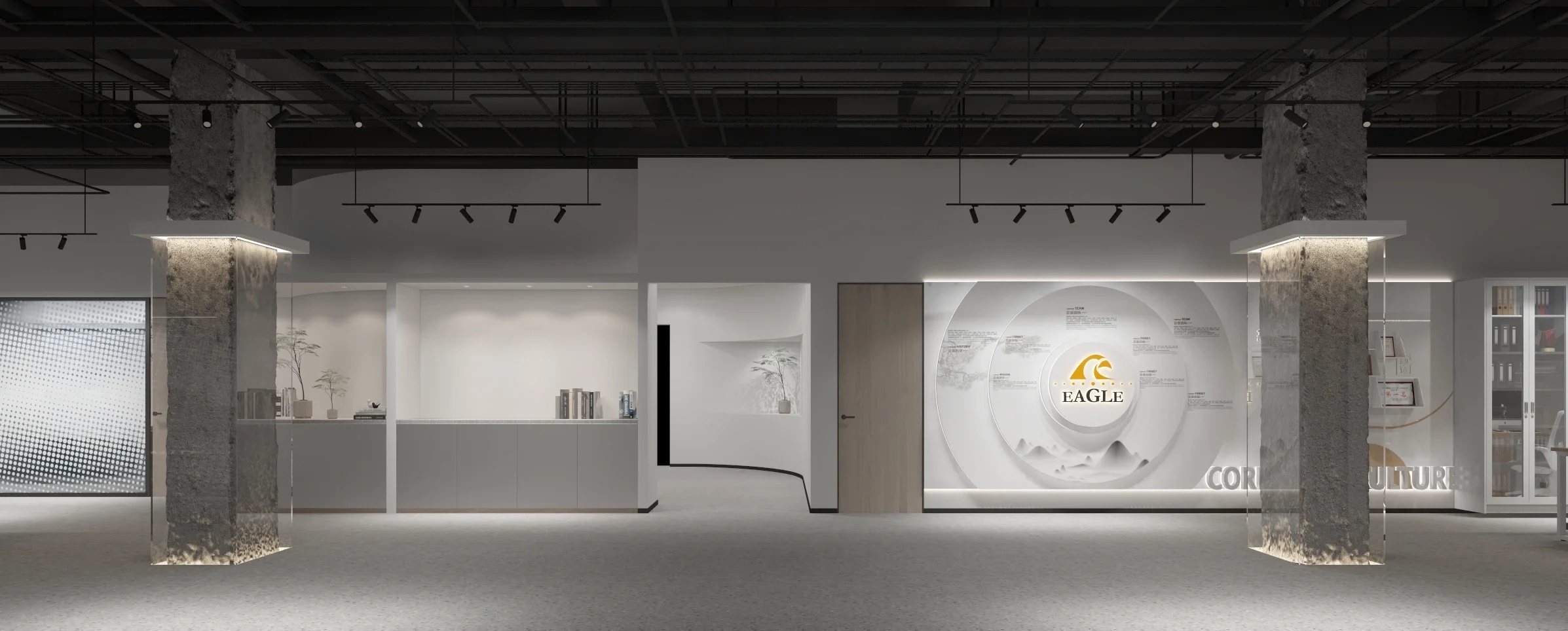 设计伊始,项目遇到了一系列挑战。走廊内的消防栓等固定设施限制了空间布局,为解决这一问题,设计师综合考虑了空间可行性和实用性,创造了更流畅的通道长廊。 正门处缺乏过渡空间导致背景墙不完整,访客流量受阻。因此,设计师对门口空间进行了重新布局和优化,并完善了背景墙,以提升过渡效果和整体观感。 设计师为打造更加流畅的区域布局,将大堂和茶水区结合,形成相互连接的空间。在利用良好照明条件的基础上,设计师重新设计功能区域,创造了一个开放舒适的开放办公空间。这一系列的改进,为整体设计提供了一个更流畅、调理的布局思路,增强了空间的合理性和逻辑性。