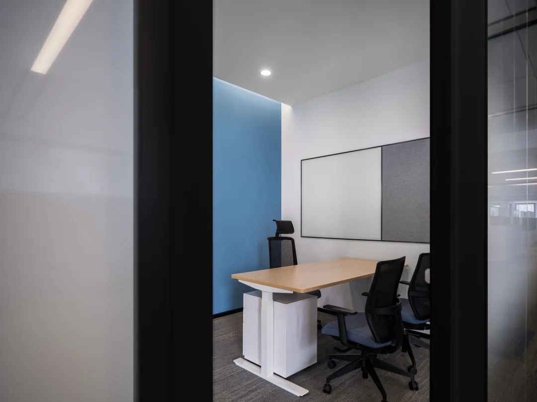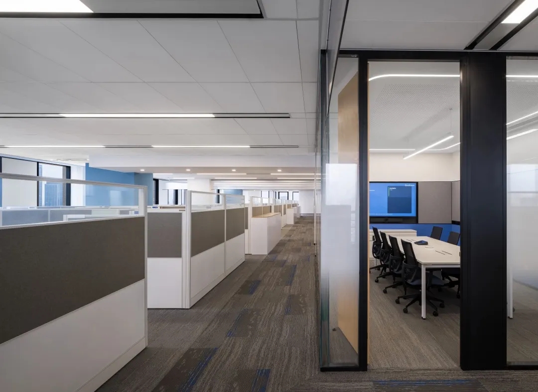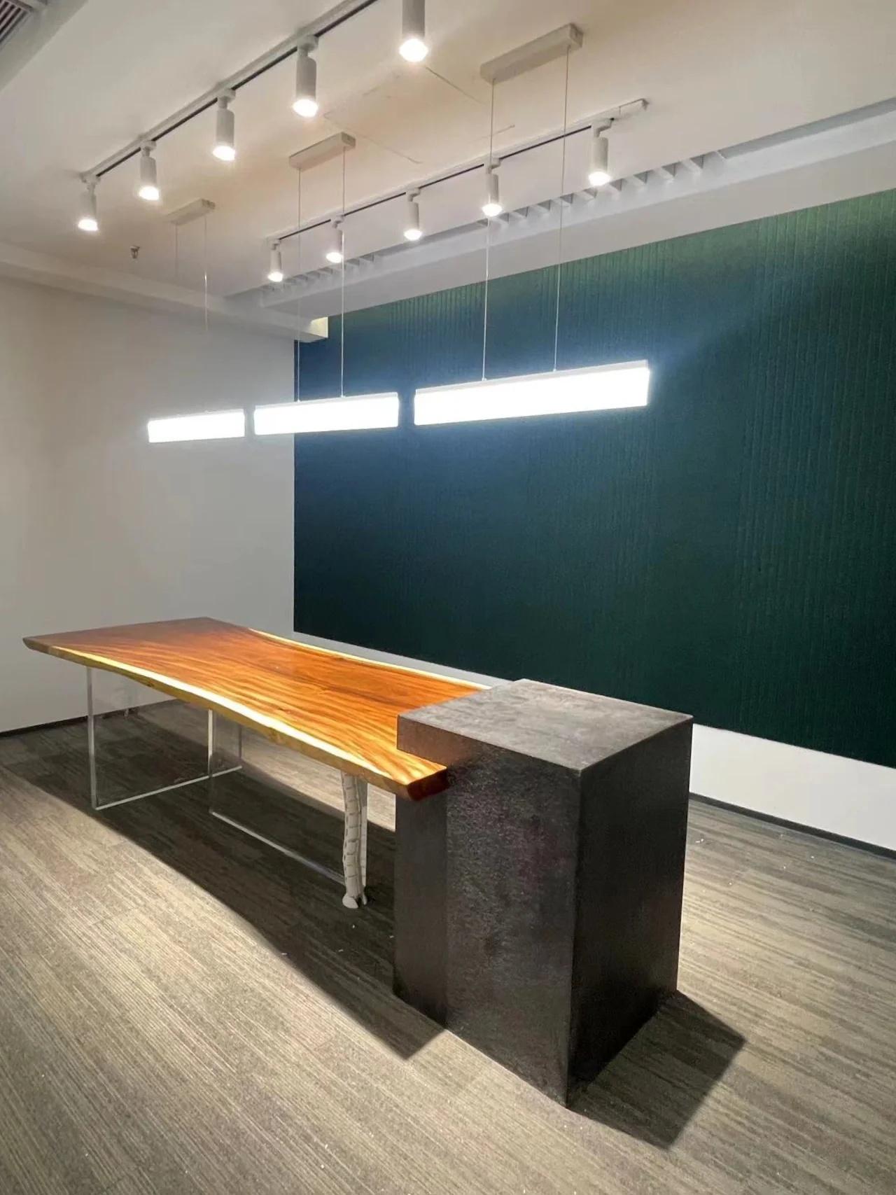 设计伊始,项目遇到了一系列挑战。走廊内的消防栓等固定设施限制了空间布局,为解决这一问题,设计师综合考虑了空间可行性和实用性,创造了更流畅的通道长廊。 正门处缺乏过渡空间导致背景墙不完整,访客流量受阻。因此,设计师对门口空间进行了重新布局和优化,并完善了背景墙,以提升过渡效果和整体观感。 设计师为打造更加流畅的区域布局,将大堂和茶水区结合,形成相互连接的空间。在利用良好照明条件的基础上,设计师重新设计功能区域,创造了一个开放舒适的开放办公空间。这一系列的改进,为整体设计提供了一个更流畅、调理的布局思路,增强了空间的合理性和逻辑性。
