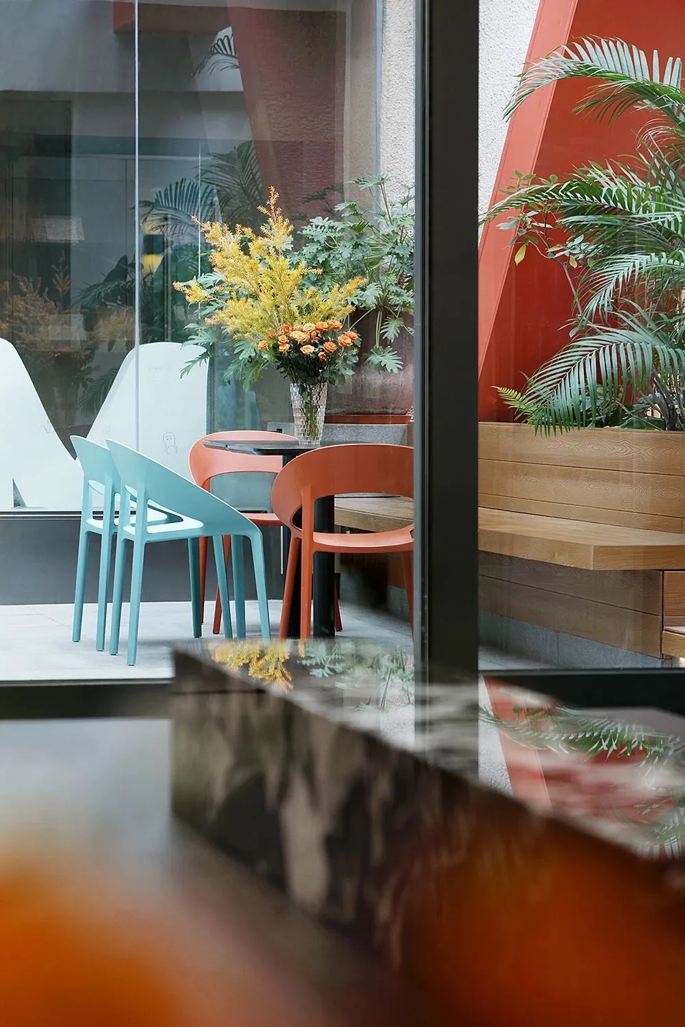 透过艺术玻璃若影若现的热带绿植,同样不动声色地彰显了Driscoll's怡颗莓不断汲取自然力量的品牌内核;而和土壤同色的Fauteuil de Salon休闲椅,则用来自Jean Prouvé的经典线条,为空间质感注入了坦率与真诚;与此同时,由mdf italia出品的Metodo咖啡桌,也将几何学中的大地美感,释放得既写实又写意。