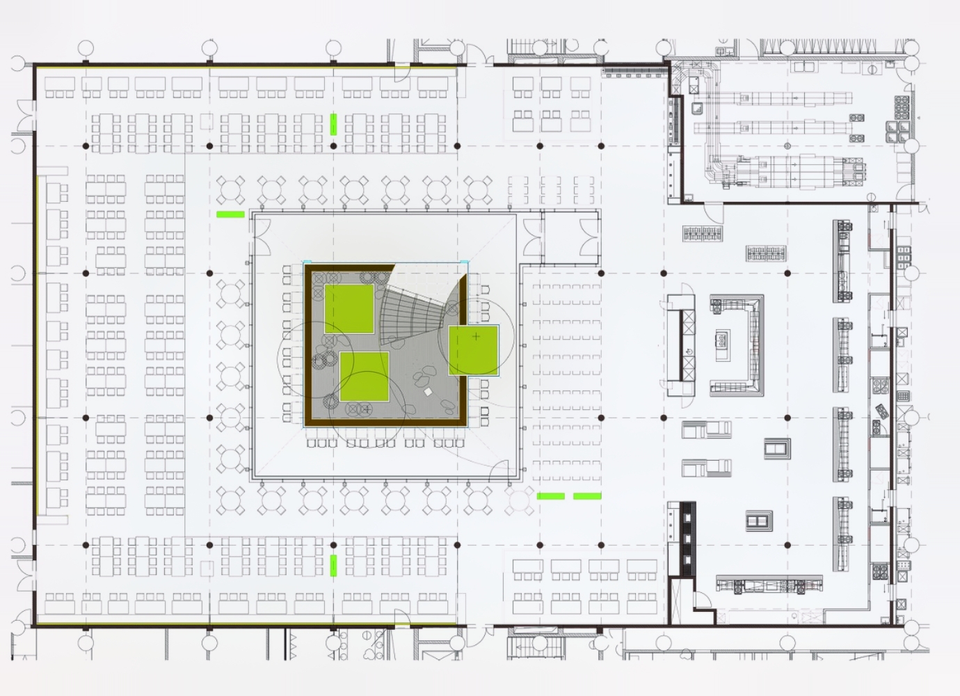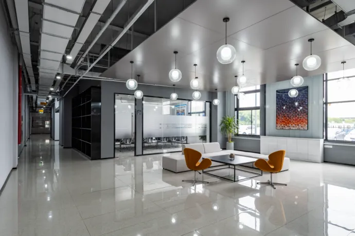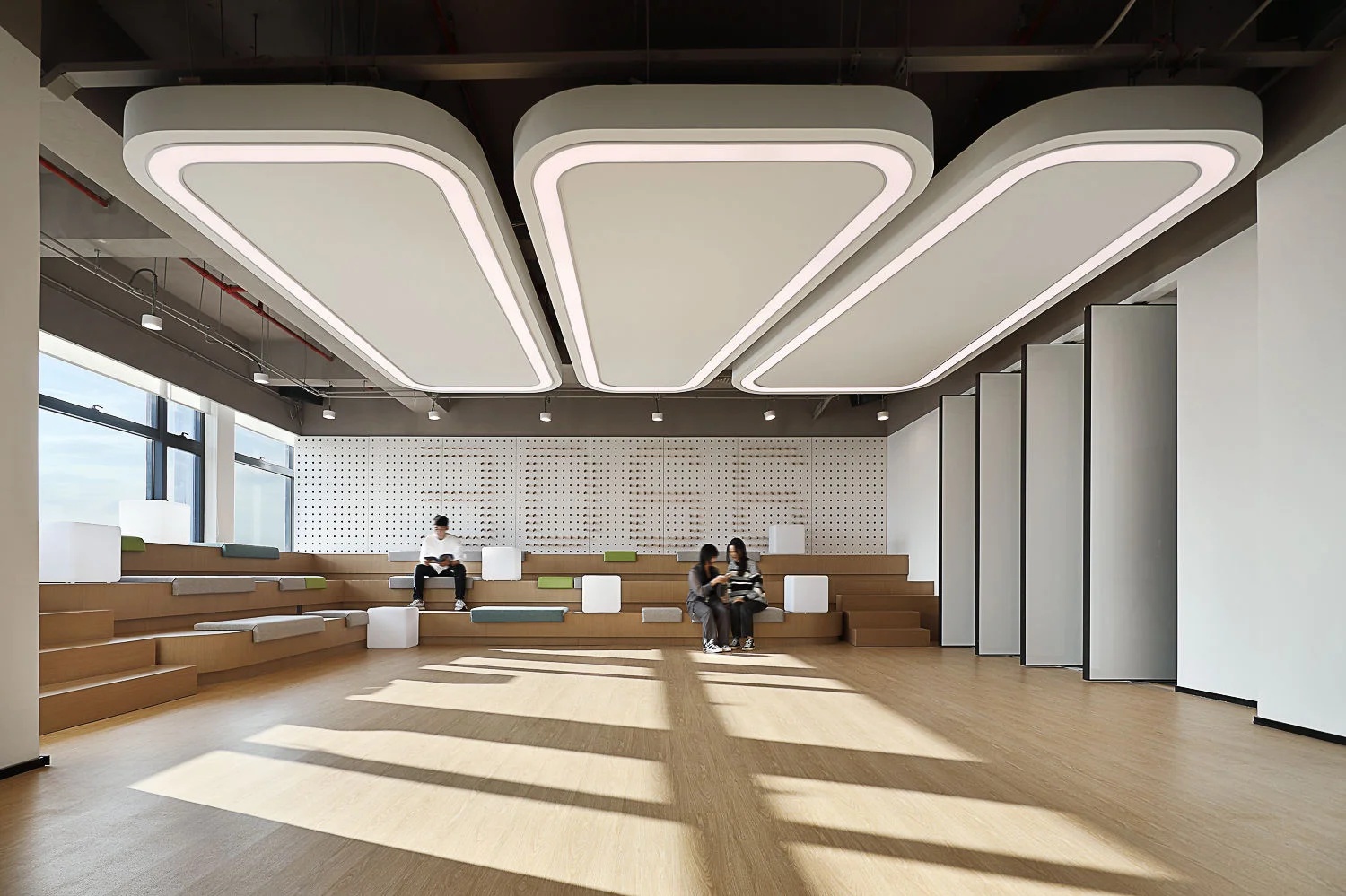 增加了几倍的大堂空间,这样的效果也令业主感到惊喜。多了一个几百平米的活动空间不仅平时可以提升企业形象,尤其是留下良好的第一印象,而且在特殊时刻比如开业聚会也可以在这个空间里举办,做到空间使用上的高度灵活。