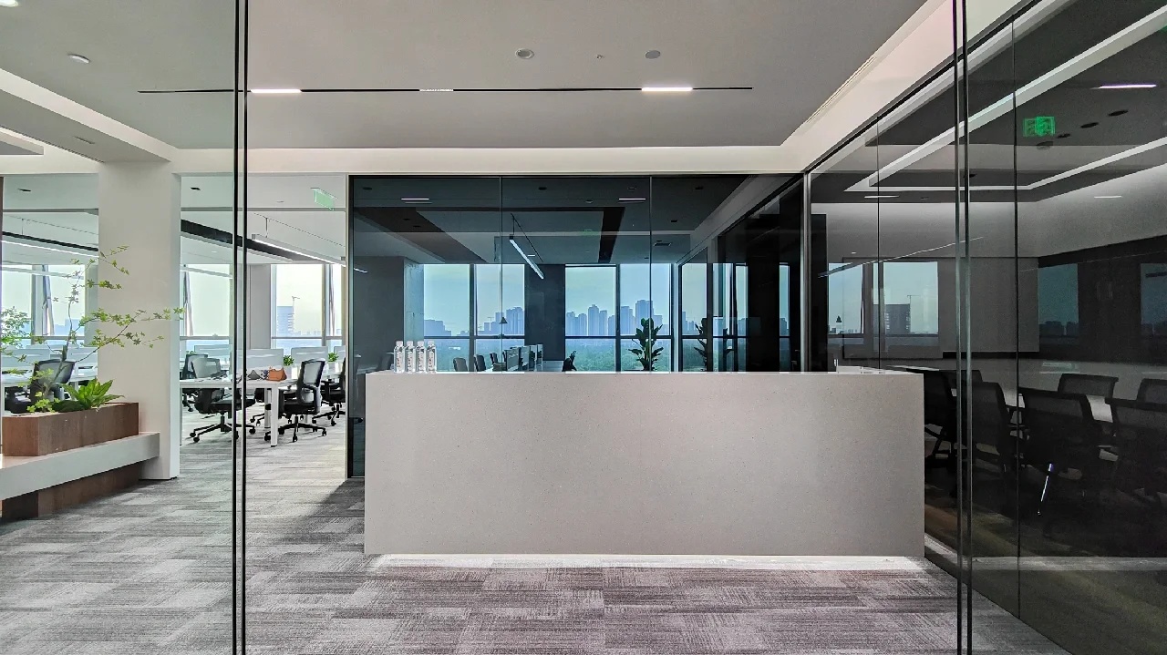 鹏华基金的企业标准红,设计将它运用到了公共办公区域,将企业标准红融入到工位围栏上,办公区域这一抹红与简约大方的白搭配的恰到好处,这不仅串联起了前厅与员工的空间语境,还征着企业与每一位员工心连心,一脉相承的美好寓意。