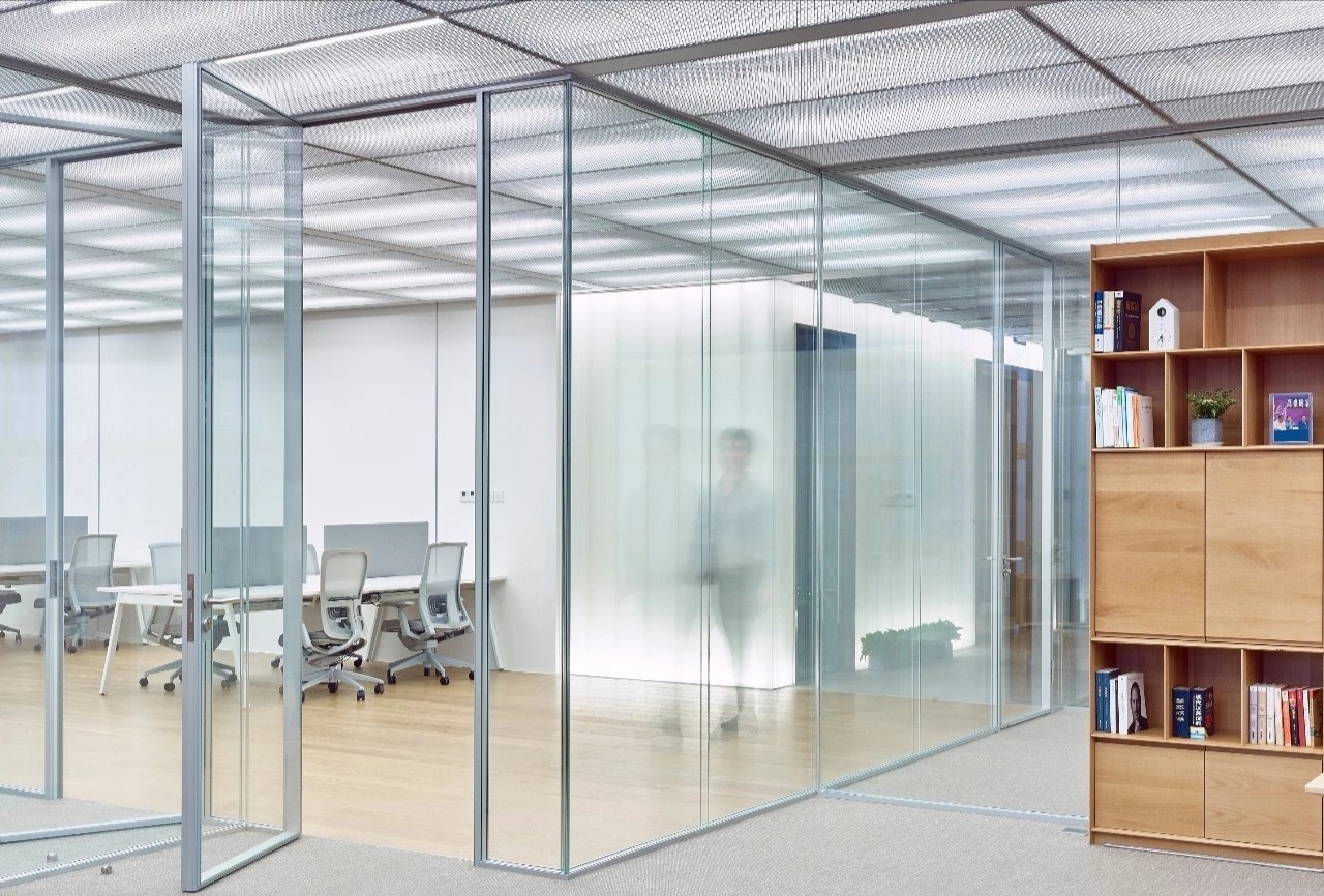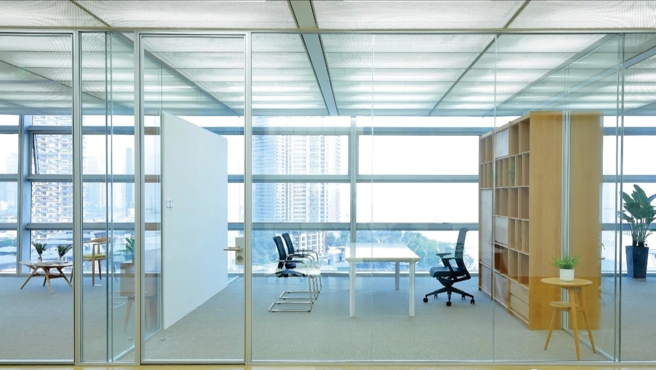 以灰玻作为分隔会议室内外空间的介质,隔间不隔视,既让空间轩敞透亮,又能确保庄重的会议与热烈的讨论不被打扰。同时,在纯粹的色彩搭配加持下,更能让思考挣脱常规的束缚,高效触达各类信息。