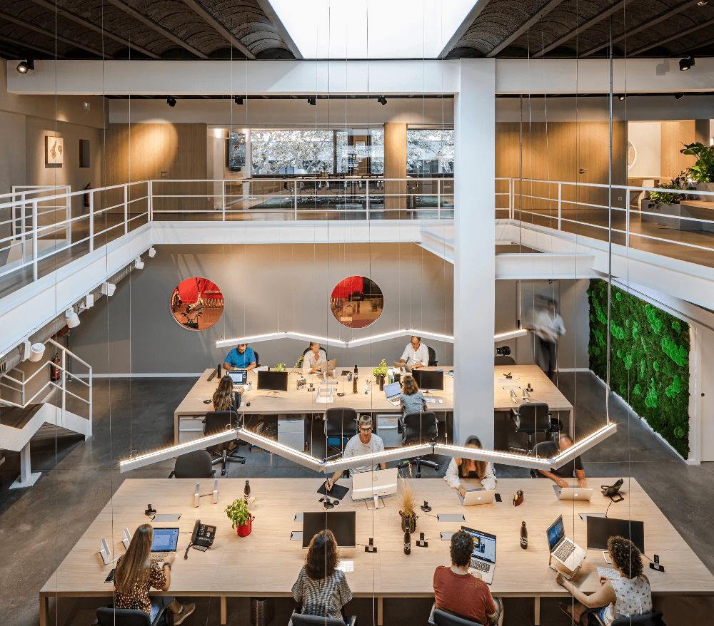 丛林的中心绿洲是莫里拉斯的中心,是生命的源泉,以光线和周围的自然以及三层楼的其余部分从中出现的核心空间为标志。这种开放和包容的垂直建设性元素决定了总部的整个结构:从会议室到组织不同团队和自助餐厅的灵活区域。