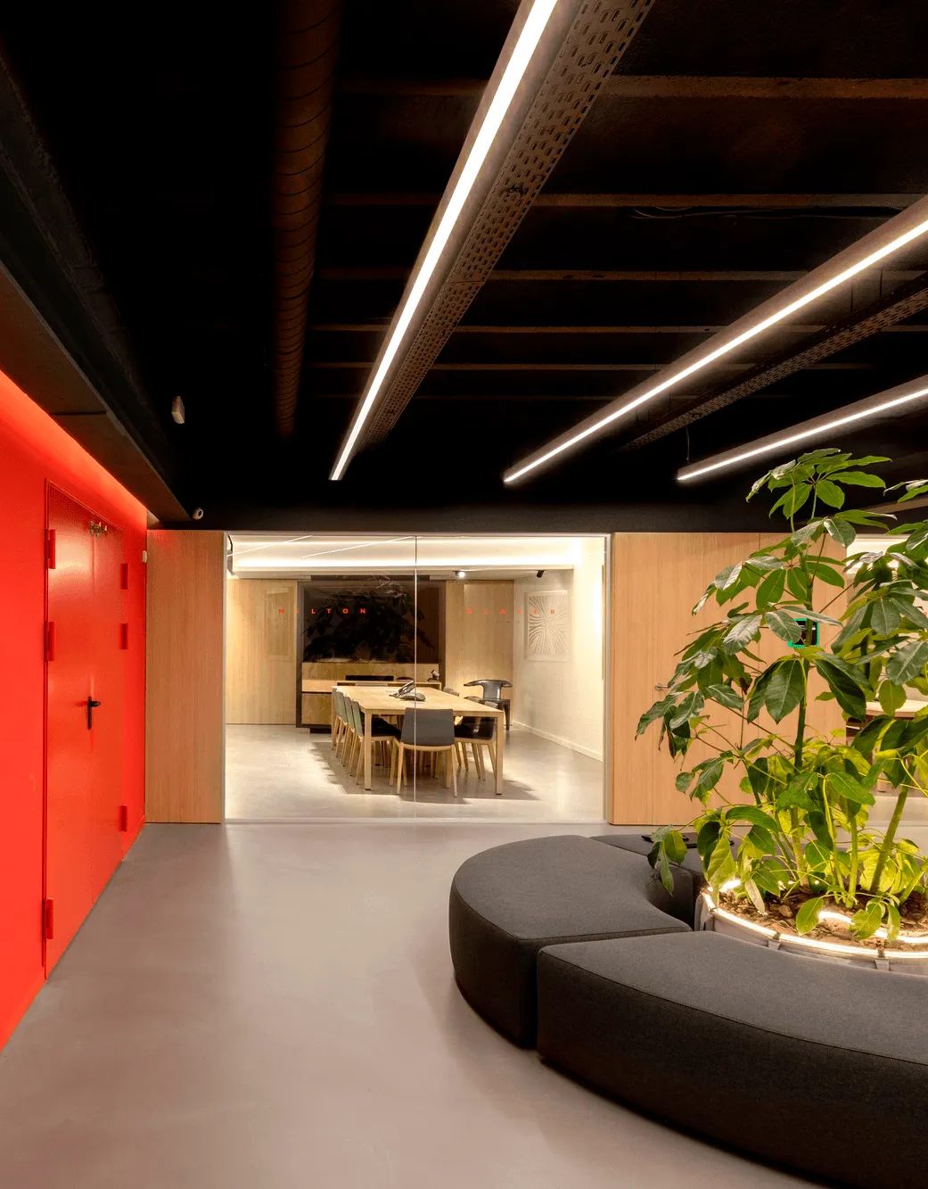 巧妙地集成的头顶灯充满整个空间,提供了一个以内部为中心的环境,创造了一个风景的中心位置,加强了对团队来说非常重要的家庭感觉!