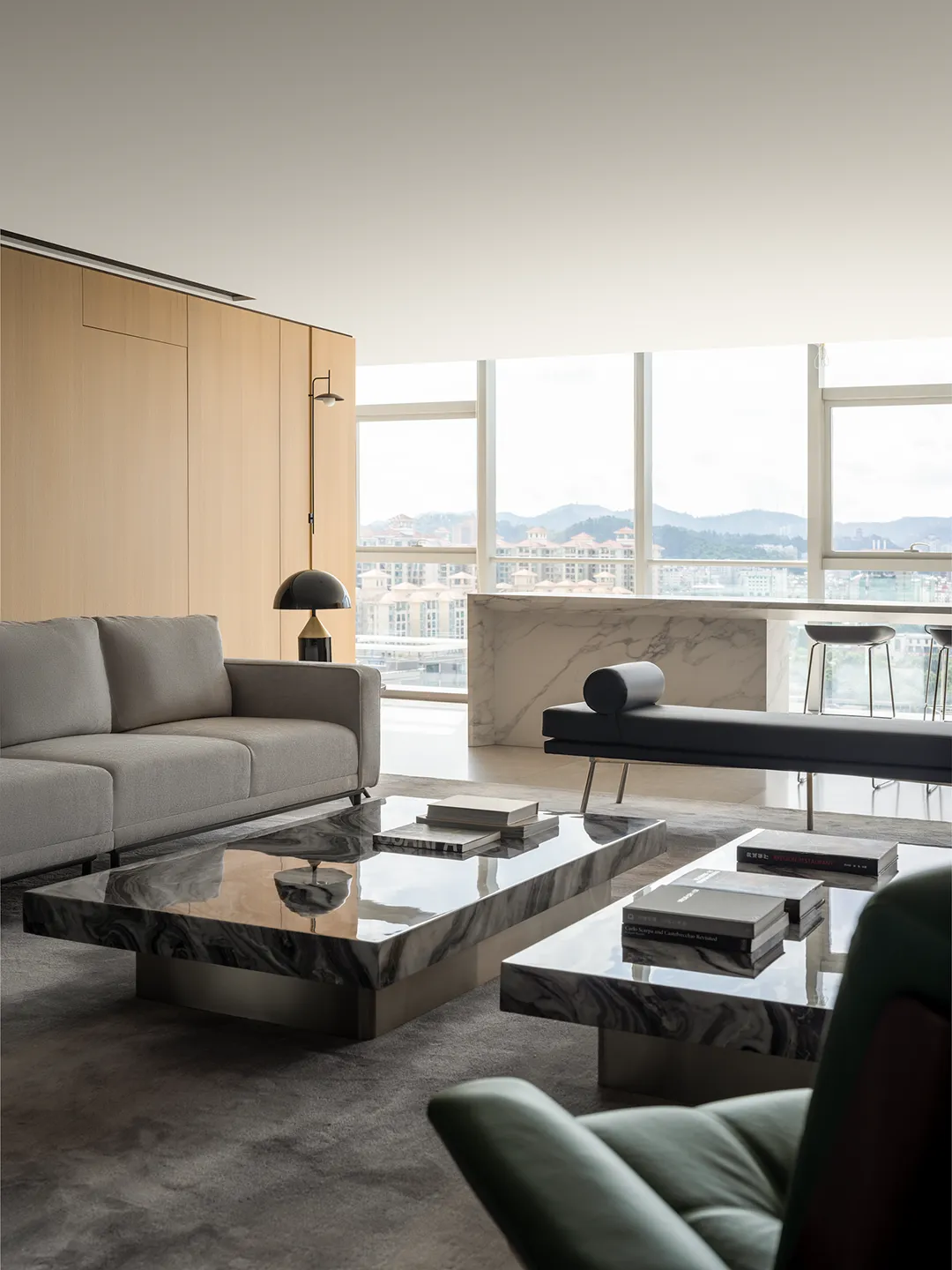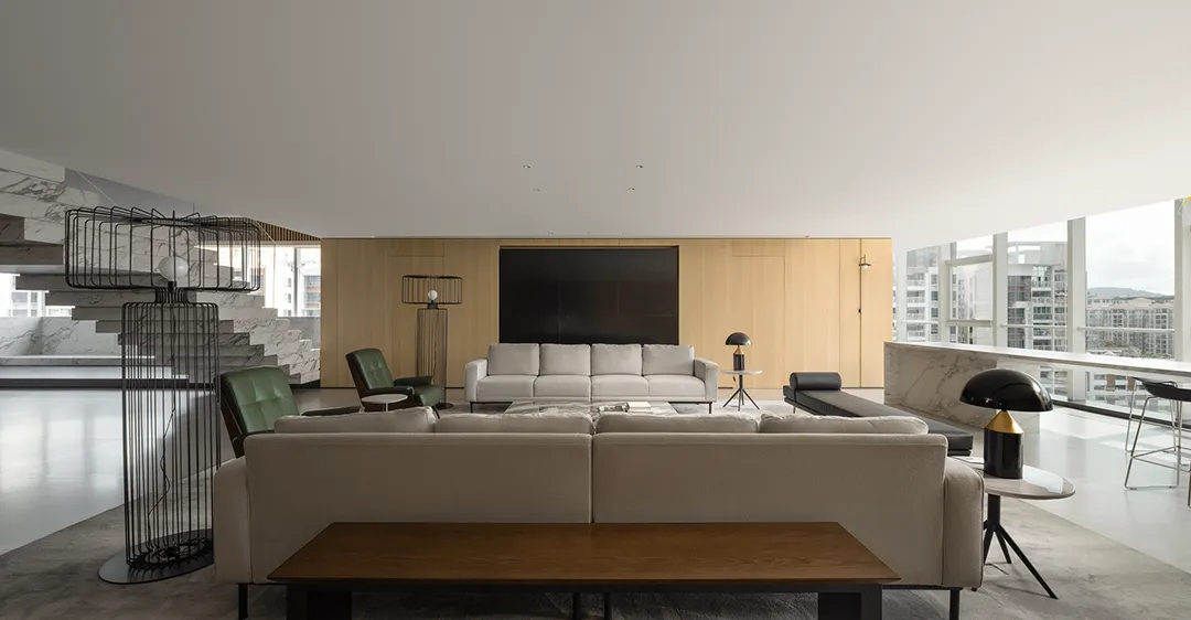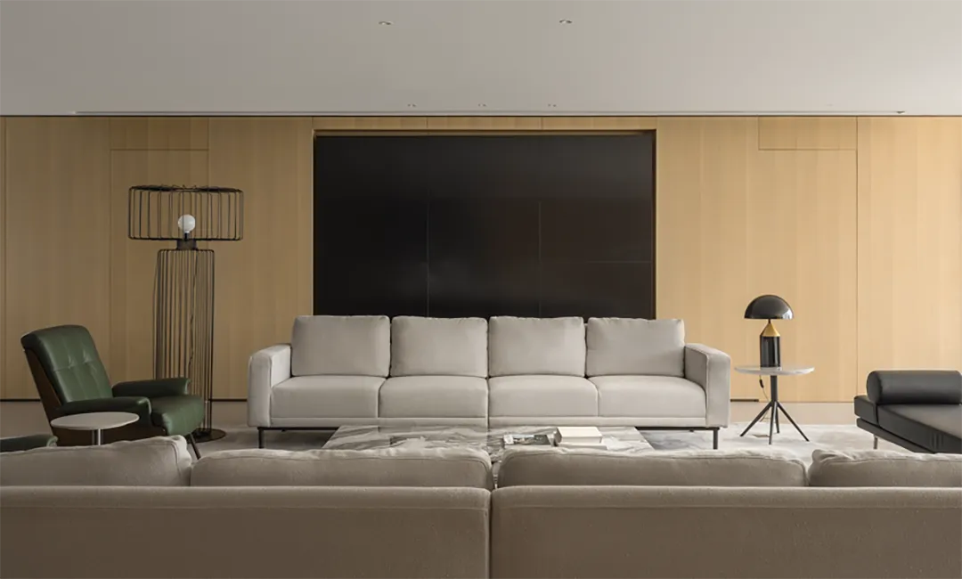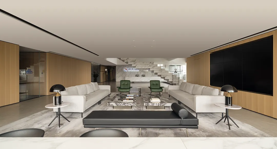 办公室主要运用的材料有石材、乳胶漆、玻璃、墙板等。材料的质感,加上大面积留白,空间看起来就有艺术的氛围。他们反对用材料过度堆砌出来的效果,经不起时间的推敲,反而越简单的东西,越能成为经典。