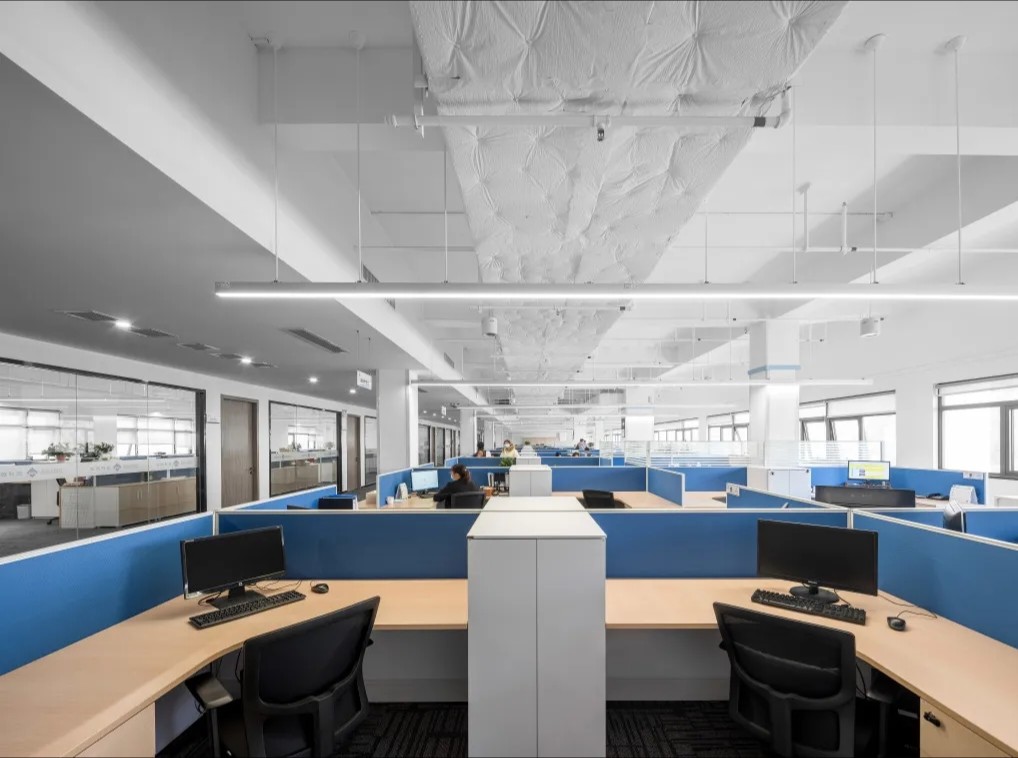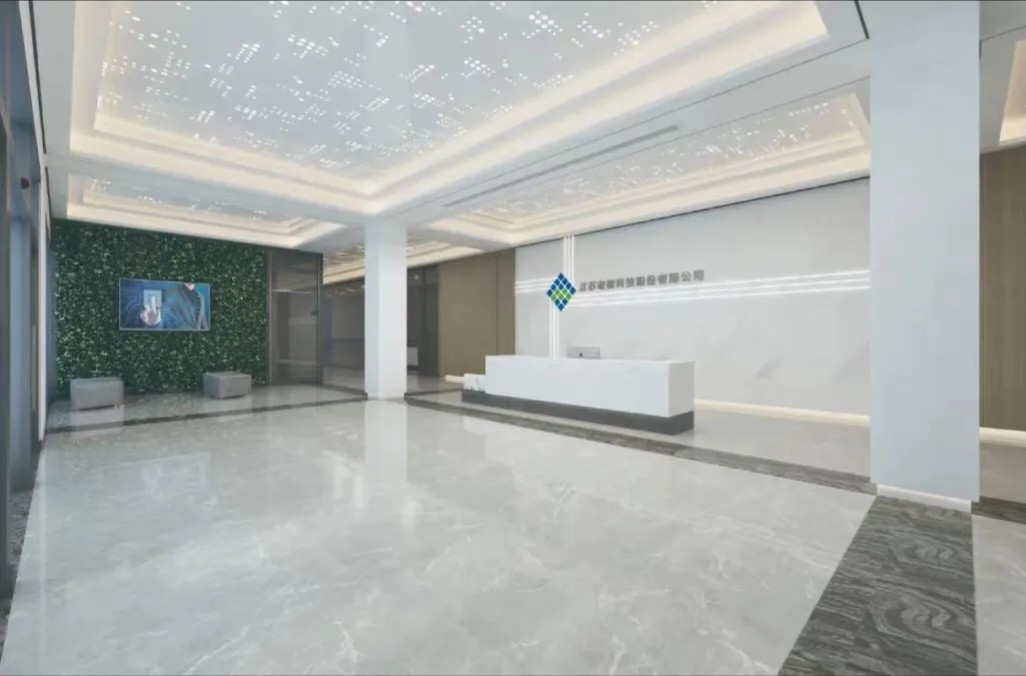 大堂纯白明镜让人一进门就感受到扑面而来的科技感,天花吊顶设计犹如行云流水般舒张自如,统一协调中又简洁有力。