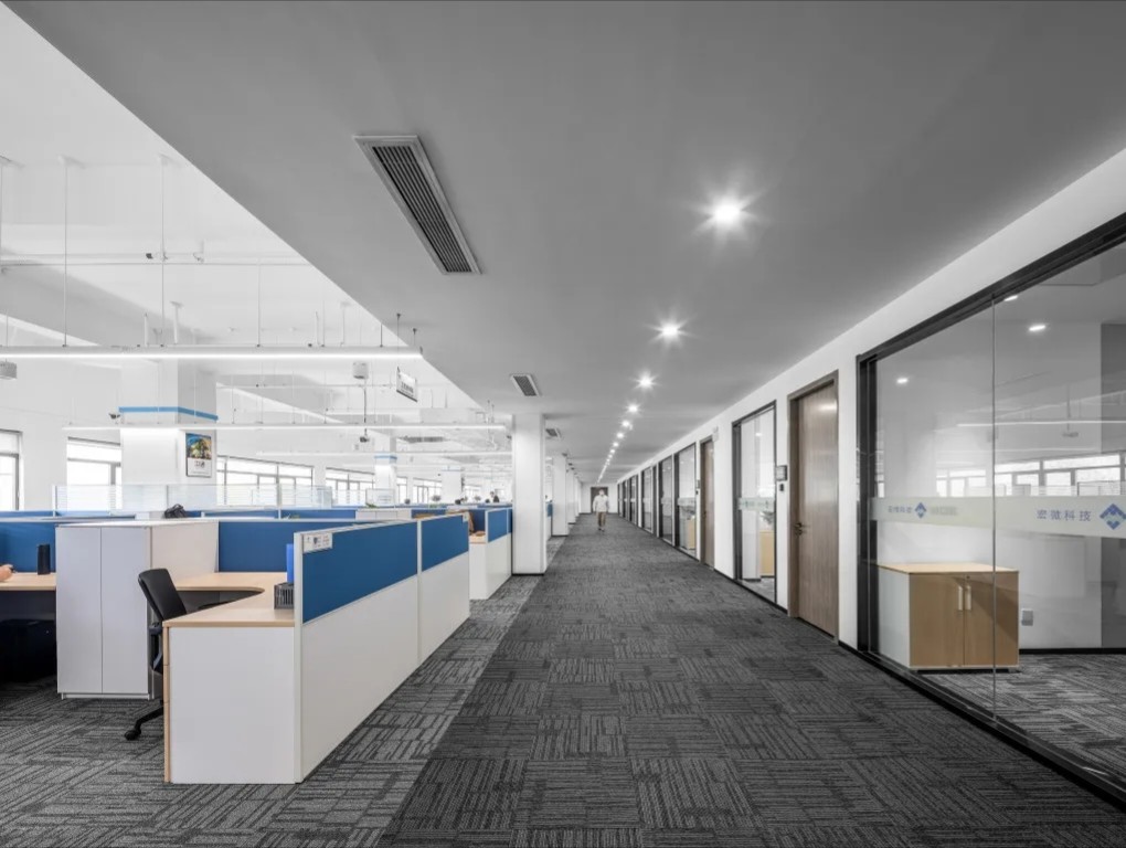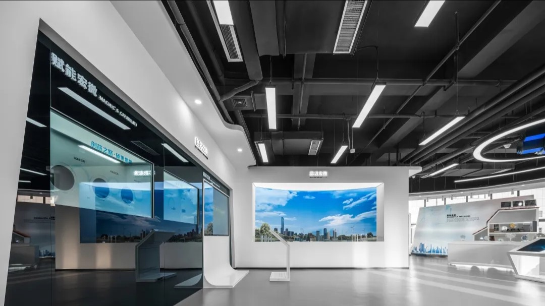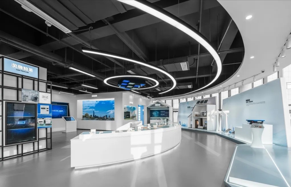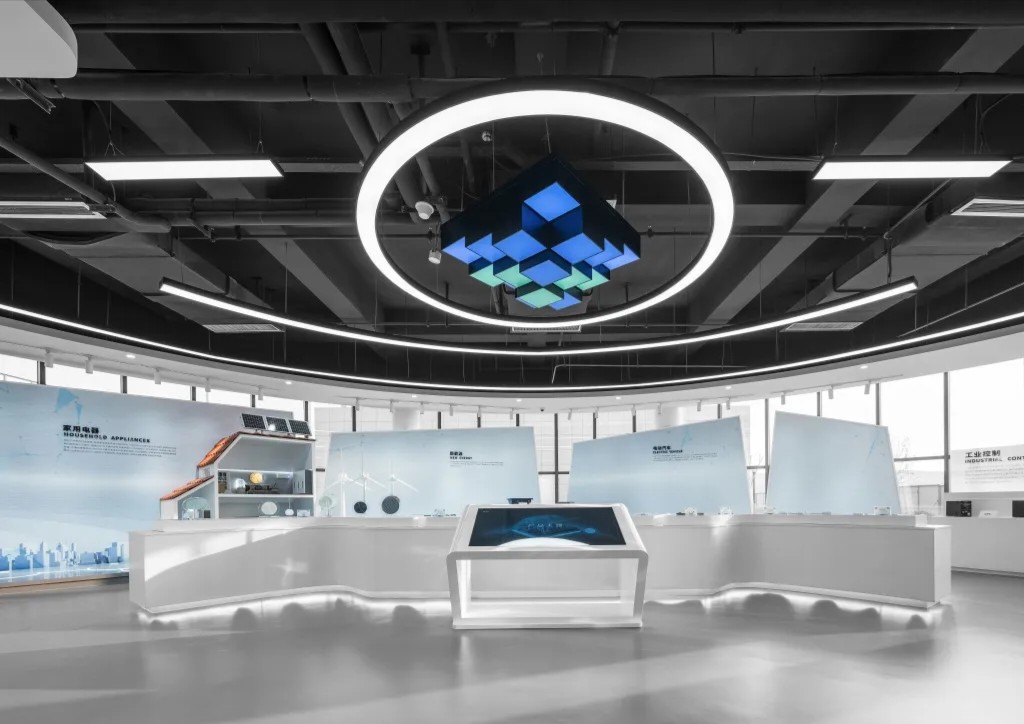 公司展厅为设计一大亮点,亦是展示宏微科技的长期研究研发出的独家产品。从智慧共享的概念出发,简洁大气的设计搭配先进的智能化配置,形成空间与人的智能连接。