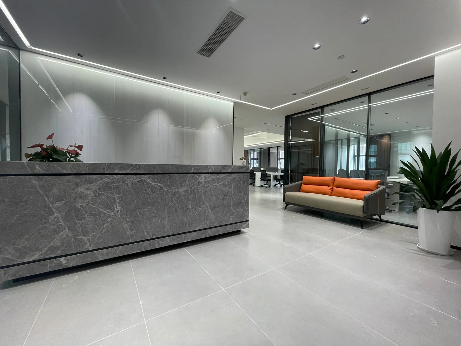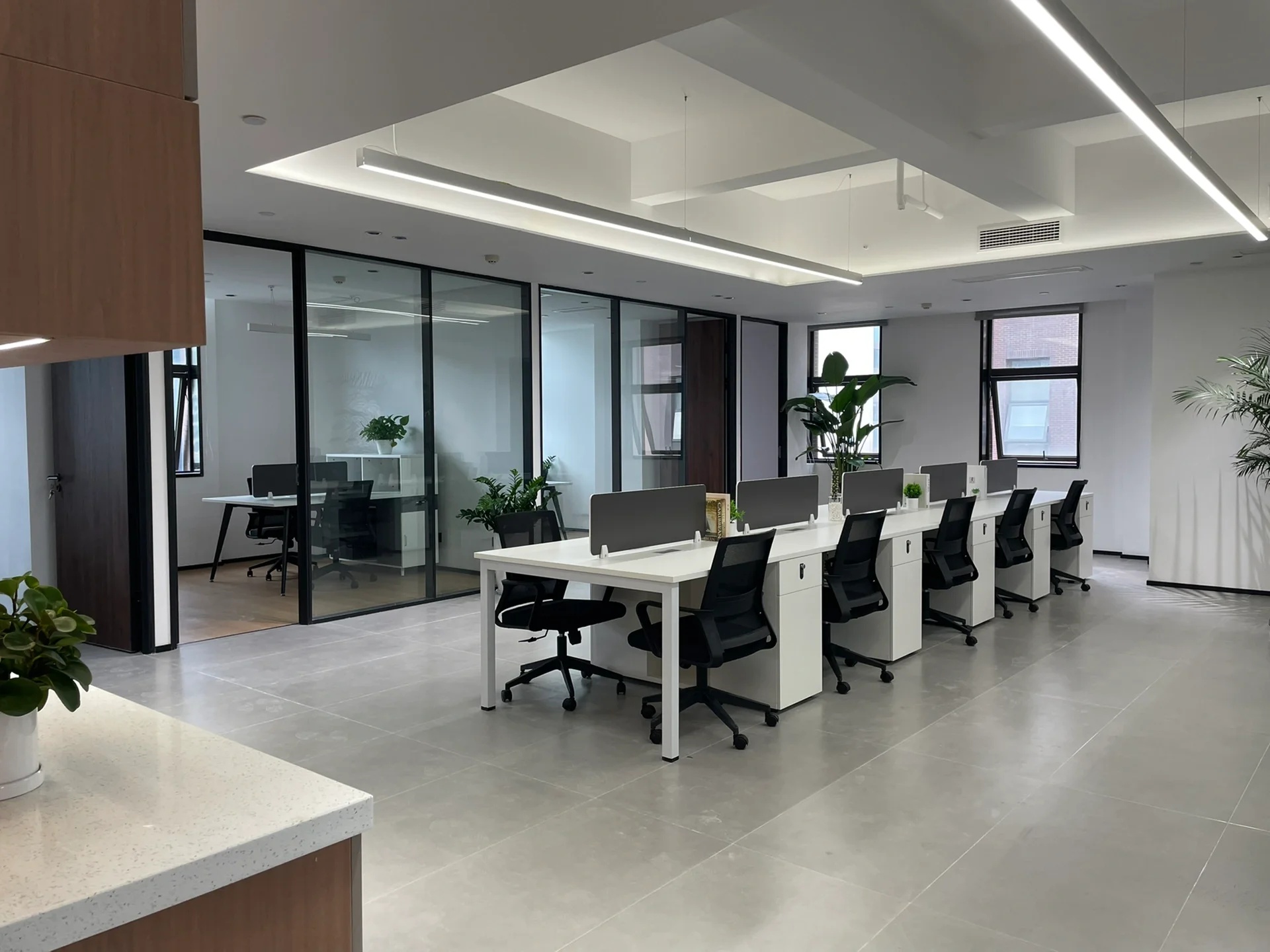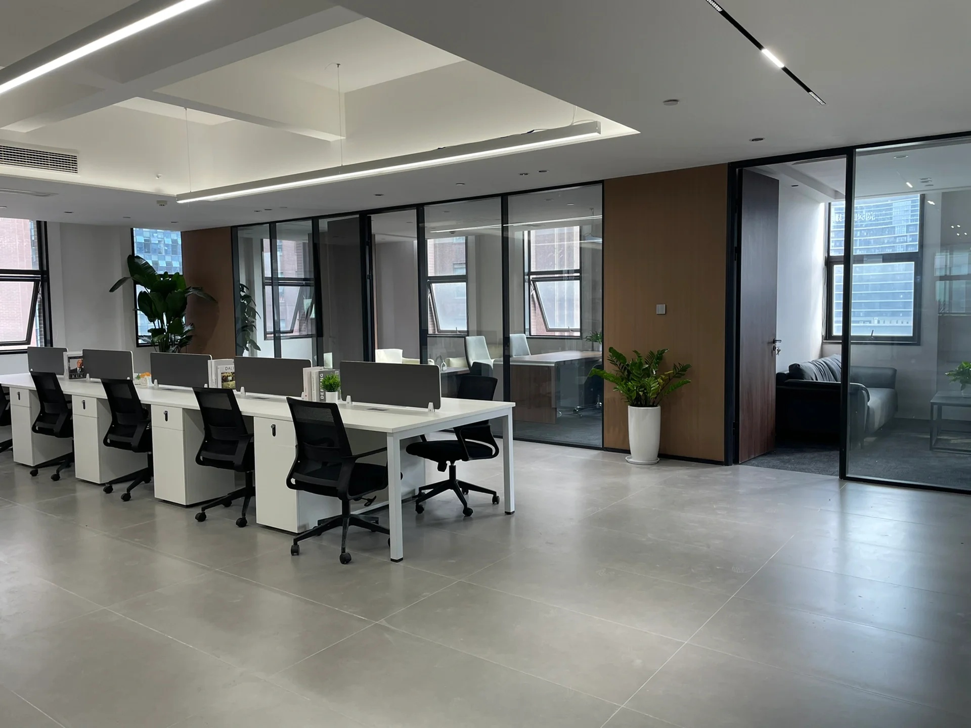 结合现代创新和经典元素运用,加大胆设计灵感,采用英国银行上世纪30年代风格提取经典元素,墨绿色台灯演变与现代空间结合,重新创造出“新”精英办公空间。