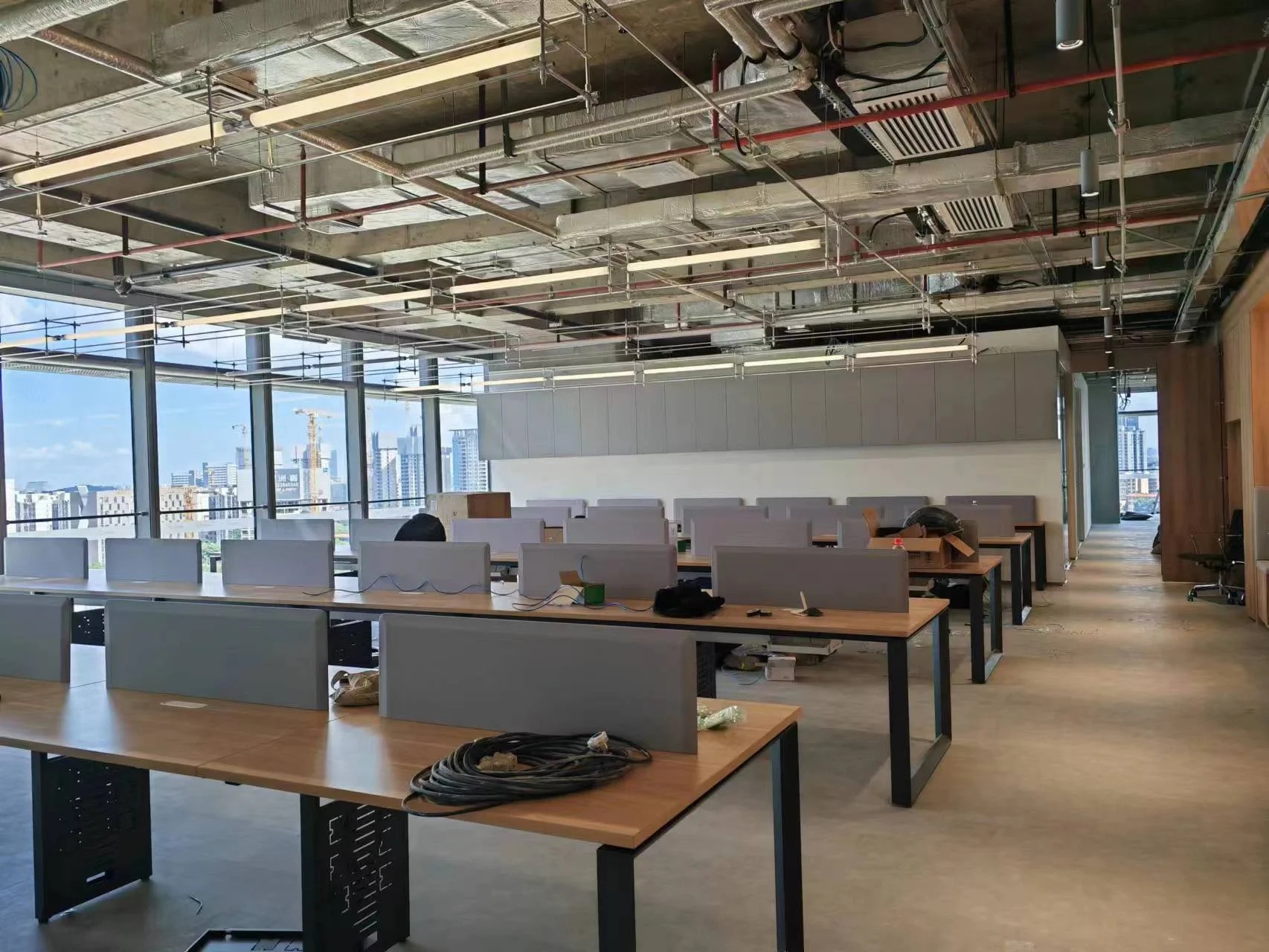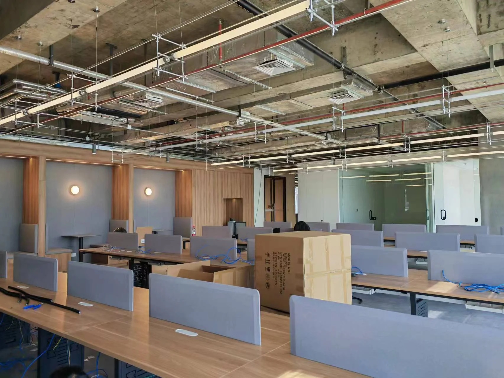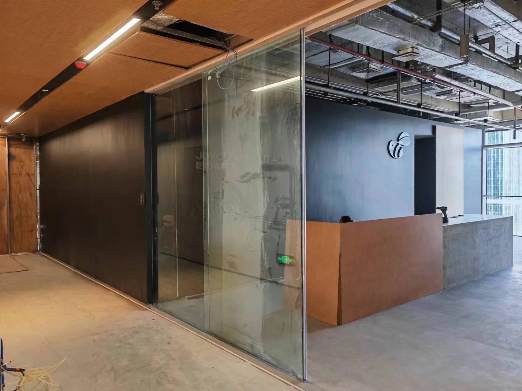 办公室和过道以隐形门相隔,保留过道整体性。确保了办公的私密与安静,办公室延伸了木饰面的主体材质,用大象灰作背景赋予低调的品质!