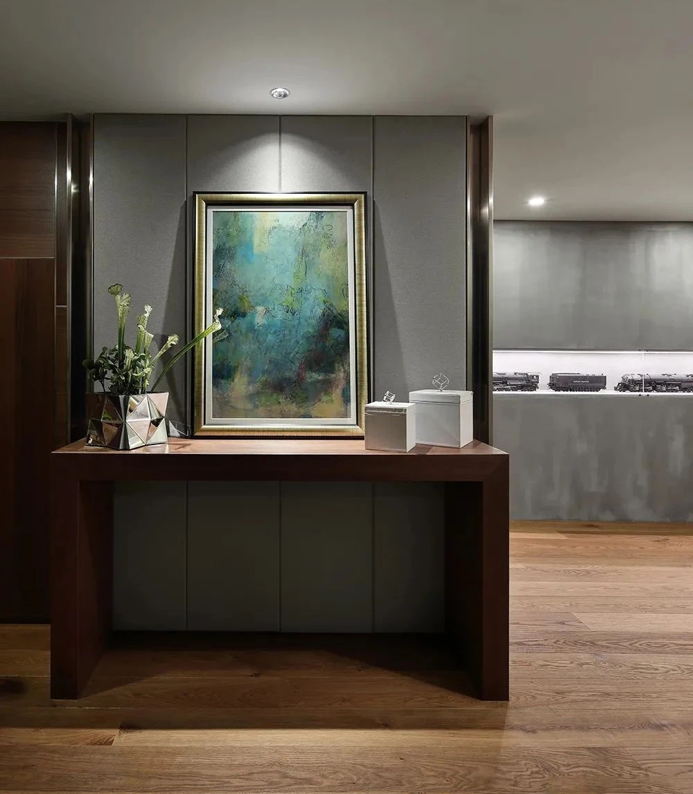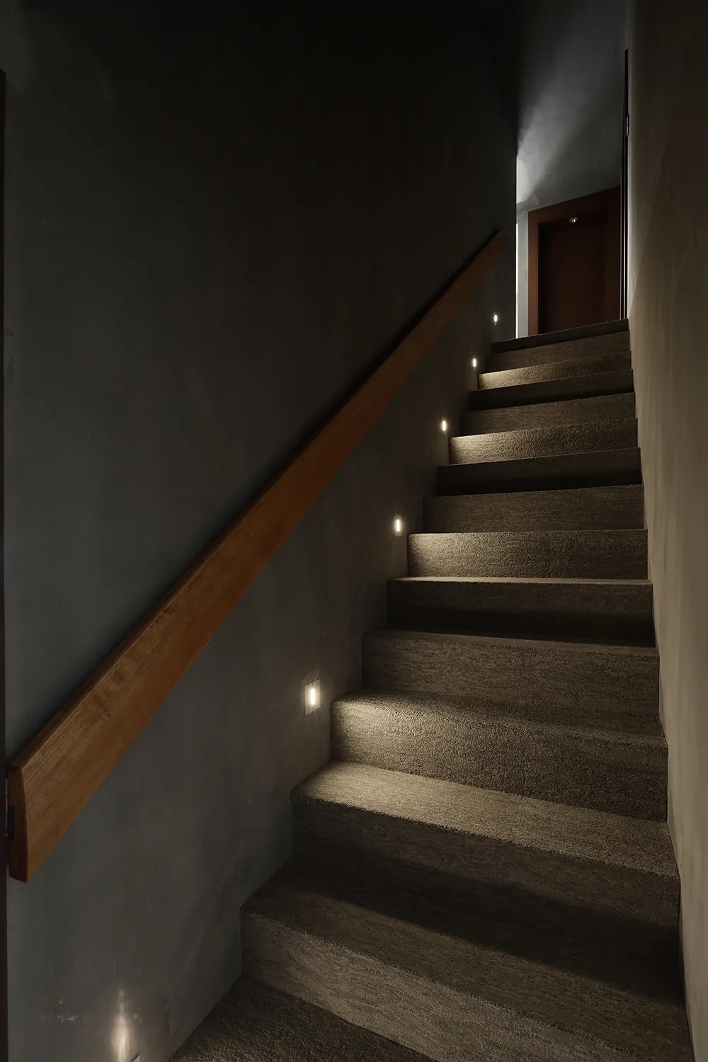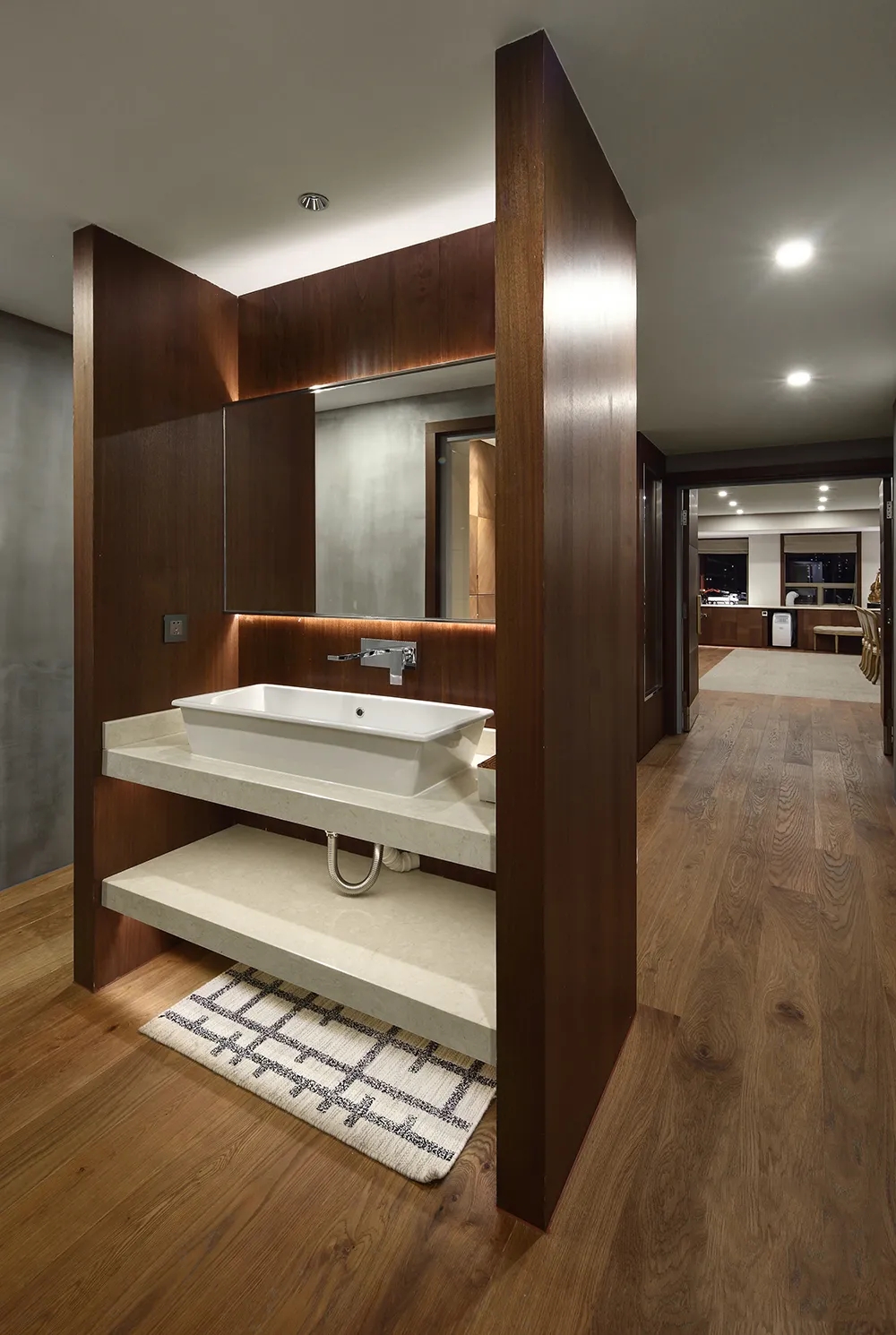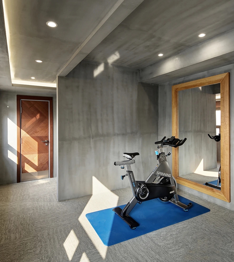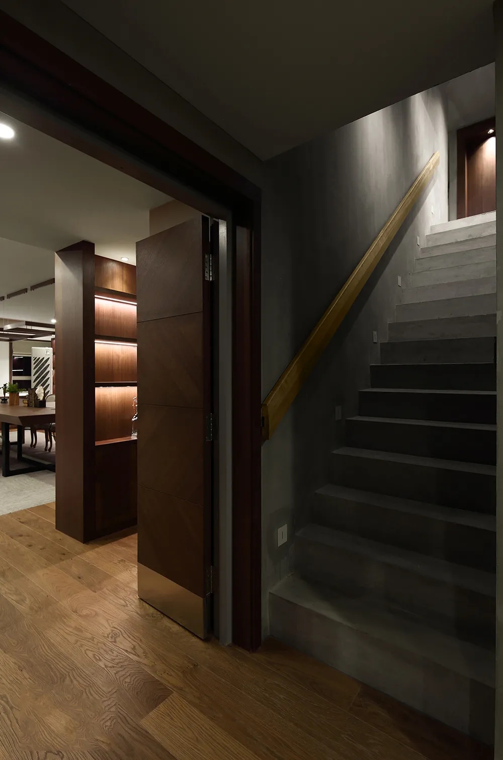 空间风格上,摒弃了一切复杂、炫技、花哨、繁冗的装饰铺陈,目光聚集在空间的本身上,局部模板的横竖拼接、45°铺贴,是整个空间的细节彩蛋,木色大门的设计使其划分了空间私密感之余,又不会太过的规定界限,满足空间定位。
