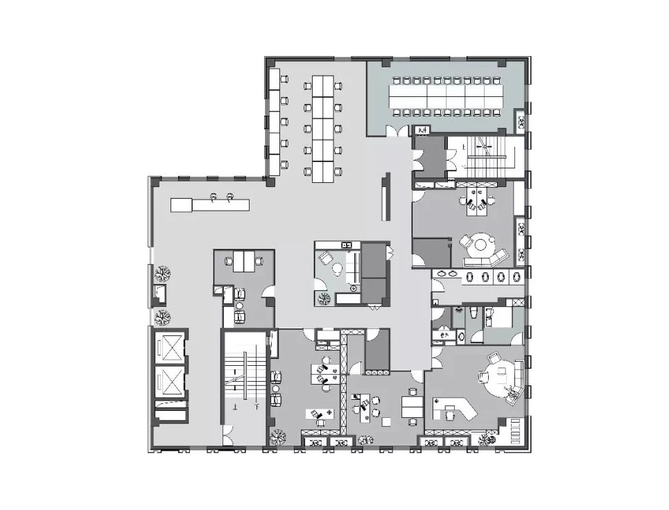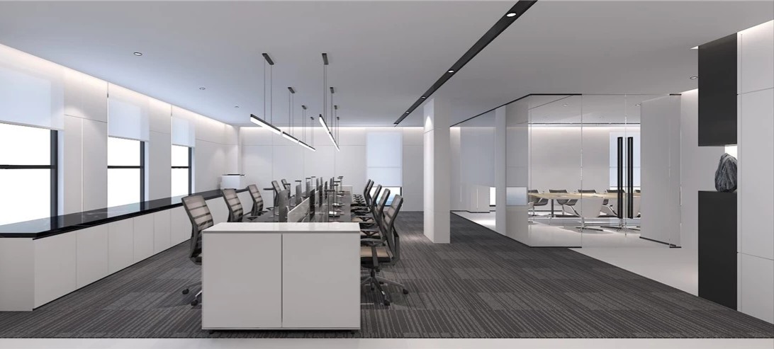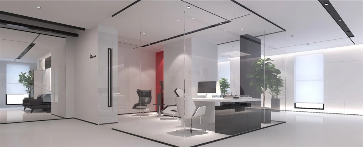 空间布局上,办公室被分割为开放与封闭两种空间。居于中央的独立办公室与小会客室,以及北部的大会议室,均采用透明的玻璃墙体,在隔绝噪音的同时,不破坏开放空间的整体性,视野开阔无阻,也为员工间沟通交流、相互激励营造了通达场域。