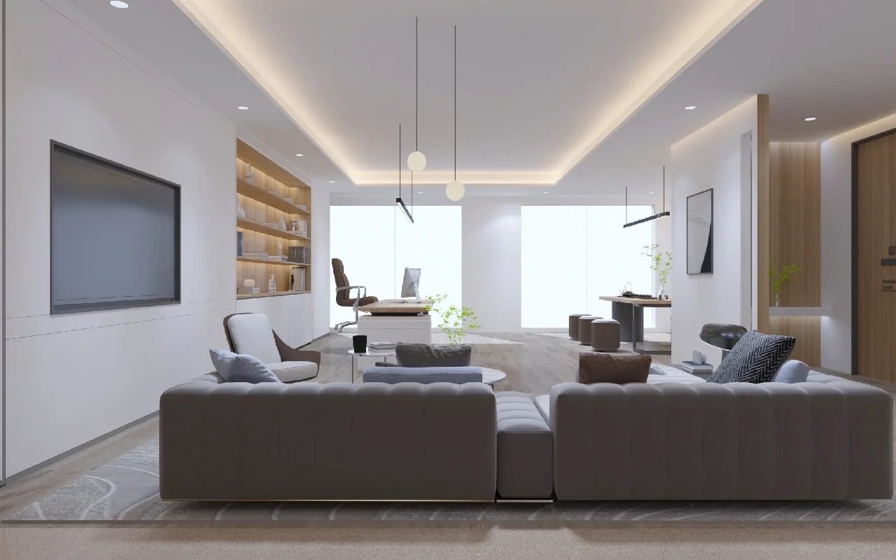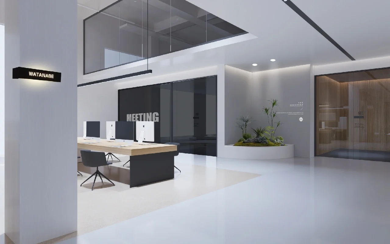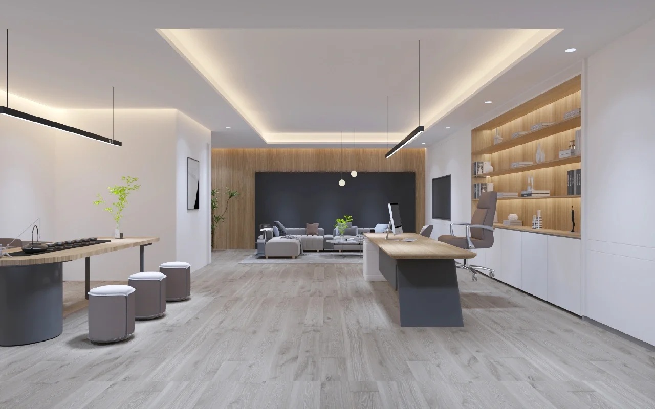 【开放办公区】配置了不同的工位类型,满足员工的不同工作模式及需求,例如站立工位可以改善空间设计师长期坐着肩颈的疲劳,帮助促进身体的血液循环和新陈代谢,有助于减轻身体疲劳和不适感。开放式工位的设计可以快速适应公司的发展变化,方便进行布局调整和扩展。使员工更好地进行交流和协作,提高工作效率,同时也有助于提高工作满意度和增强团队凝聚力。空间设计尽收眼底,置于空间中的人们,不经意间感受到豁然开朗。