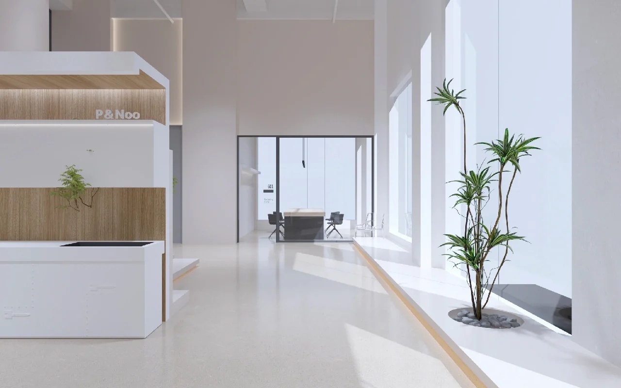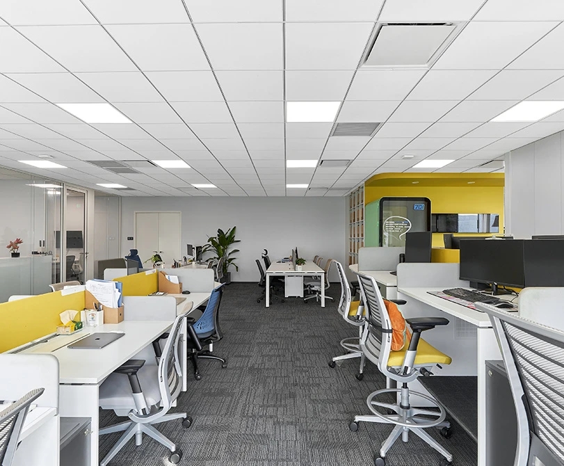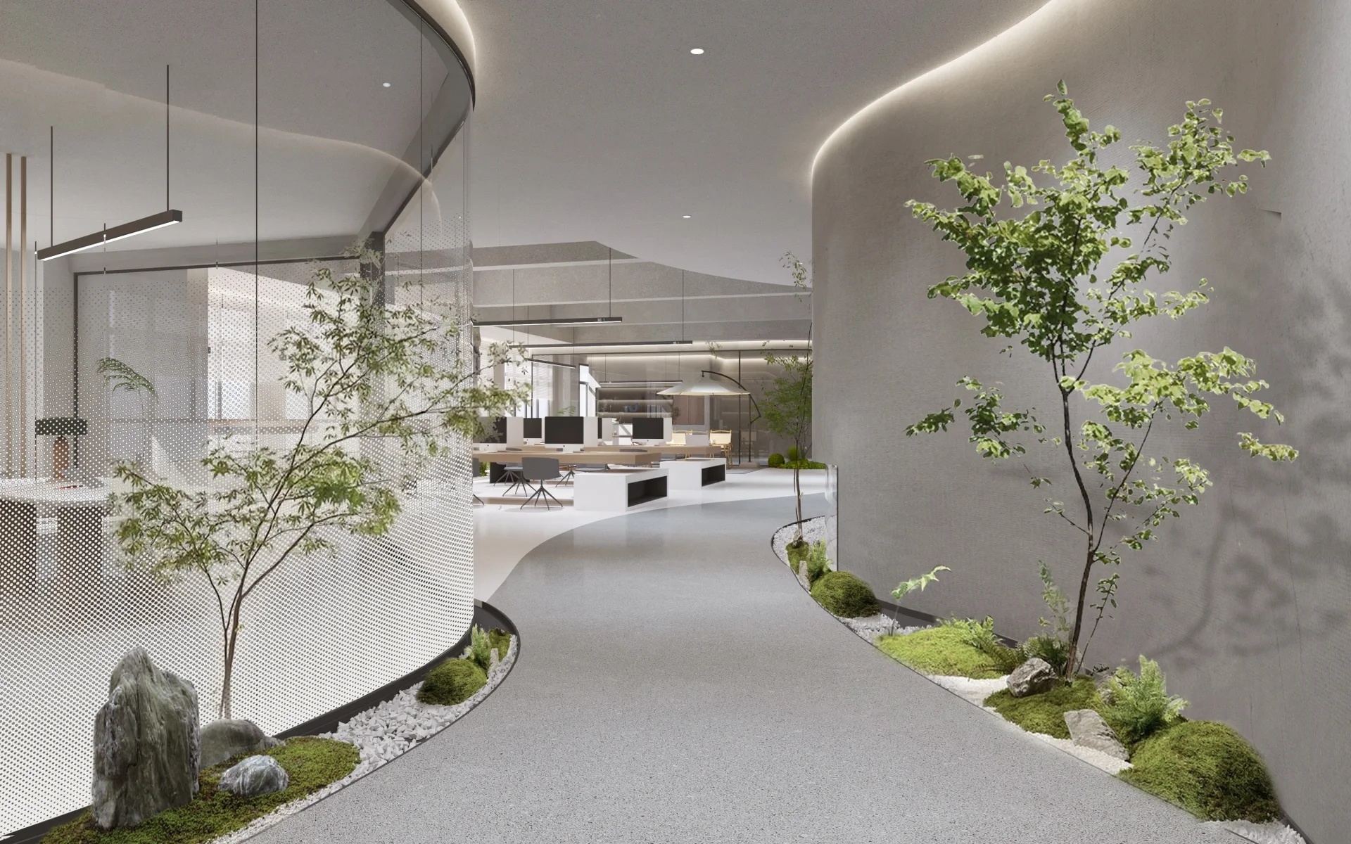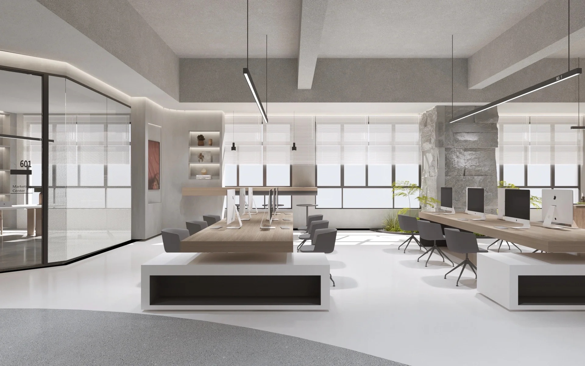 【开放办公区】配置了不同的工位类型,满足员工的不同工作模式及需求,例如站立工位可以改善空间设计师长期坐着肩颈的疲劳,帮助促进身体的血液循环和新陈代谢,有助于减轻身体疲劳和不适感。开放式工位的设计可以快速适应公司的发展变化,方便进行布局调整和扩展。使员工更好地进行交流和协作,提高工作效率,同时也有助于提高工作满意度和增强团队凝聚力。空间设计尽收眼底,置于空间中的人们,不经意间感受到豁然开朗。