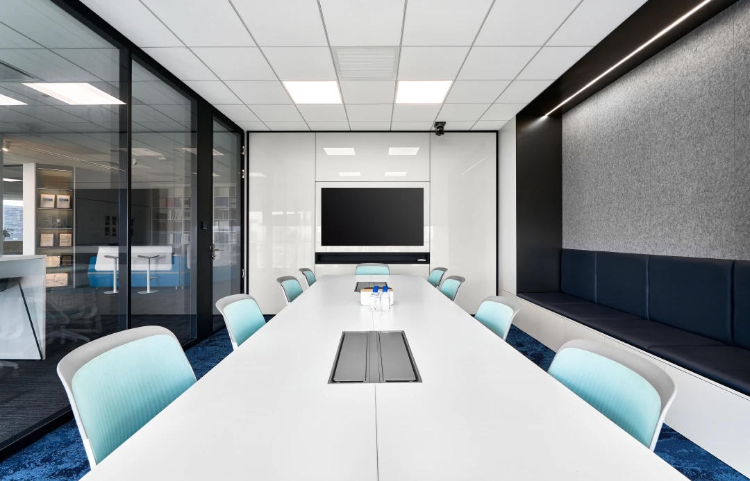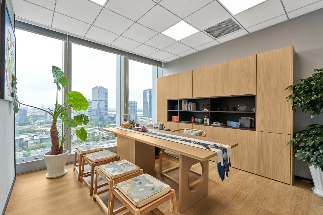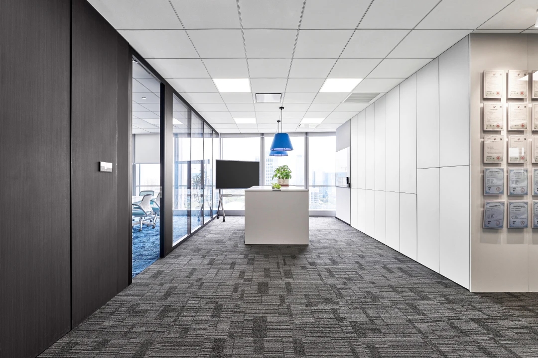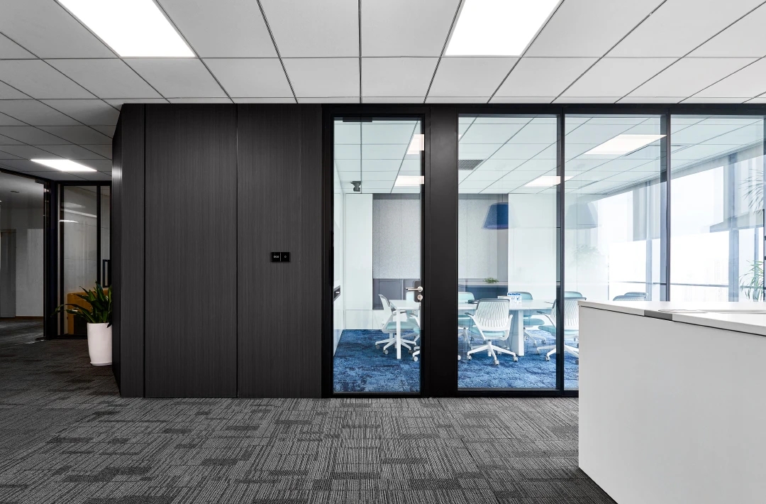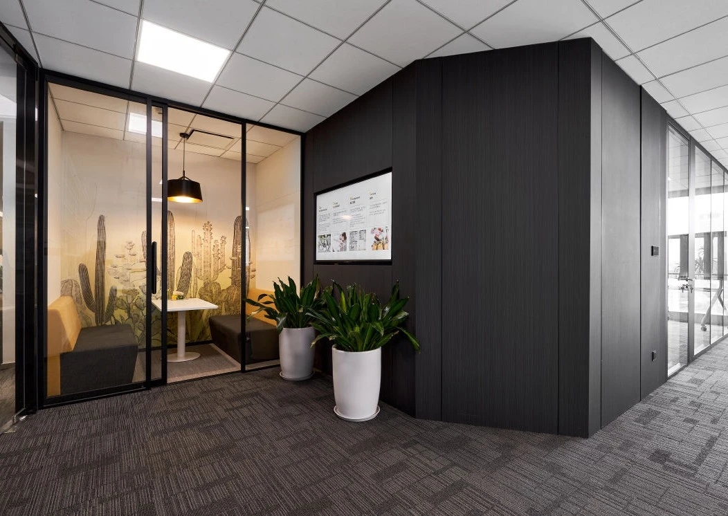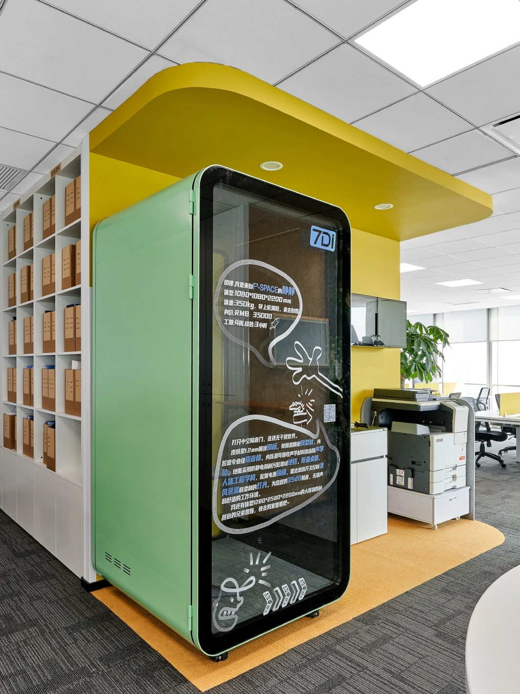 进入公司,【入口处】设置了洽谈室,这里主打功能灵活、隔音优秀、私密性强,当会议室不够使用时,这片小区域就派上用场。