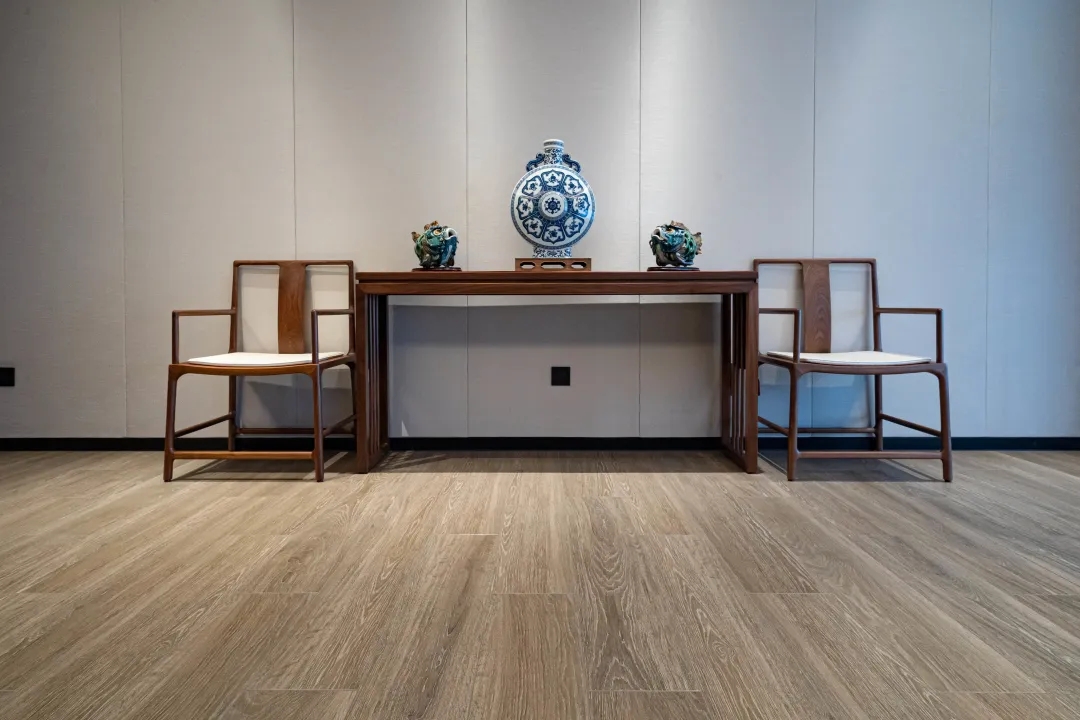 以经典的中式元素为推进的介质,接待区藉由金意陶木纹砖温暖自然的特质累积出醇厚既存印象,展现一个雅俗共享、气韵生动的禅意空间。接待空间不在于浮夸的气派,而在于内涵与稳重。返璞归真说都市人的内心之向往,中式格调的雅集空间,暂忘尘嚣聆听到来的客户本意,从茶道中品味从容不迫的心境。