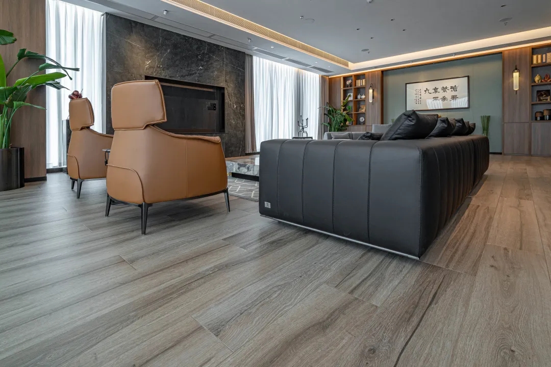 高端洽谈区要做到有秩序感排布,空间调性在红、原木与白的交映中,展现出庄重严肃,恢宏大气的气质美学于细节之中透漏开来。办公桌椅要配合整个洽谈室的设计,公司的洽谈区域背景墙使用了金意陶岩板系列—山水之间,润透的白,高品的灰,一副泼墨山河呈现在眼前。白色布艺桌椅,简洁明亮,辉映着背景墙,中国古典水墨画的雅韵、意境高远,表达着公司的企业形象,传递企业文化,也能让宾客对公司留下深刻的记忆。