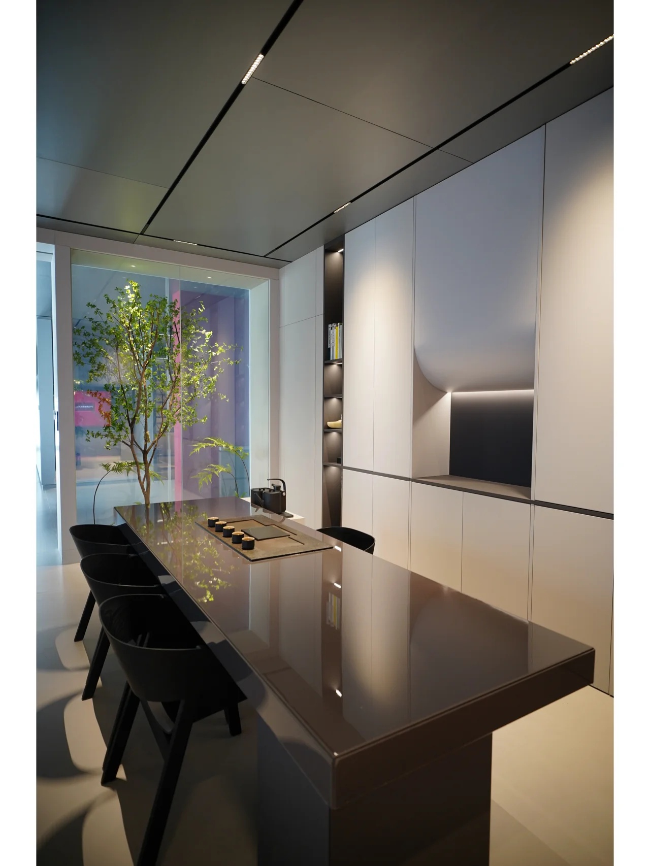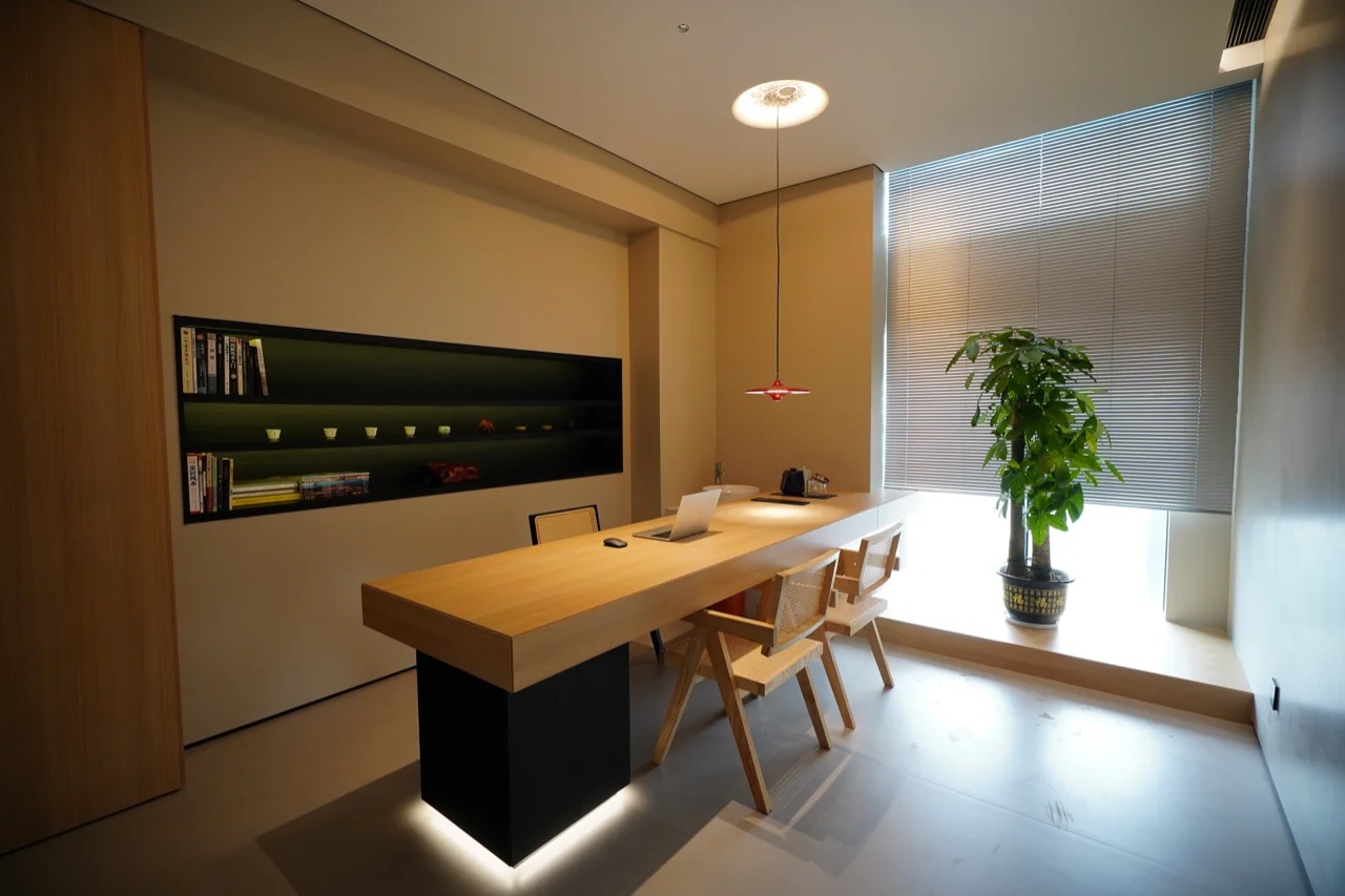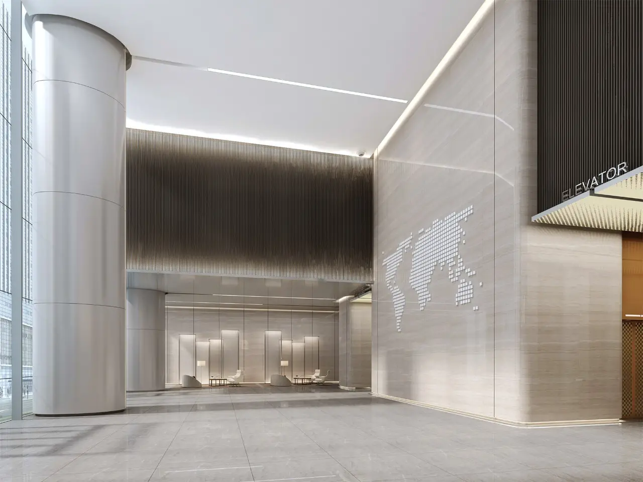 企业元素的结构与重组,是设计师对文化元素的探求与表达。大堂设计将空间塑造作为首选,将形式、质感、光与影等要素组合融入,设计师摒弃复杂的造型和材料的装饰,利用材质本身的质感、颜色与光感产生对比,使得室内空间形式与建筑结构表现达到优雅的平衡。细节处的陈设提升了空间的品味和丰富性,皮质的沙发和色彩相得益彰。行政酒廊提取有机的设计语言使之延续于空间,以时尚的节奏张弛有度,以奢华的姿态生生不息,使得设计理念、客户的需求、功能的可执行性等都得以和谐融合,都市新办公,打造即未来。