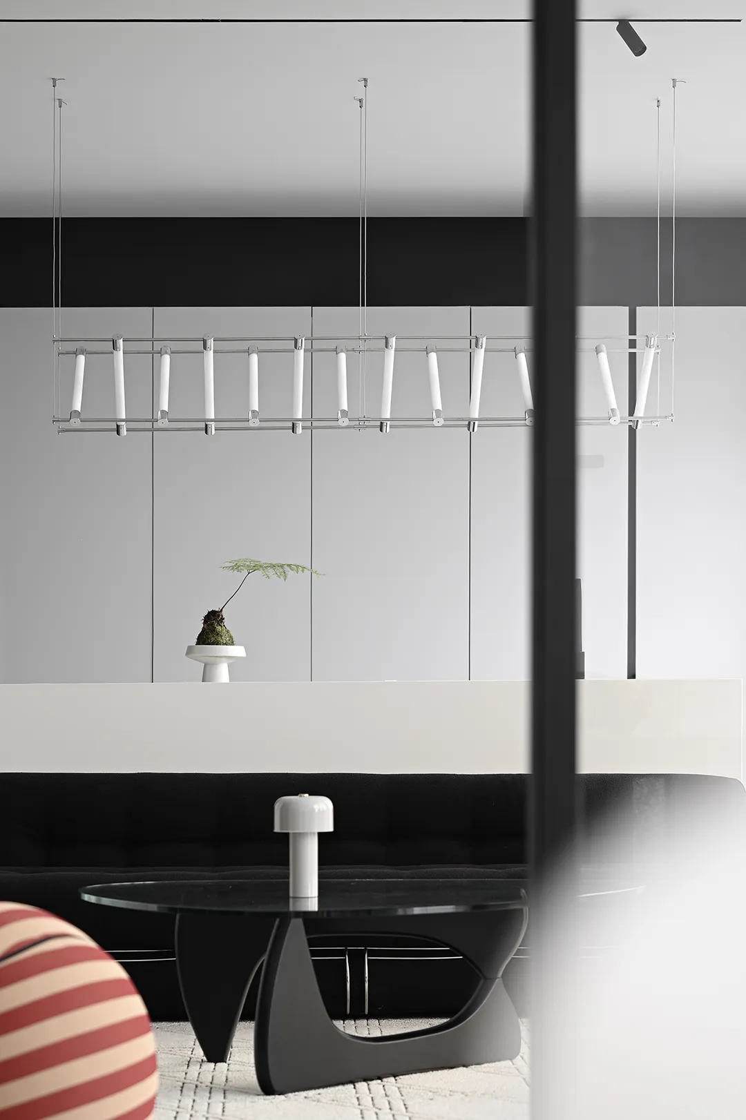 最初的设计是在中心处种一棵树,寓意破洞而出,让人联想到园林里最古老的那棵树,不用赘述,就仿佛让人读懂了历史。后来考虑到整体风格与空间互动性,运用倒挂手法安置松树,寓意无畏、坚韧、高升。动态与静态,外在与内在,于交汇之际赋能空间流线舒展力,围绕最中心的端景达成完整的空间叙事,同时不同区域皆各自成景。设计,远超设计,诠释了设计师的初心和期许,也见证着他们追梦的过程。