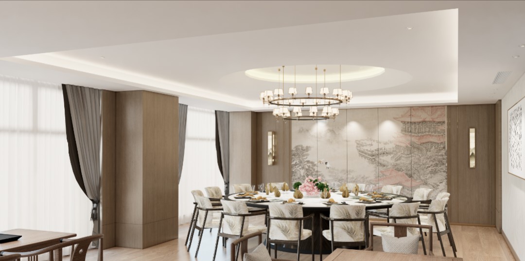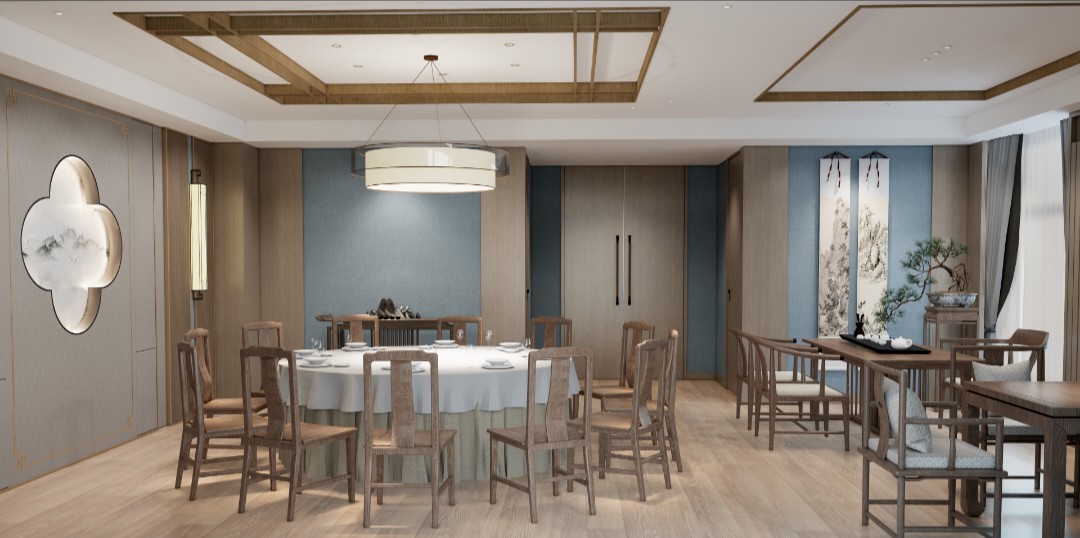通过前廊庭院,喧闹随之淡去,步入空间,设计师有意将自然光弱化,通过大量深色营造宁静、深邃的环境,使空间进入者能够感受到空间的儒雅气质