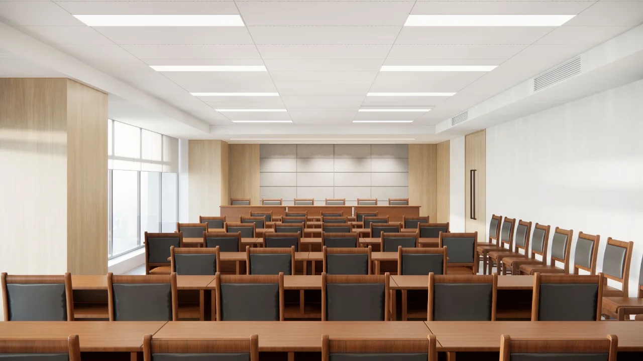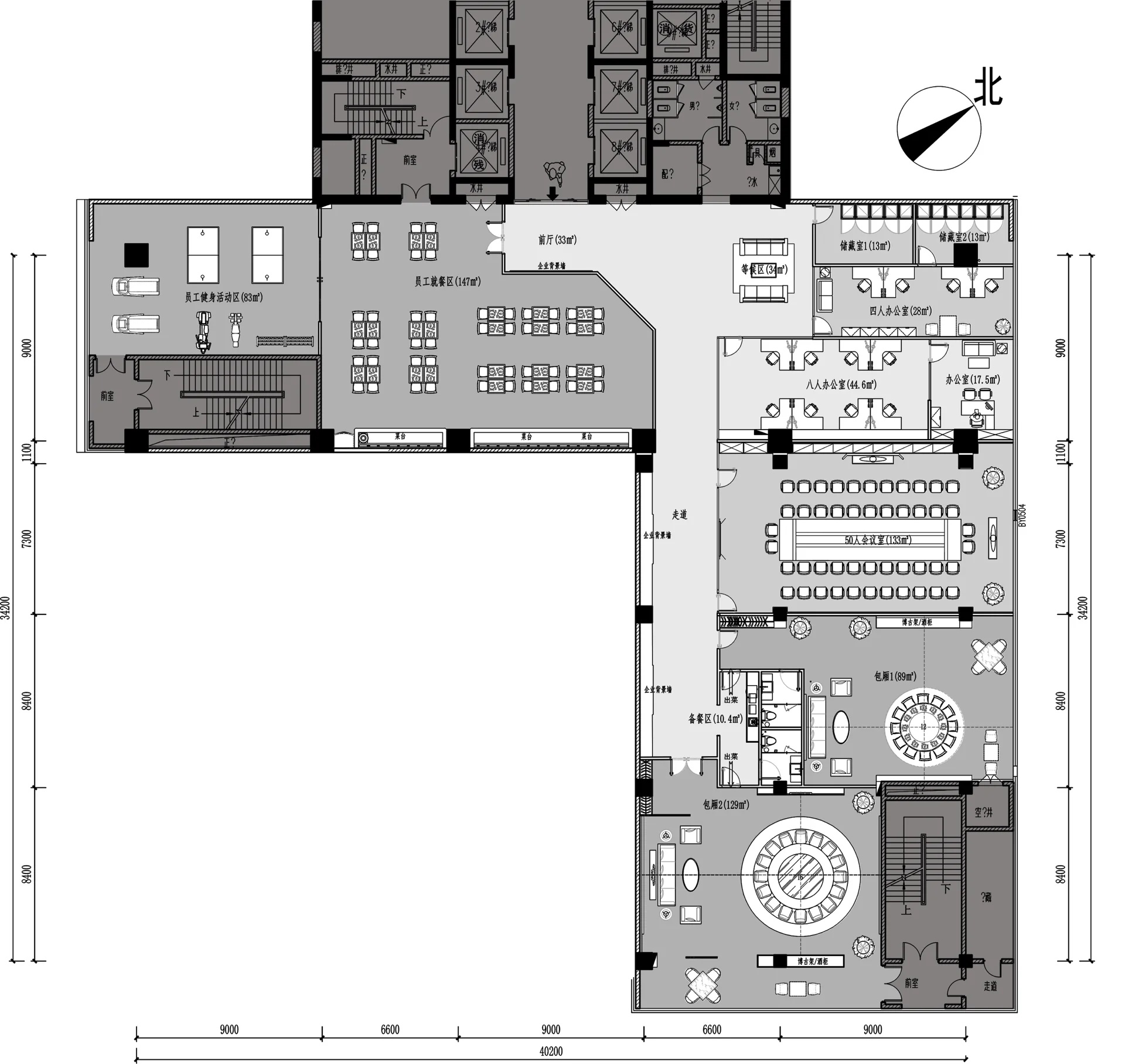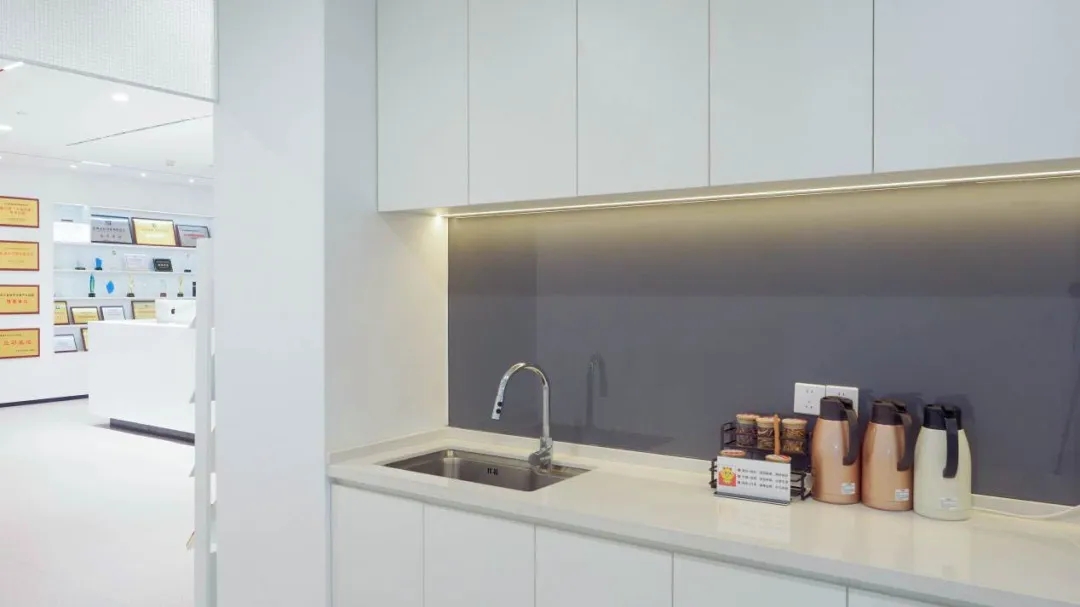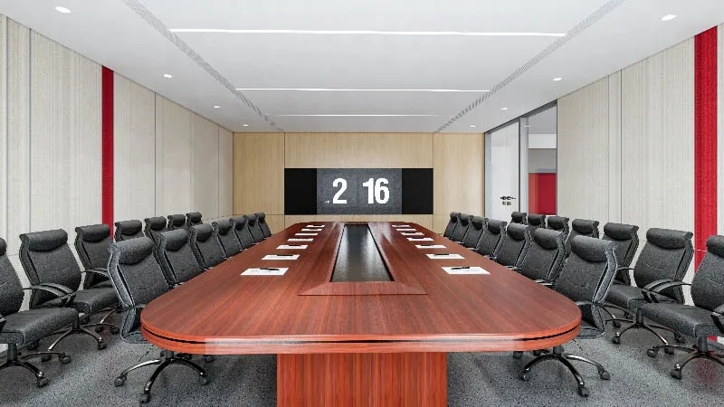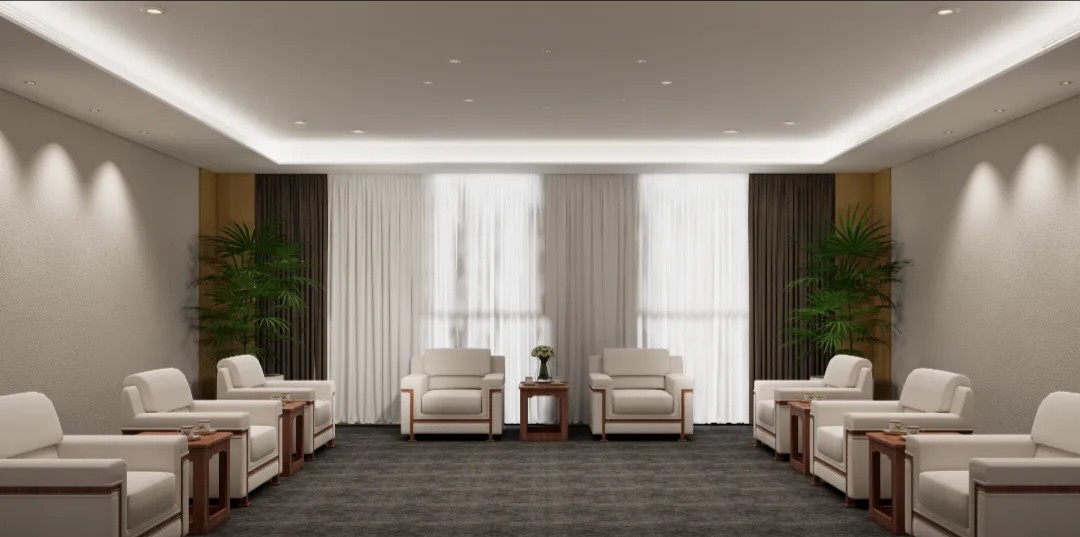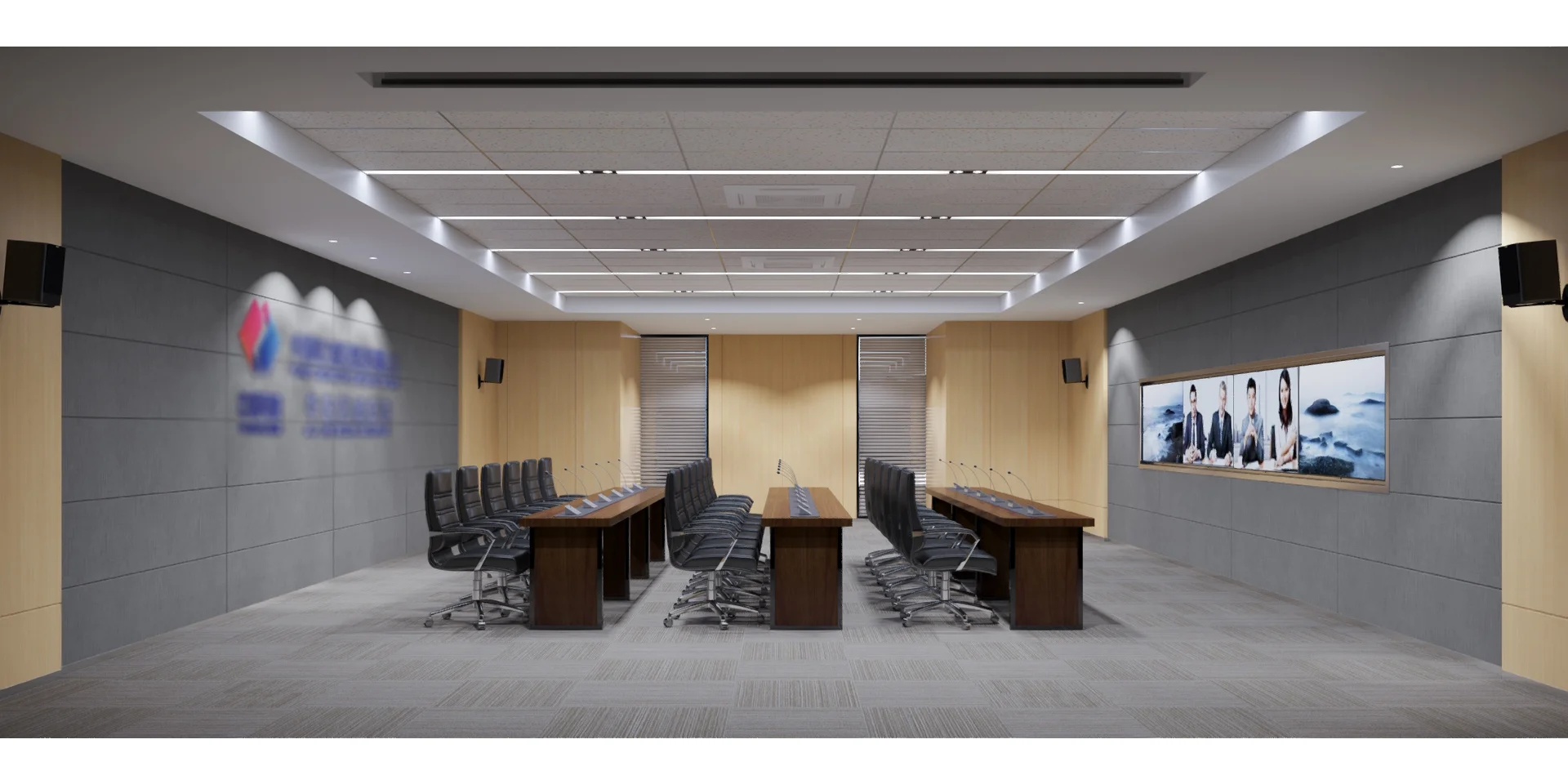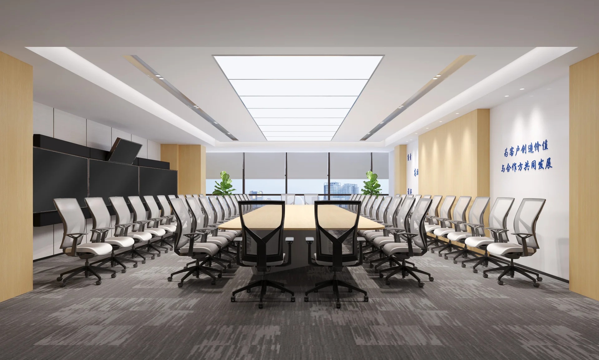 会议室、办公区的桌椅以灰白、木纹色调为主。材料、灯光、办公家具的对比搭配给人愉悦的使用体验,也避免了纯白空间可能带来的视觉疲惫感。