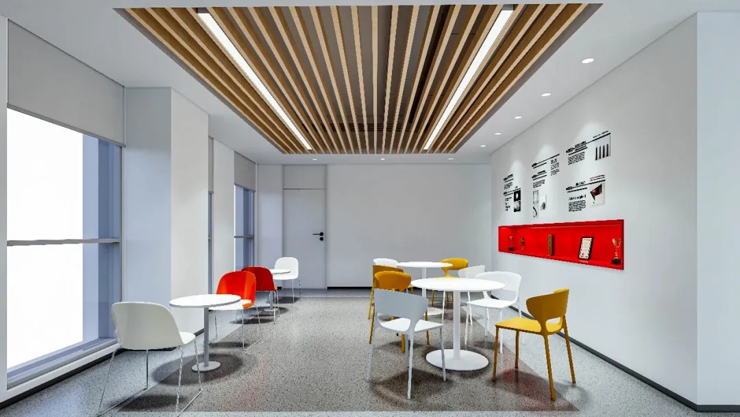 通过这样色彩、材质、设计手法的变化,让人能感觉到企业开放、有趣,鼓励互动的氛围。