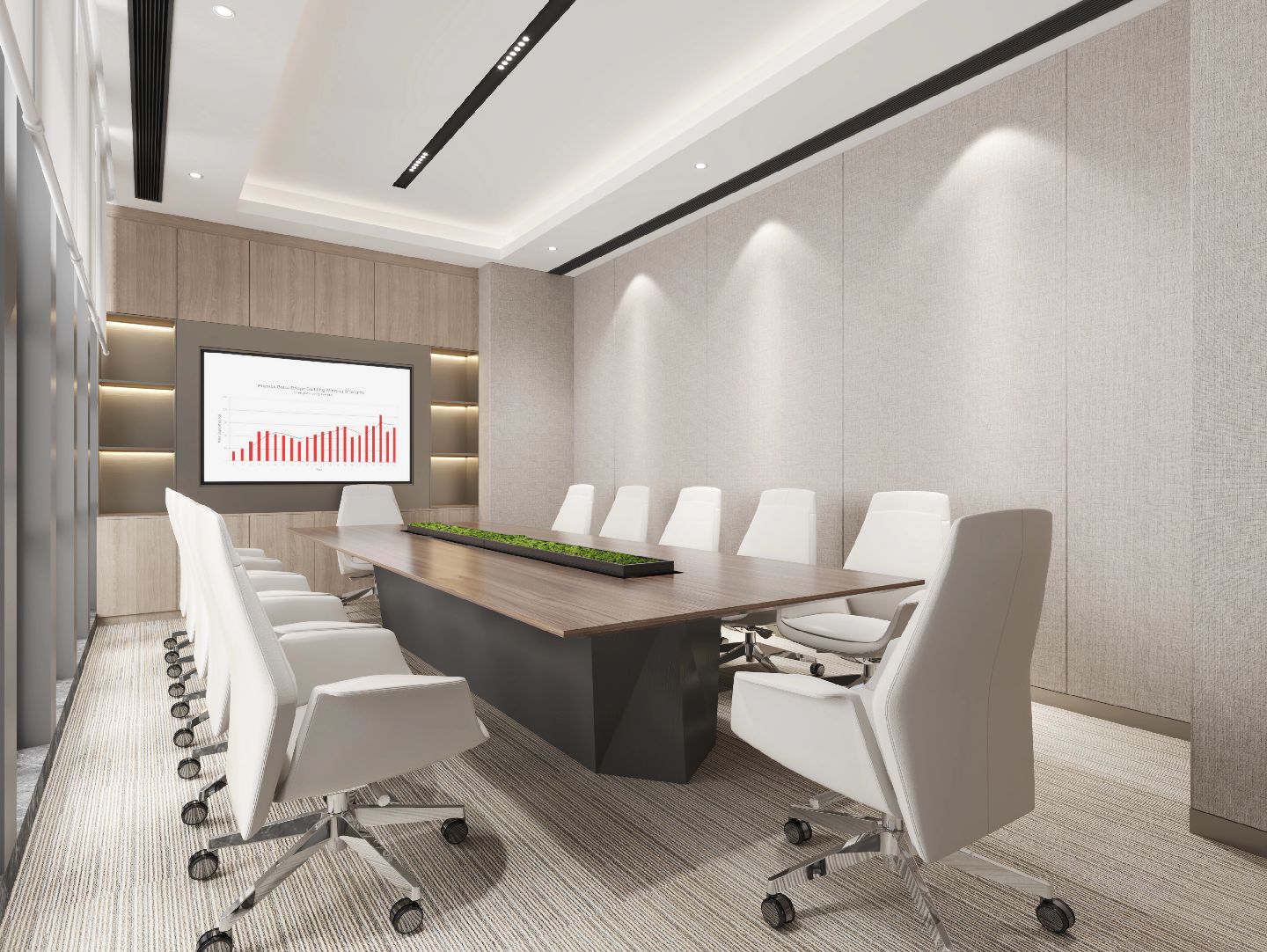 精密的数理计算,长长短短的线条,切割出错落有致的展示墙,使空间的开合节奏富于变幻。还为各式的板材构建了“书柜”,这样样板就可以像书籍一样,被整齐的陈列在展架上,只要走近,就能仔细观察、阅读、触摸它的颜色、图案和肌理;只有当产品回归于产品,践行品牌的[长期主义]的命题,实现新场景激活。