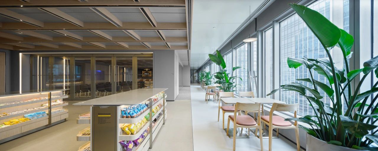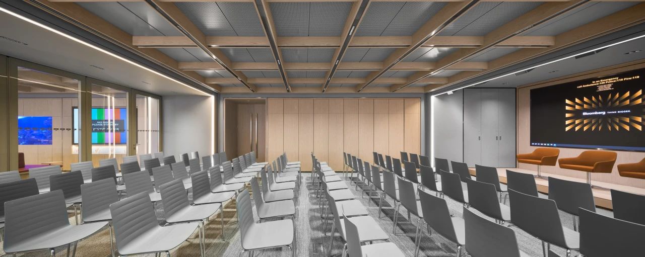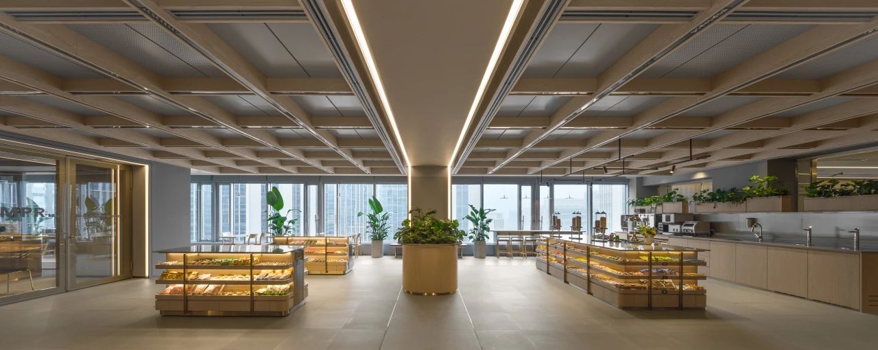 展开画卷“在这间办公室的每一寸空间,彭博社都将人的需求摆在首位,让工作更加轻松自如。如果钢筋龙骨是骨架,那主材便是灵魂,项目中大量使用的木饰面,木纹方格吊顶带来温馨感的同时又能凸显办公空间所独有的专业与稳重,同时通过木材所特有的自然属性,可以轻松的帮助员工卸下疲惫,来自大自然的馈赠打破了死气沉沉的办公氛围;由我们厂家定做的成品鱼缸为办公空间增加了一丝灵动,电动窗,经由深化后看不到任何线,使用了开槽埋线的工艺并用铝条遮盖,即使仔细看,也如成品铝框窗一样细节满满。