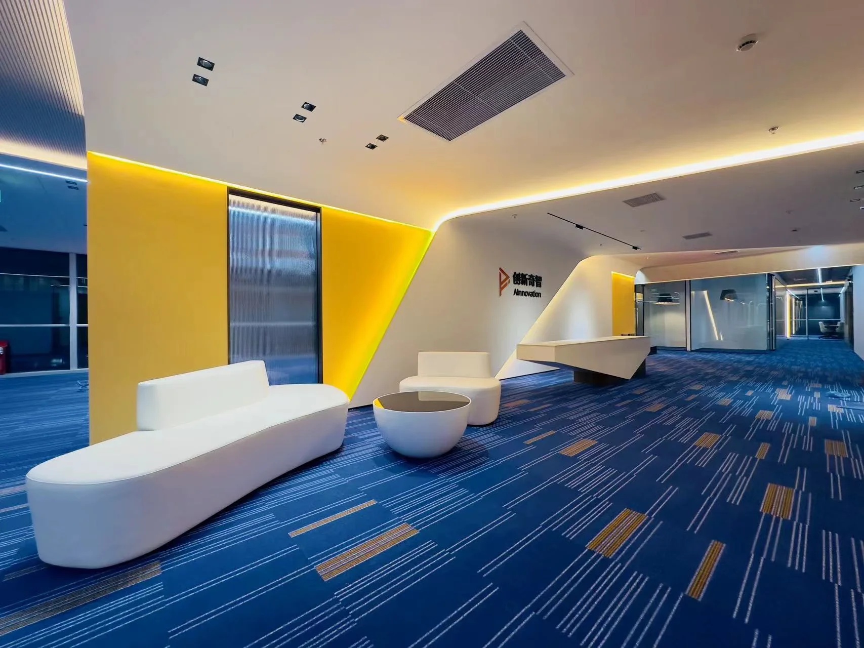 材料技术是一门历史悠久又不断创新的学科,人类对于材料的研究和应用可以追溯到人类的诞生之初,而现代材料在性能、应用领域的突破仍在不断的颠覆着人们的认知,是提升生活品质、推动社会进步的重要因素。新纶新材料作为该领域的引领者,我们在其办公空间的调性中融合了厚重沉稳的元素与活跃创新的基因。空间整体以石材、地毯、木饰面等传统的办公用材为主,同时在天花和灯具的设计上采用亮色的金属拉伸网和裸顶设计,在多功能厅、休闲区等空间加入跳色的软装家具,为沉稳高效的办公空间注入创新活力的元素,最终形成符合新纶新材料公司企业文化的专属办公空间。