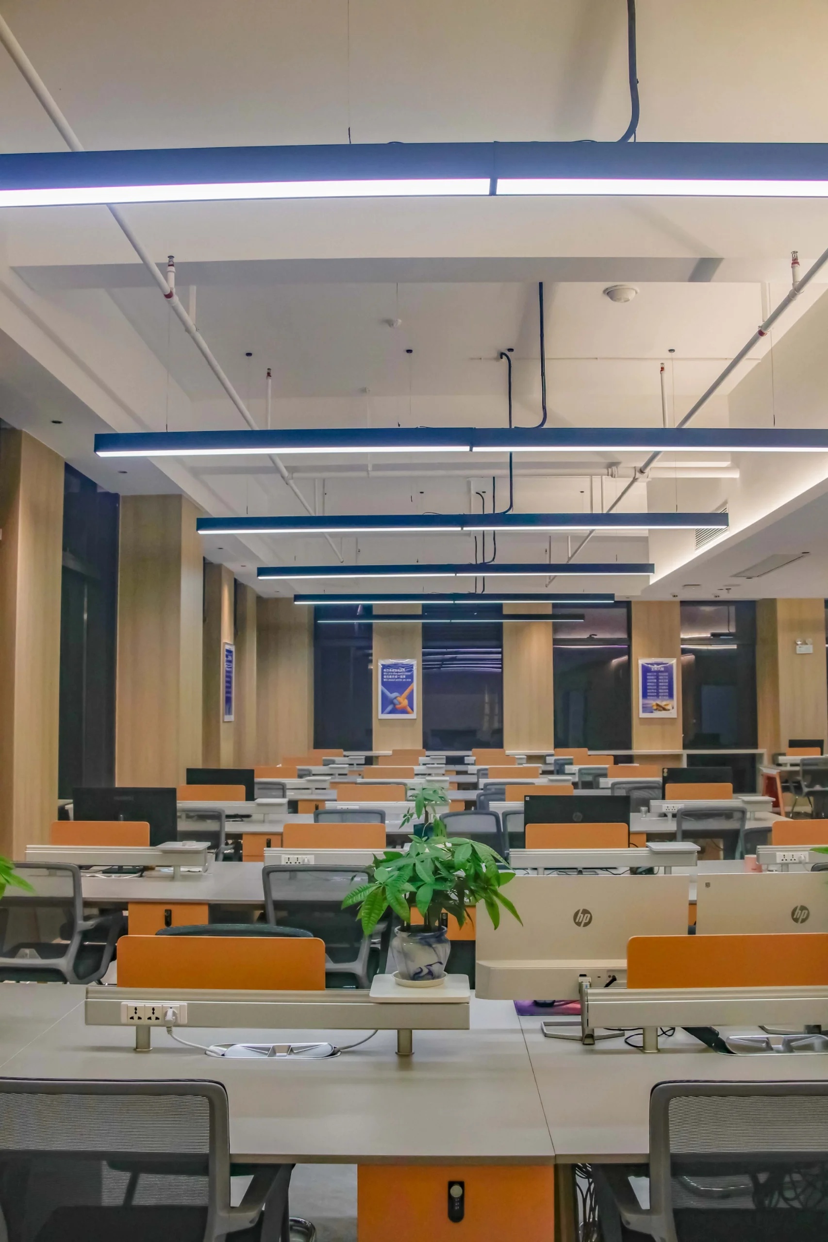 高新技术型企业办公空间的共同点在于对员工的尊重以及对效率的追求,体现在空间上呈现出平等、开放、透明的特质。我们将开放式工位布置在采光最好的外侧,将独立办公室、会议室、洽谈间等房间形成带状功能区布置在内侧,同时在带状功能区两侧形成内部和外部两条走廊,便于功能区与开放办公区之间的联系,又满足功能区对外形成独立的流线。