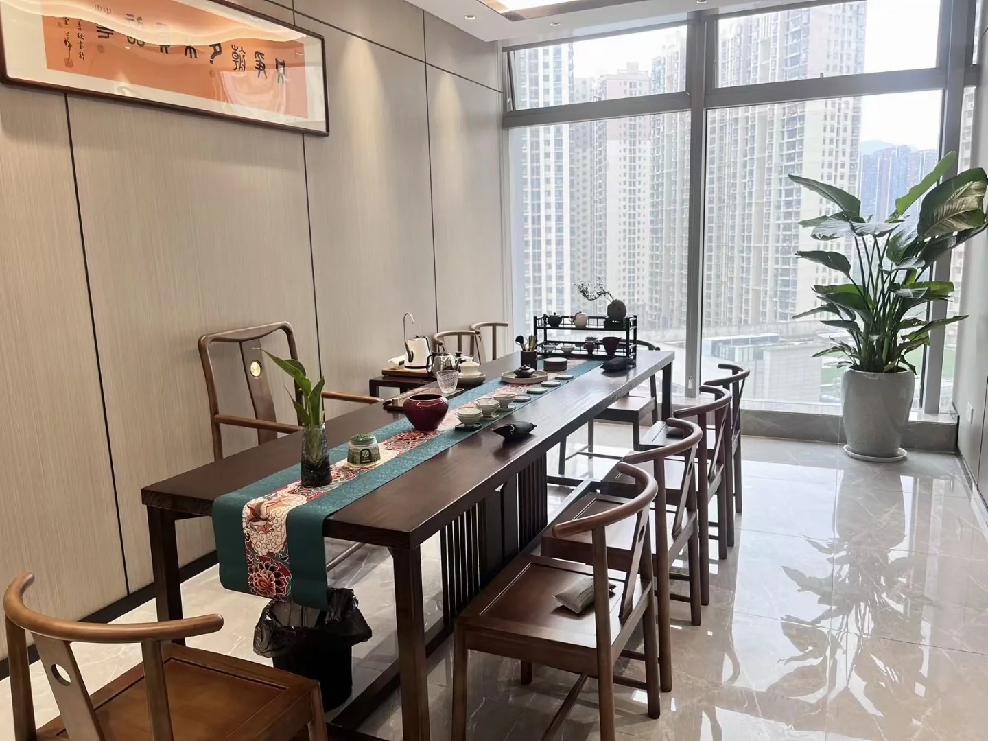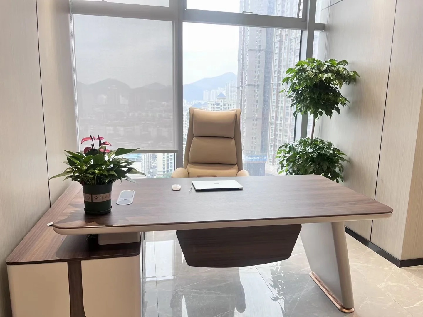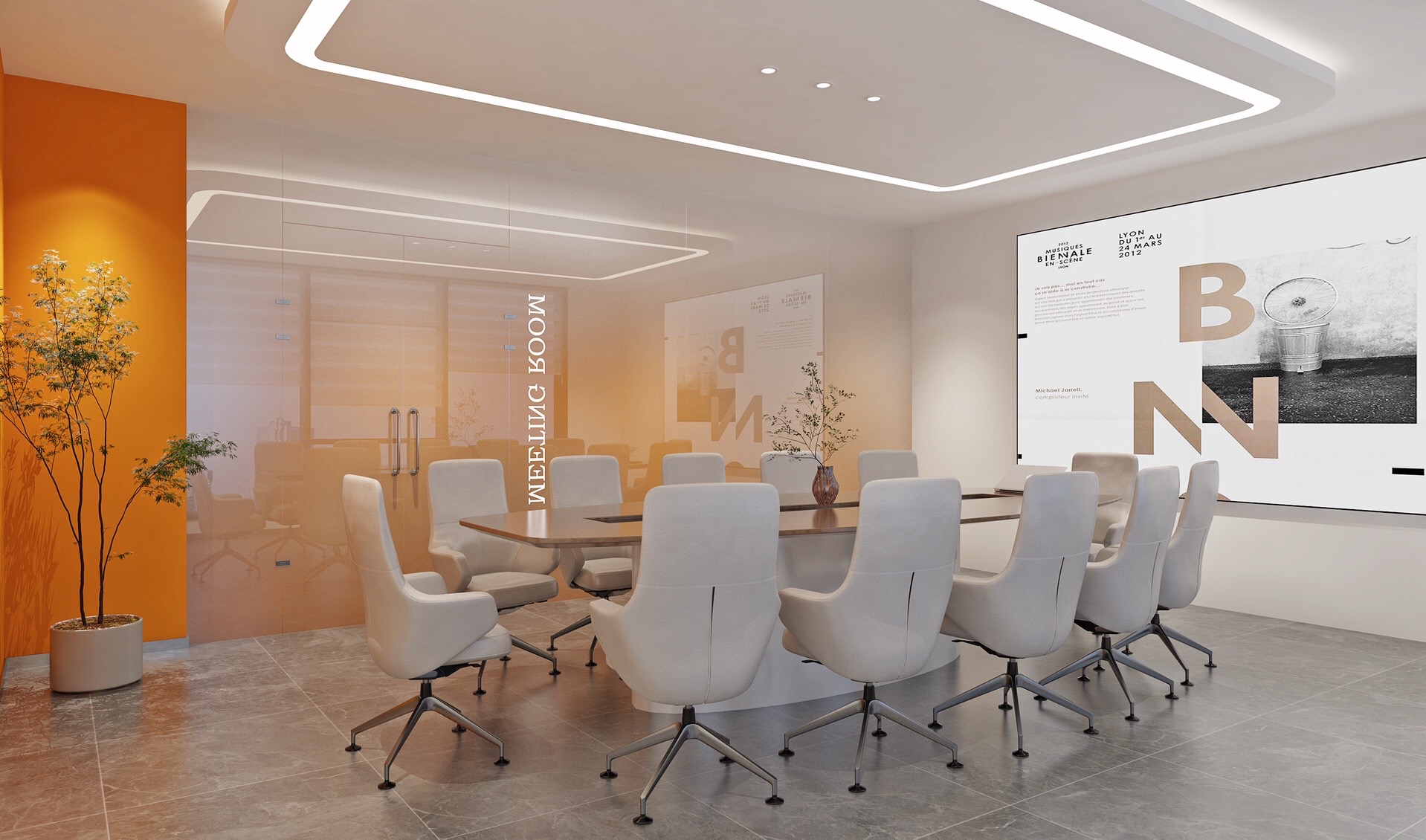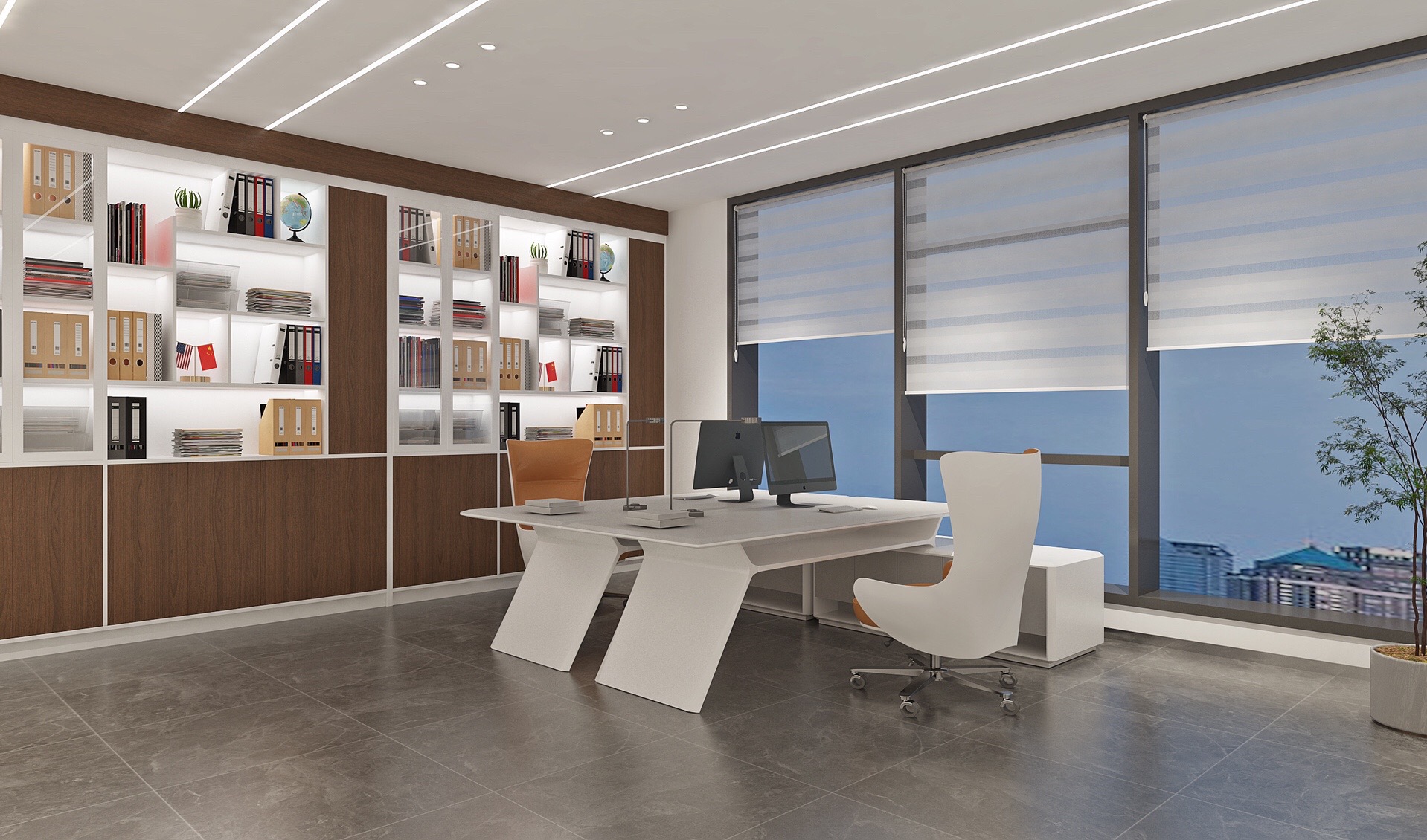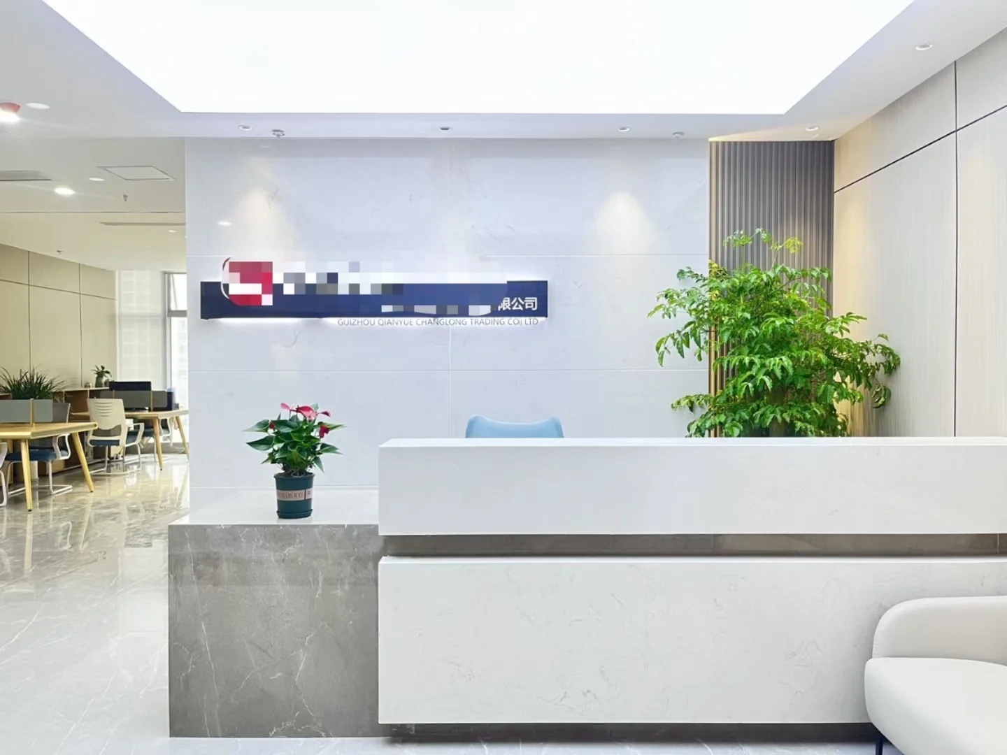 深色落地玻璃隔断从空间上分割了公共过道和工作区,同时可以作为员工小组讨论的写字板。