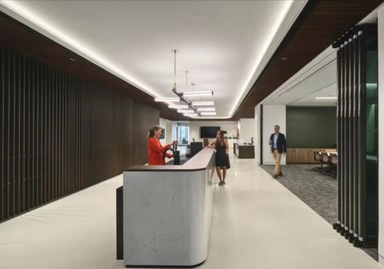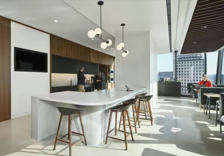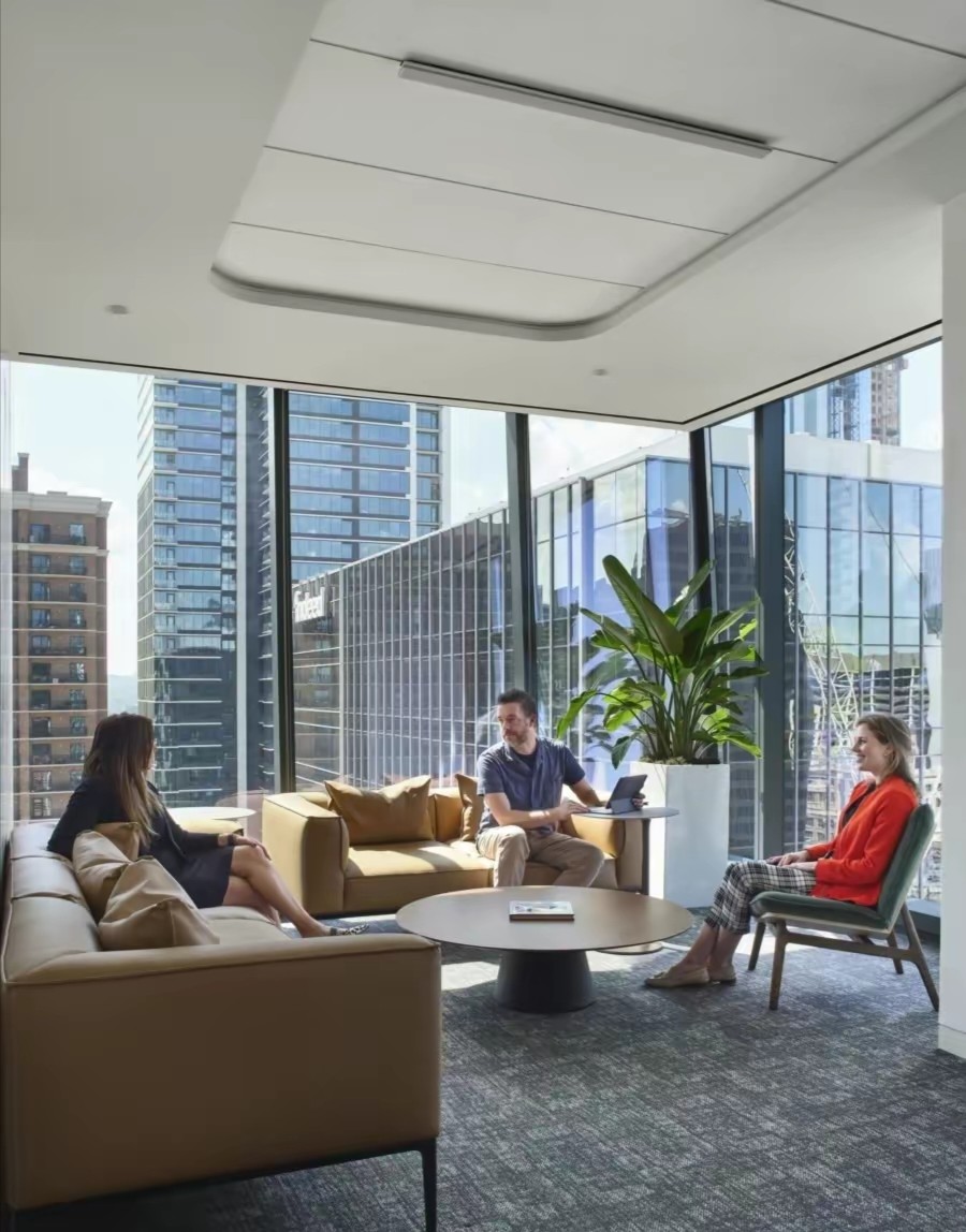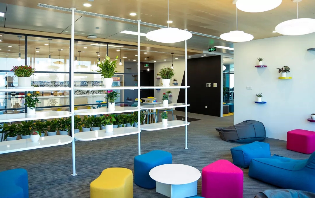 主要办公区的布置仍沿用了斯特沃克一直以来的理念,办公桌的摆放呈Z字形,制造更多的交汇点和路线。这样的设计是希望员工在座位上看到的非其他人的背影,而是侧面,并且在办公室活动中增加人与人之间相遇的几率,给枯燥的办公环境带来更加亲切自然的舒适感。