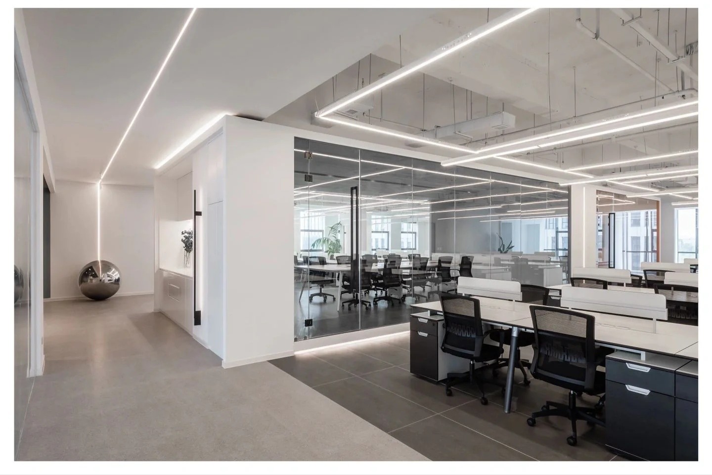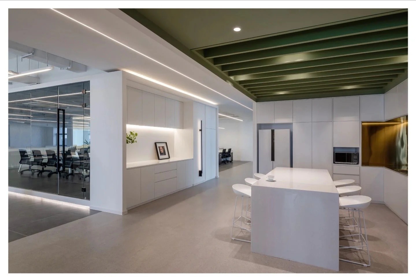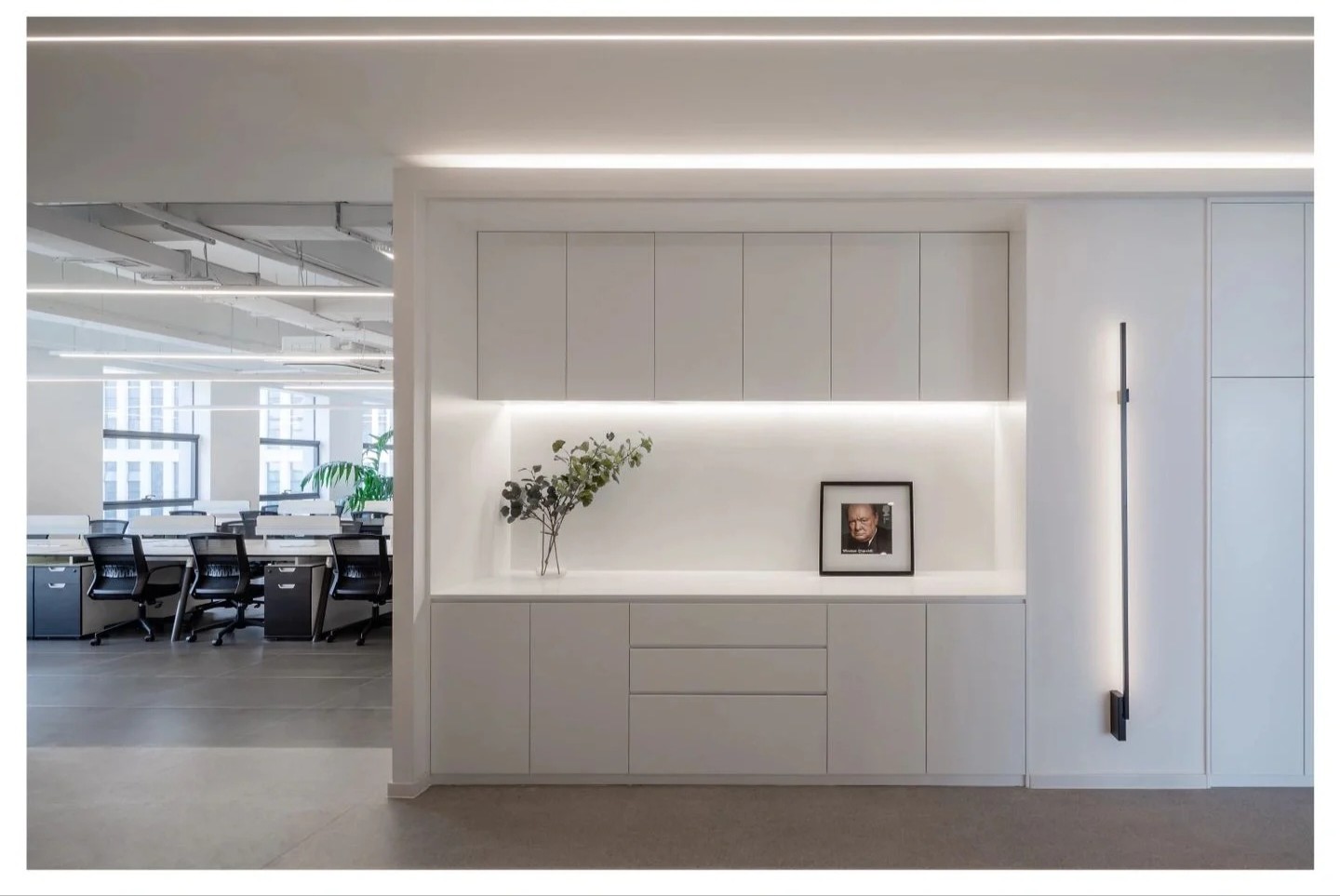 设计者在空间中的一些区域还布置了该公司的logo。对这些元素的使用有助于打造这个宽敞的办公空间。