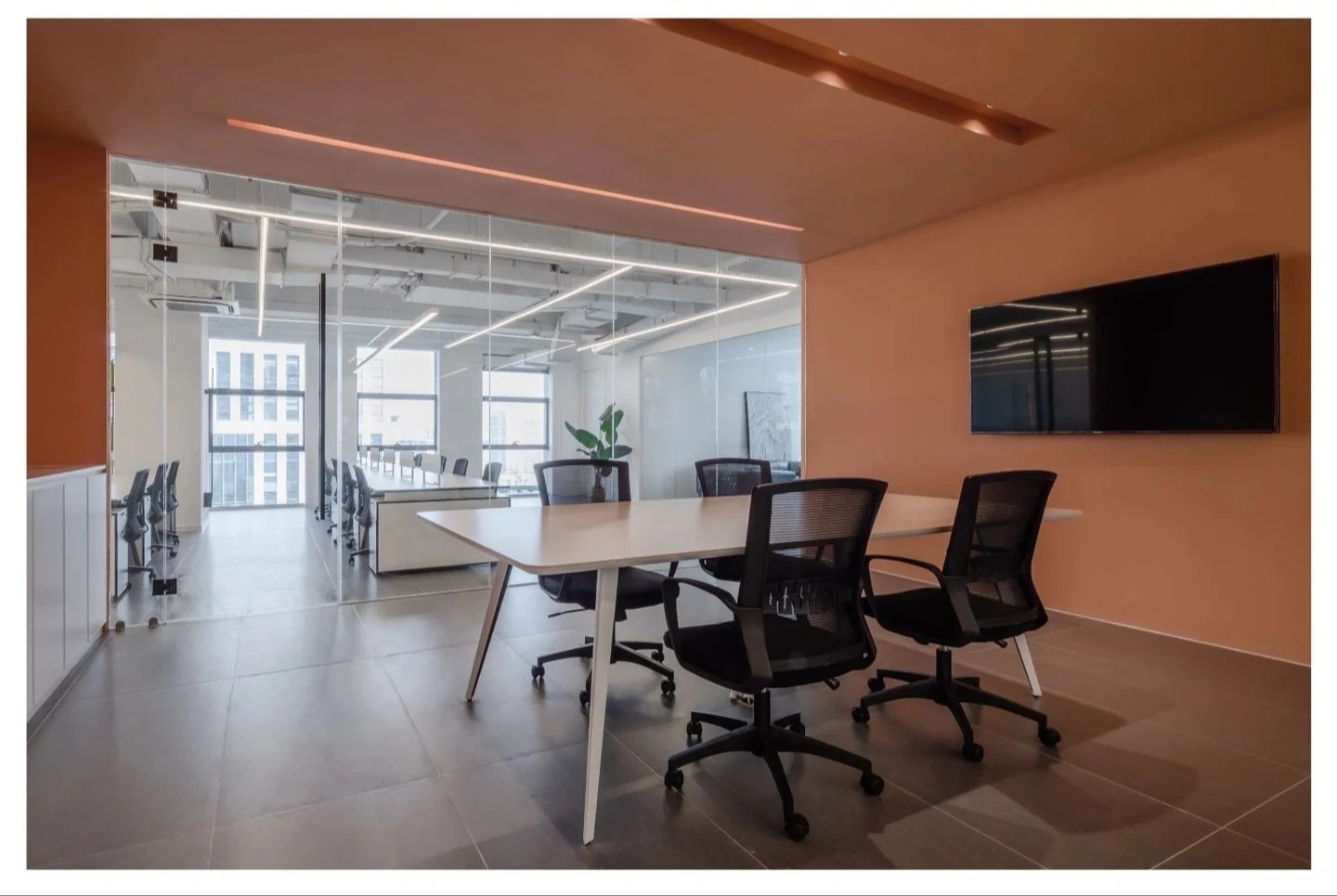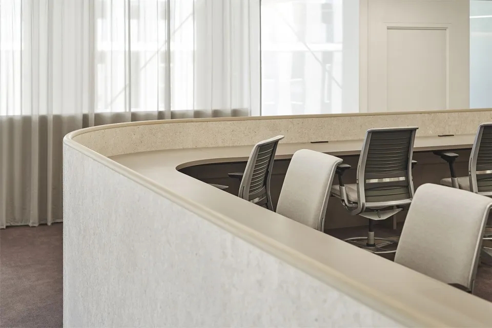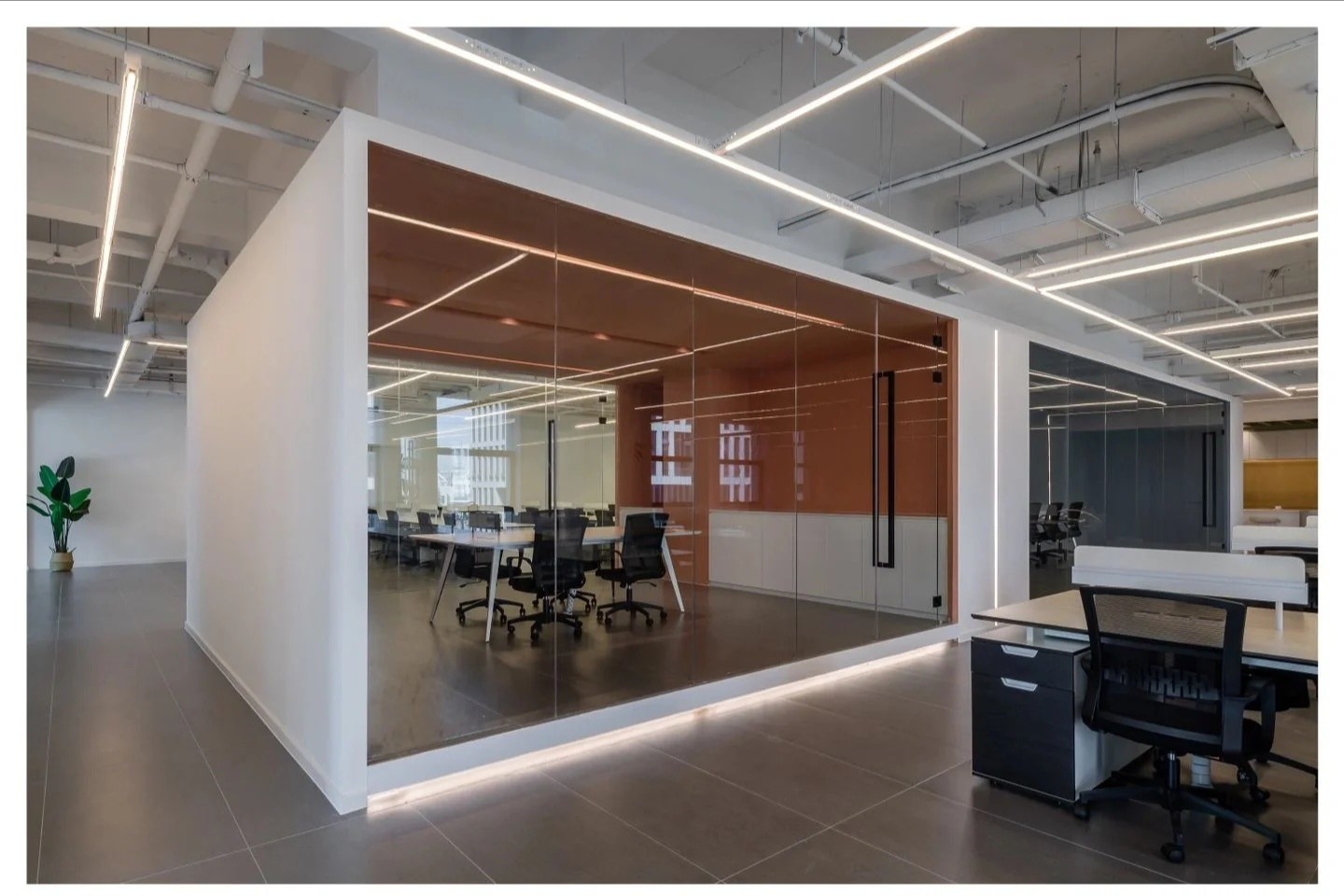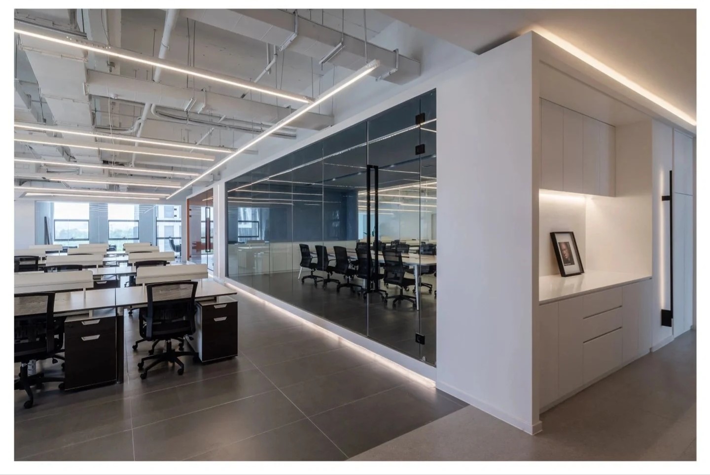 设计者在空间中的一些区域还布置了该公司的logo。对这些元素的使用有助于打造这个宽敞的办公空间。
