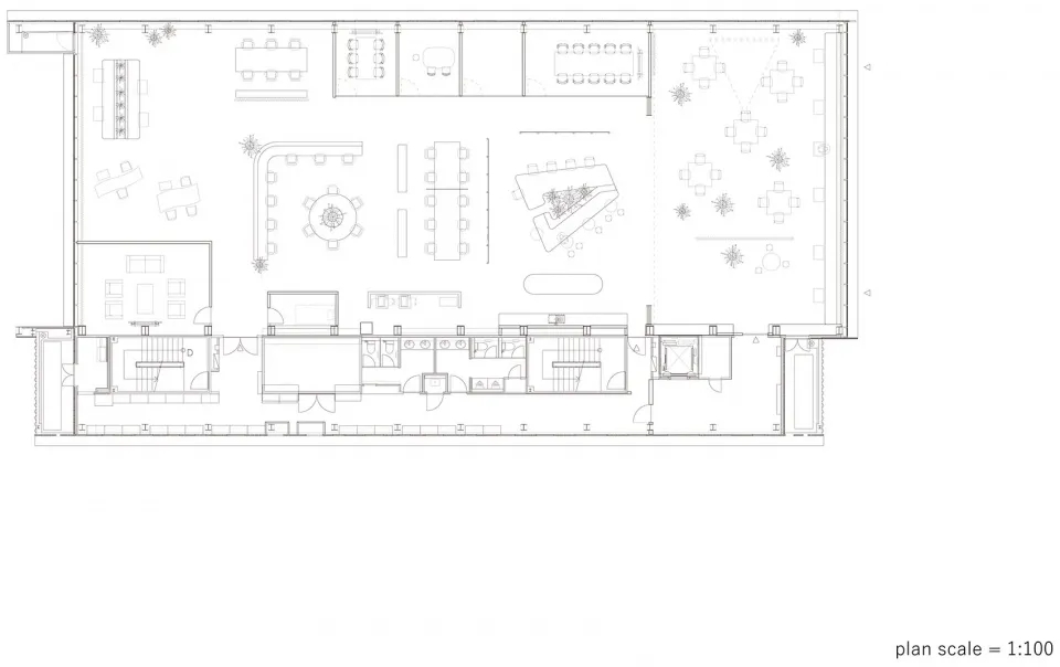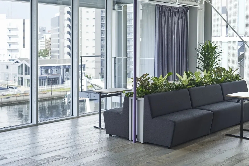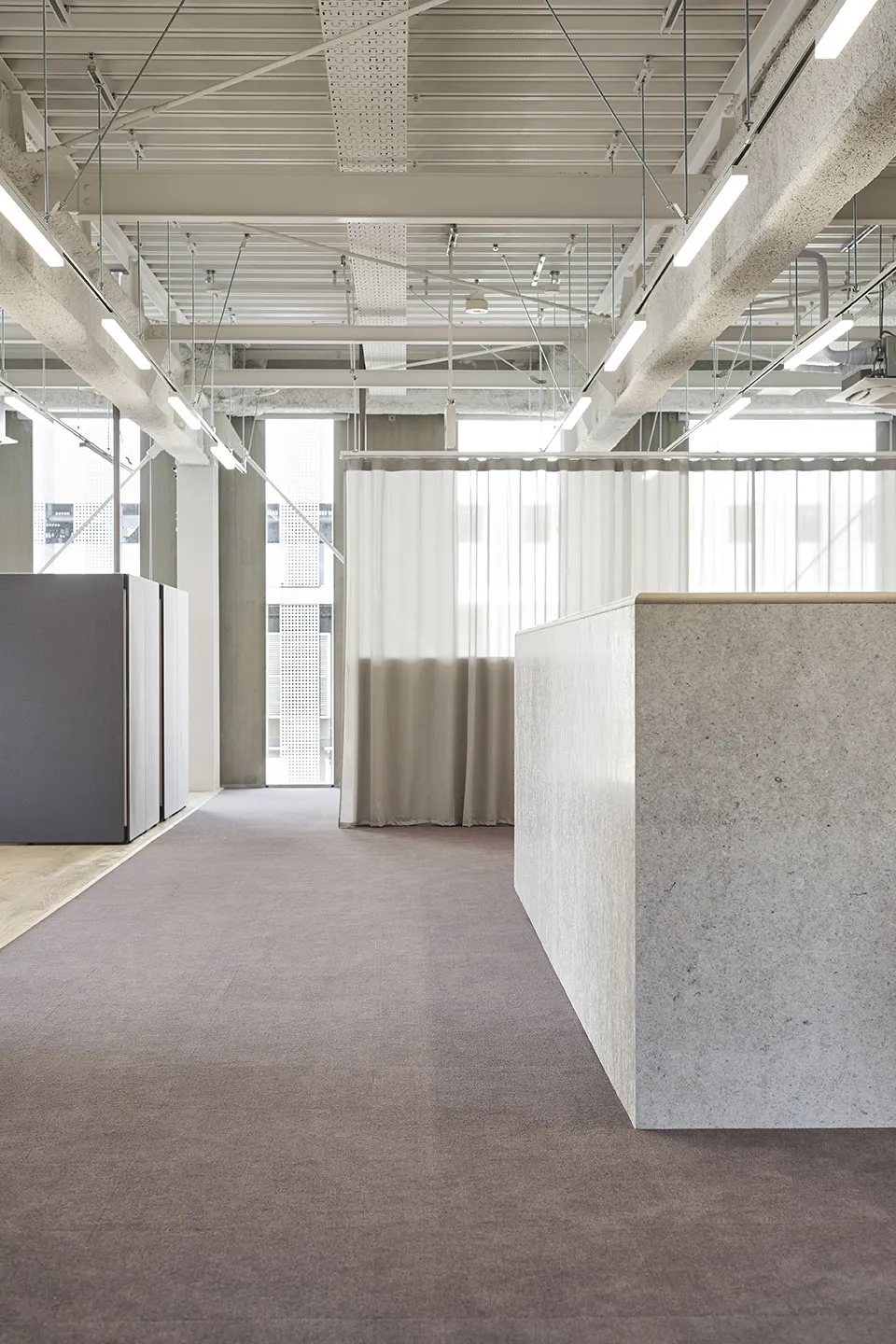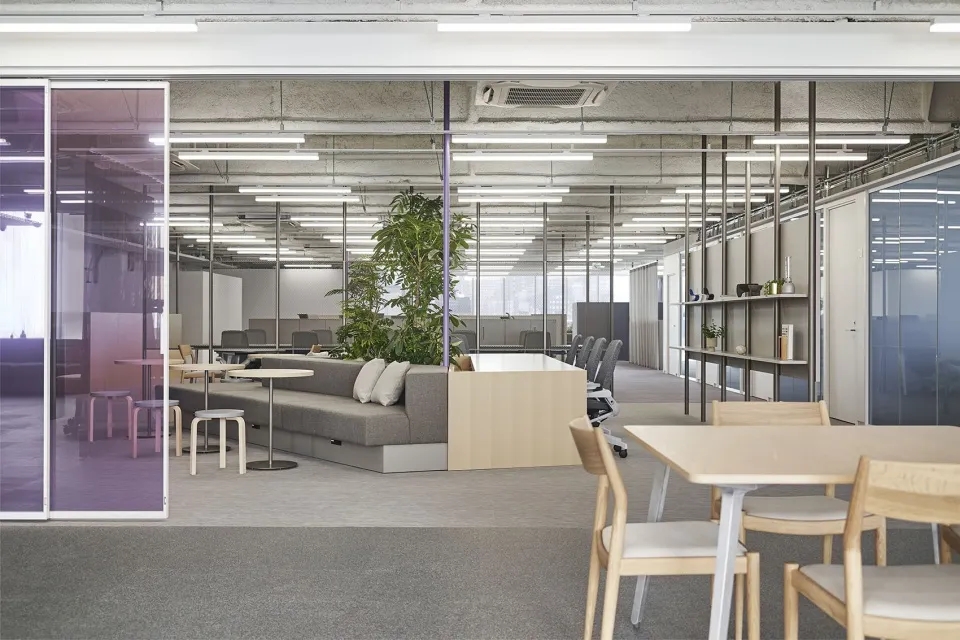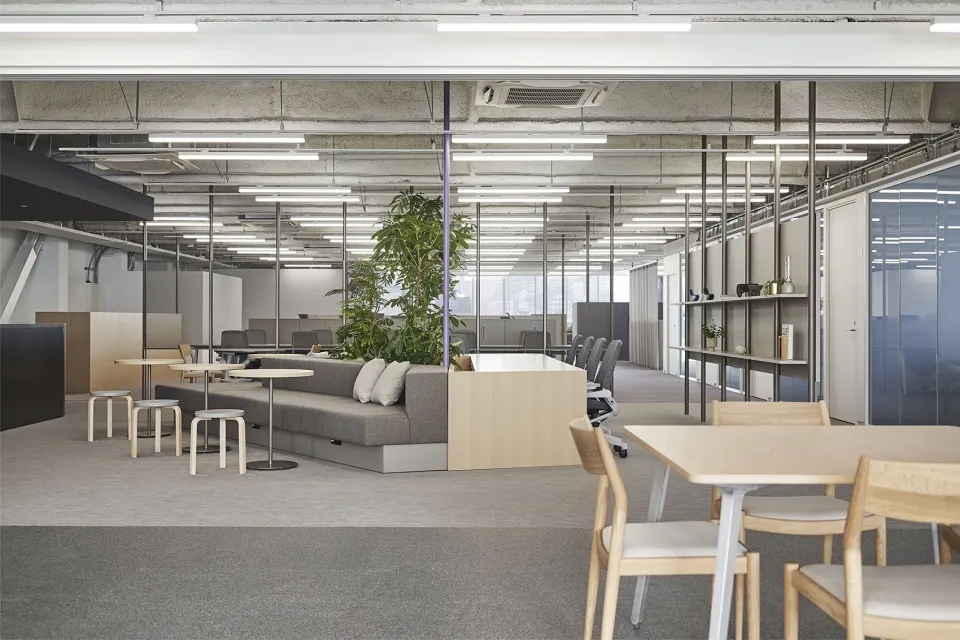 设计者对办公室的改造以“改善同事们的工作场所”为出发点,公司里不仅有全天候在办公室工作的员工,也有下班后从施工现场直接回家、不再回到办公室的员工。由于这个原因,公司对办公室的布局需求是能够容纳不同办公类型的员工,让他们在各自的岗位实现最大的效益。此外,由于L LINE是一家不断成长的公司,该办公室的设计也需要确保能够实施新的创新,因此根据不同业务灵活改变的空间特质也是必要的。