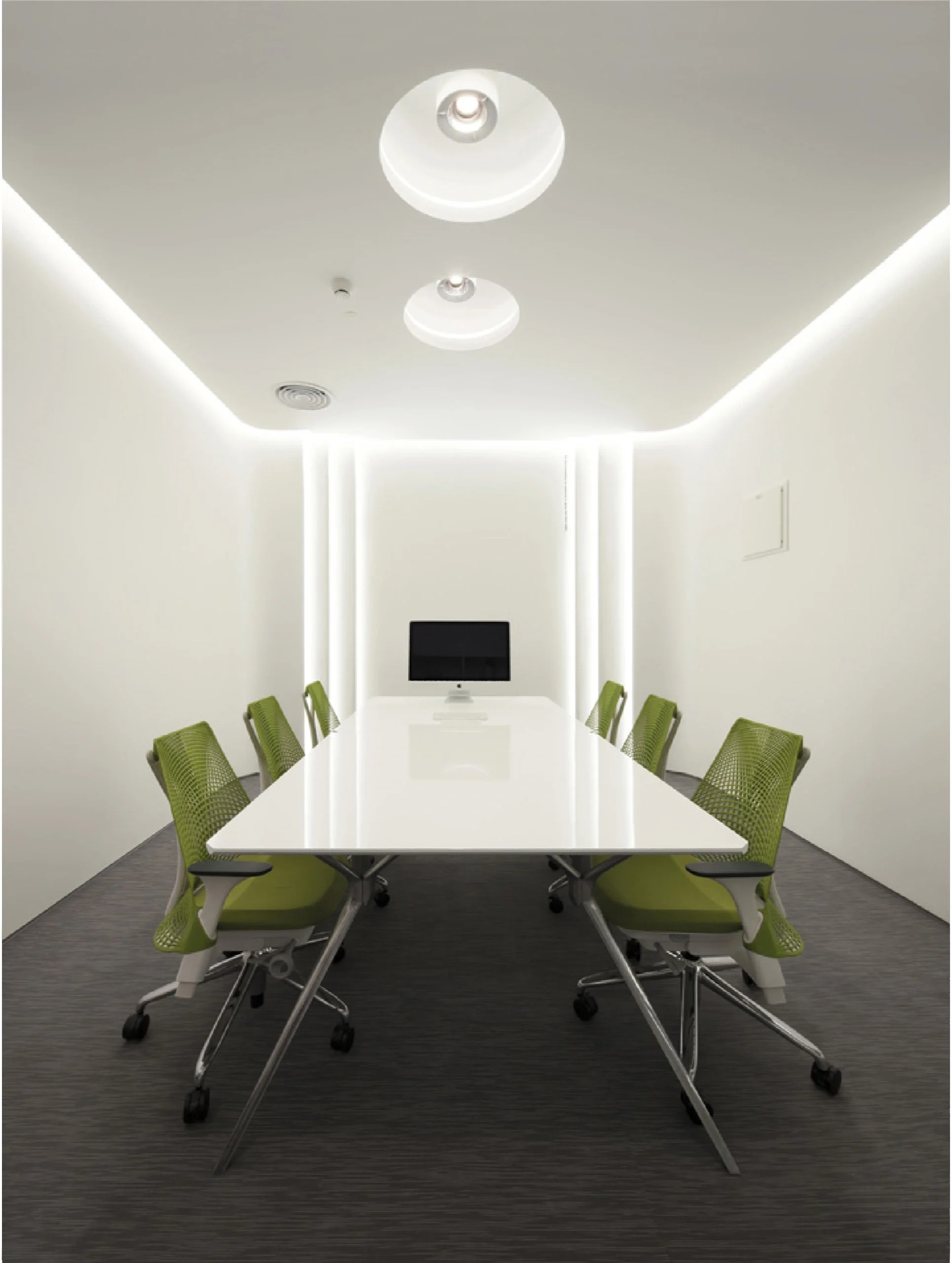 设计师将想象中的未来世界放入现实,超现实的风格元素,闪跃的踏步发光梯板,轻盈跳跃的色块,打造了一个具有科技感的办公空间。