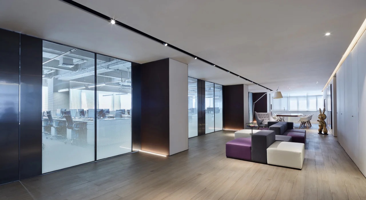 这个项目的装修风格属于极简风细节中带着一点色彩点缀让办公氛围更加活跃轻松采用全透明玻璃隔断,让整体环境更加明亮通透大面积办公区陈列整齐划一方便管理休息区随性舒心会议桌采用原木大桌面高级感十足