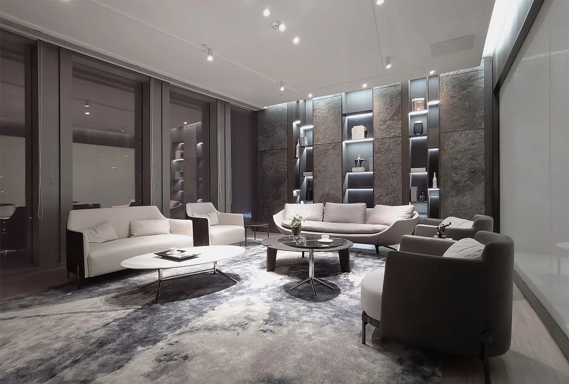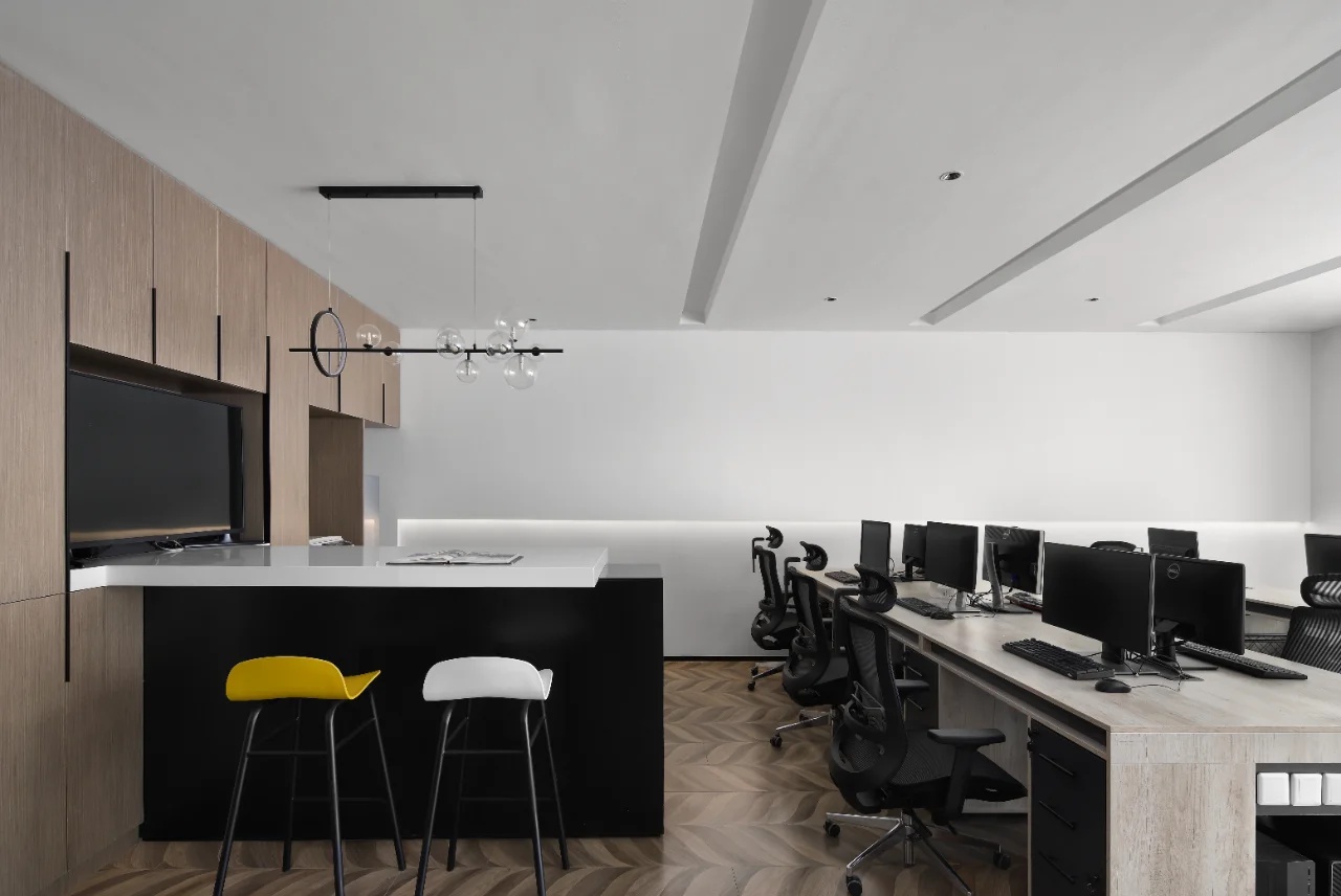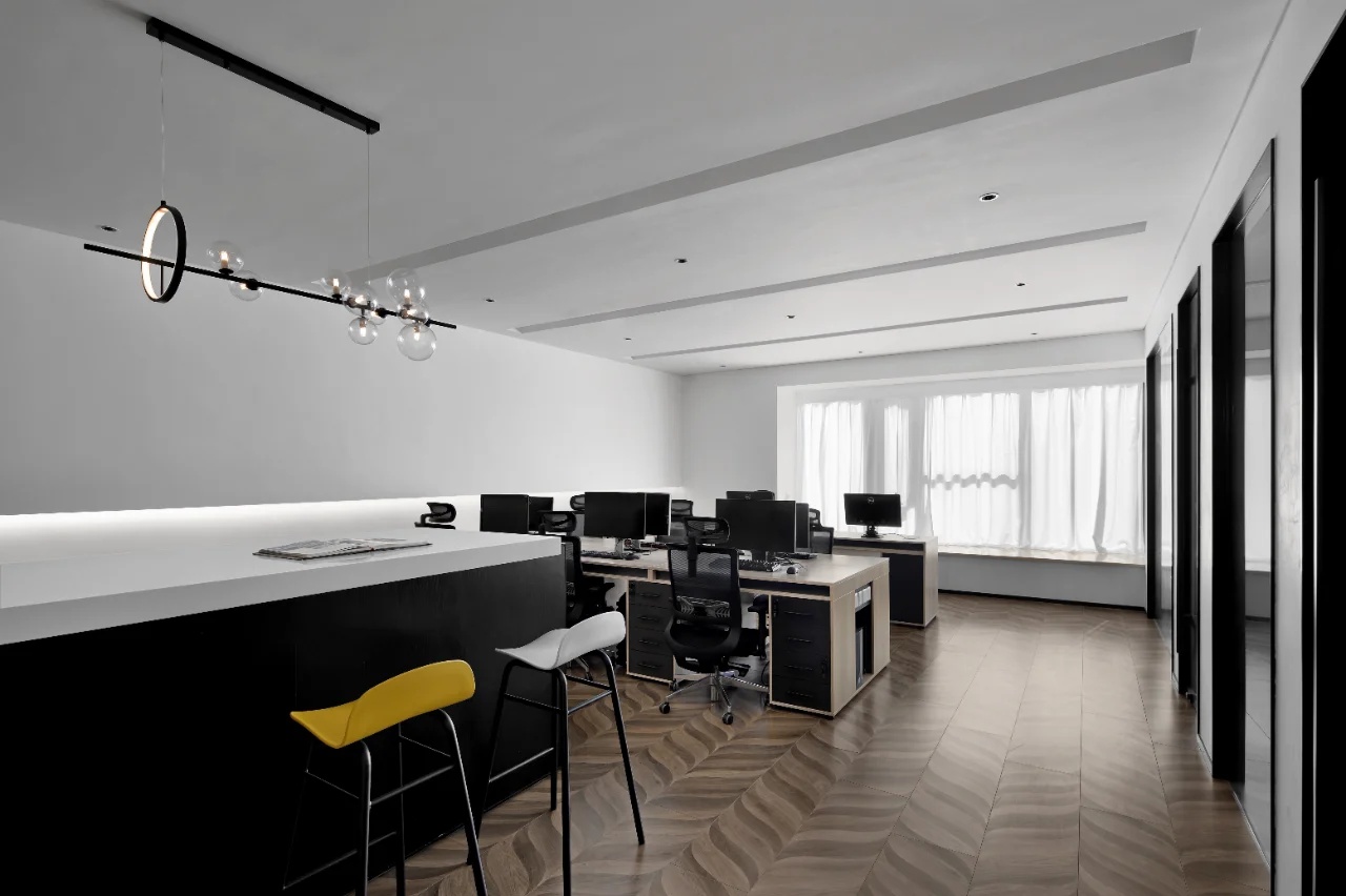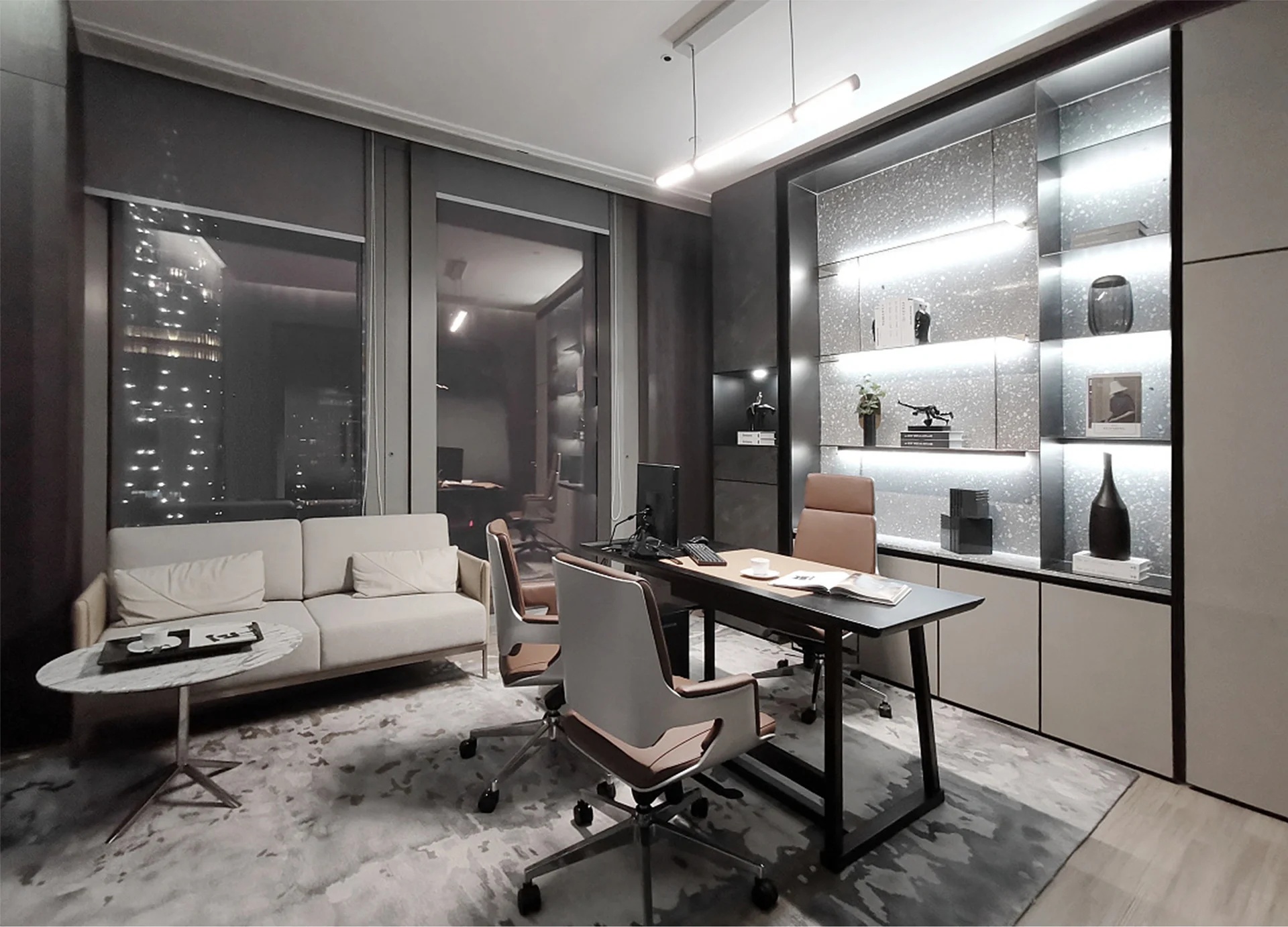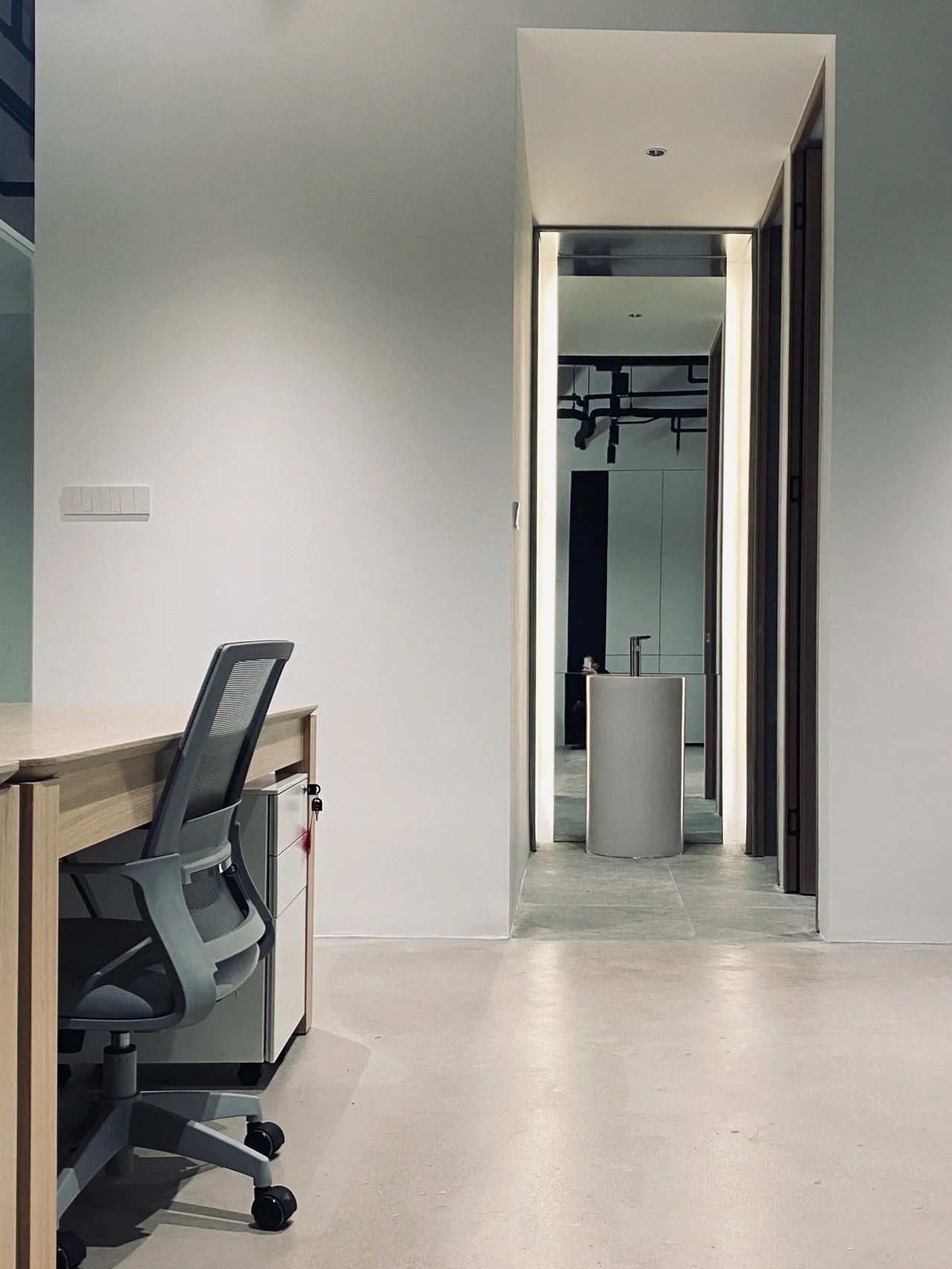 办公室设计| 设计理念:精致的设计和精心的编排并非奢华的代名词,物质世界中真正的奢华,应该更安静而经得起时间的打磨。-简洁的纵向线,岩板的大面积运用,即保证了空间简洁美学,细节之处也不失精细考究的设计处理,朴素材料的细微差别和它们的质感使构成空间简洁的元素,在这里空间本身得到了表现。-用柔和的方式展示对比本身,抛开一切外在诠释,追寻最纯粹的“艺术原点”。平静的色彩,简单的布局,展现简约、高级感的同时,也使体验更为栩栩如生,直击内心。