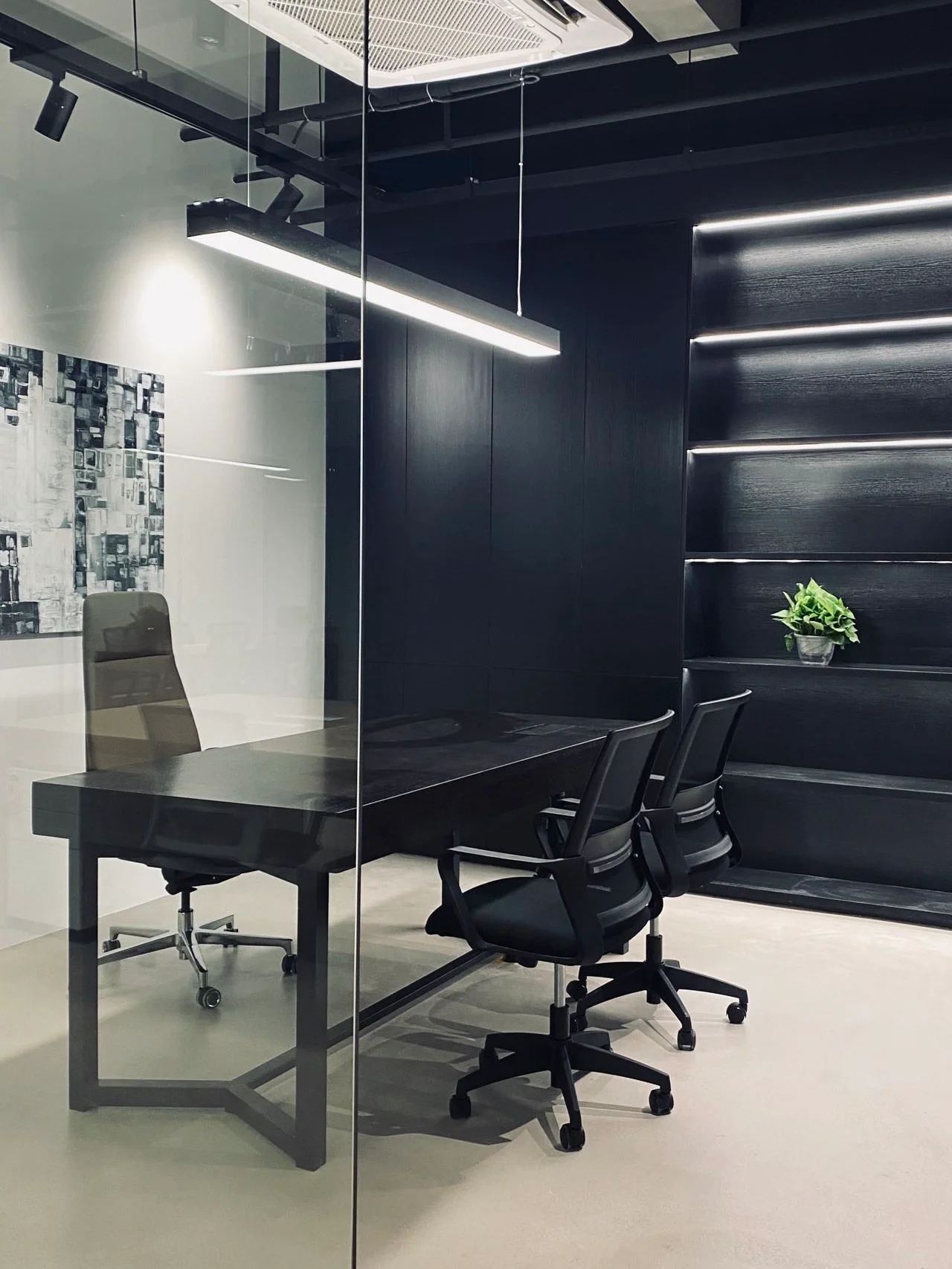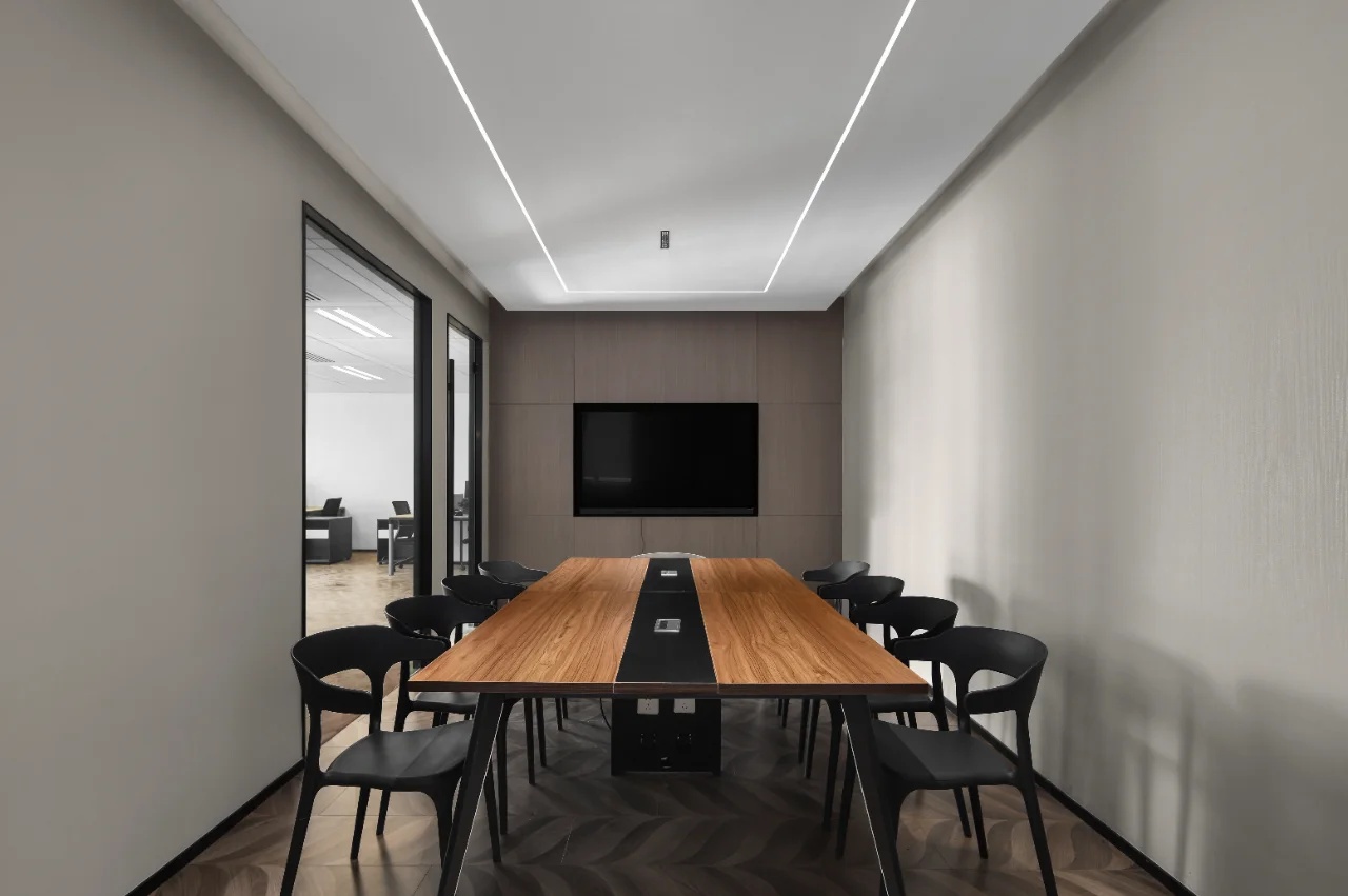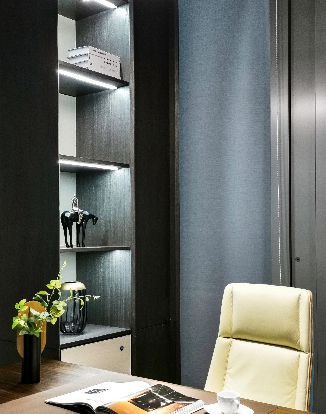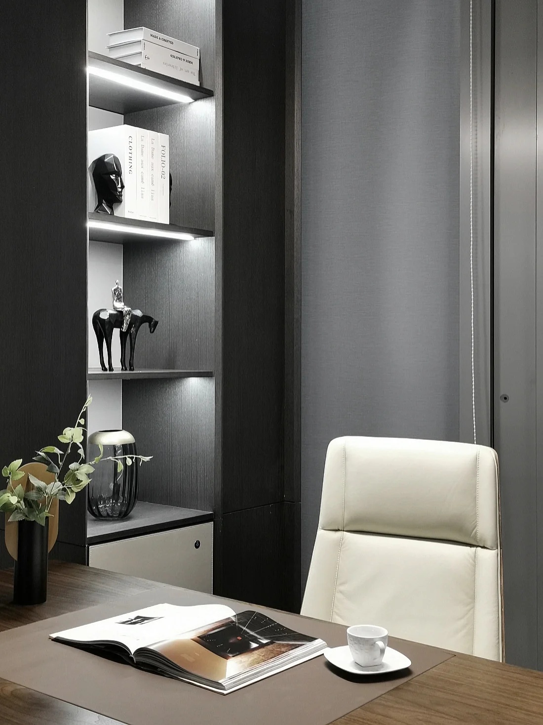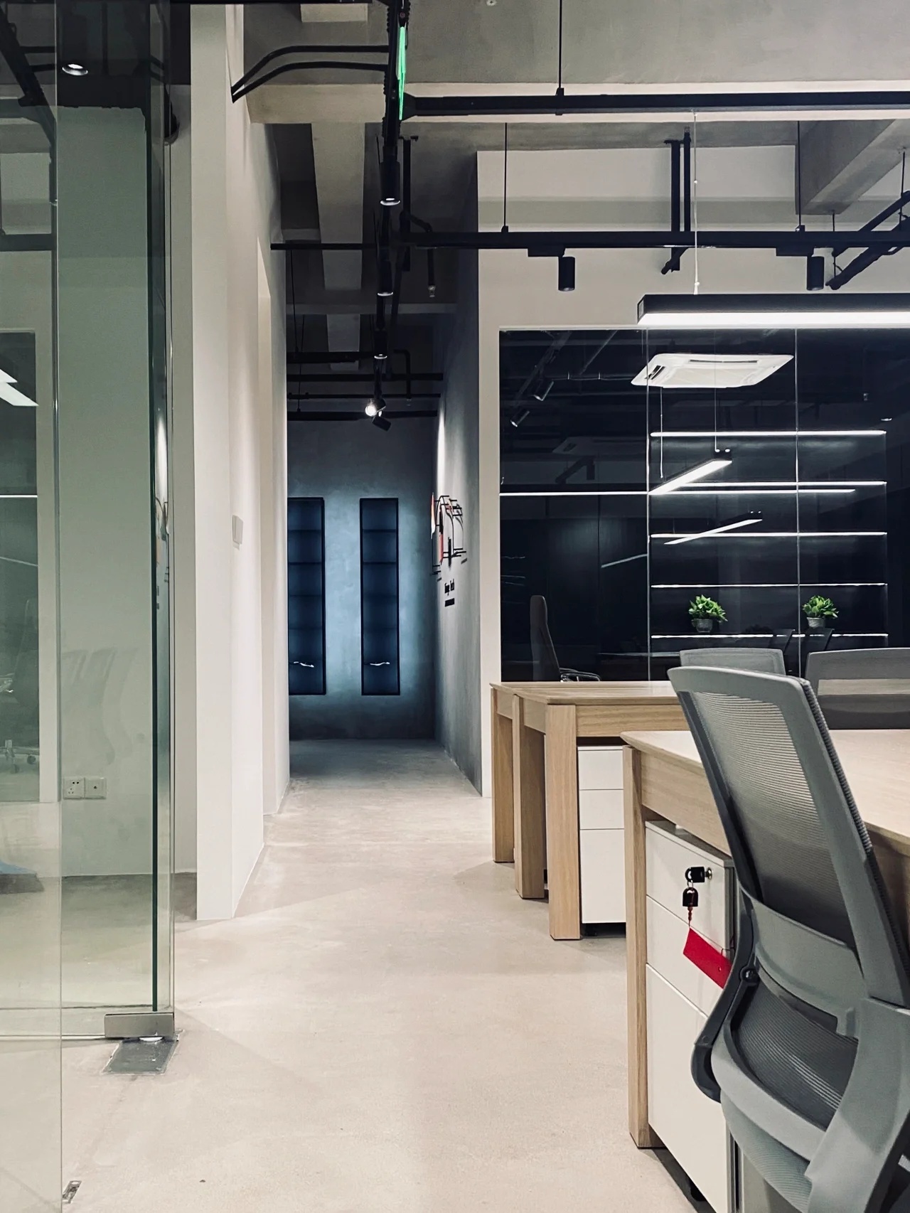办公室设计| 设计理念:精致的设计和精心的编排并非奢华的代名词,物质世界中真正的奢华,应该更安静而经得起时间的打磨。-简洁的纵向线,岩板的大面积运用,即保证了空间简洁美学,细节之处也不失精细考究的设计处理,朴素材料的细微差别和它们的质感使构成空间简洁的元素,在这里空间本身得到了表现。-用柔和的方式展示对比本身,抛开一切外在诠释,追寻最纯粹的“艺术原点”。平静的色彩,简单的布局,展现简约、高级感的同时,也使体验更为栩栩如生,直击内心。