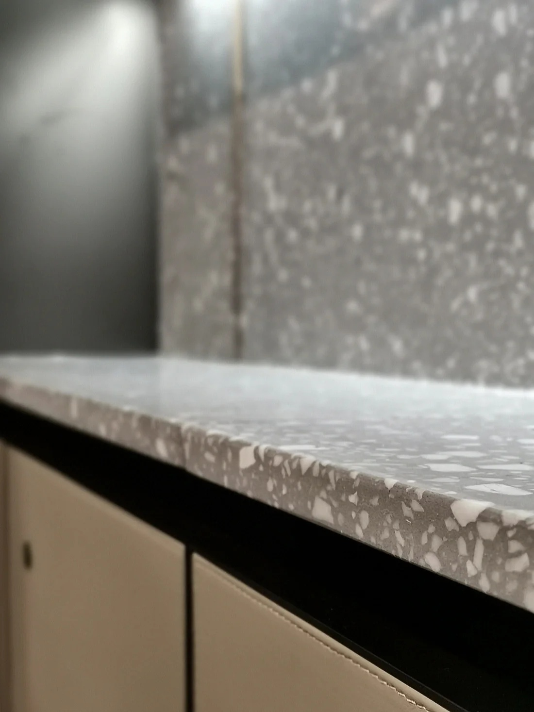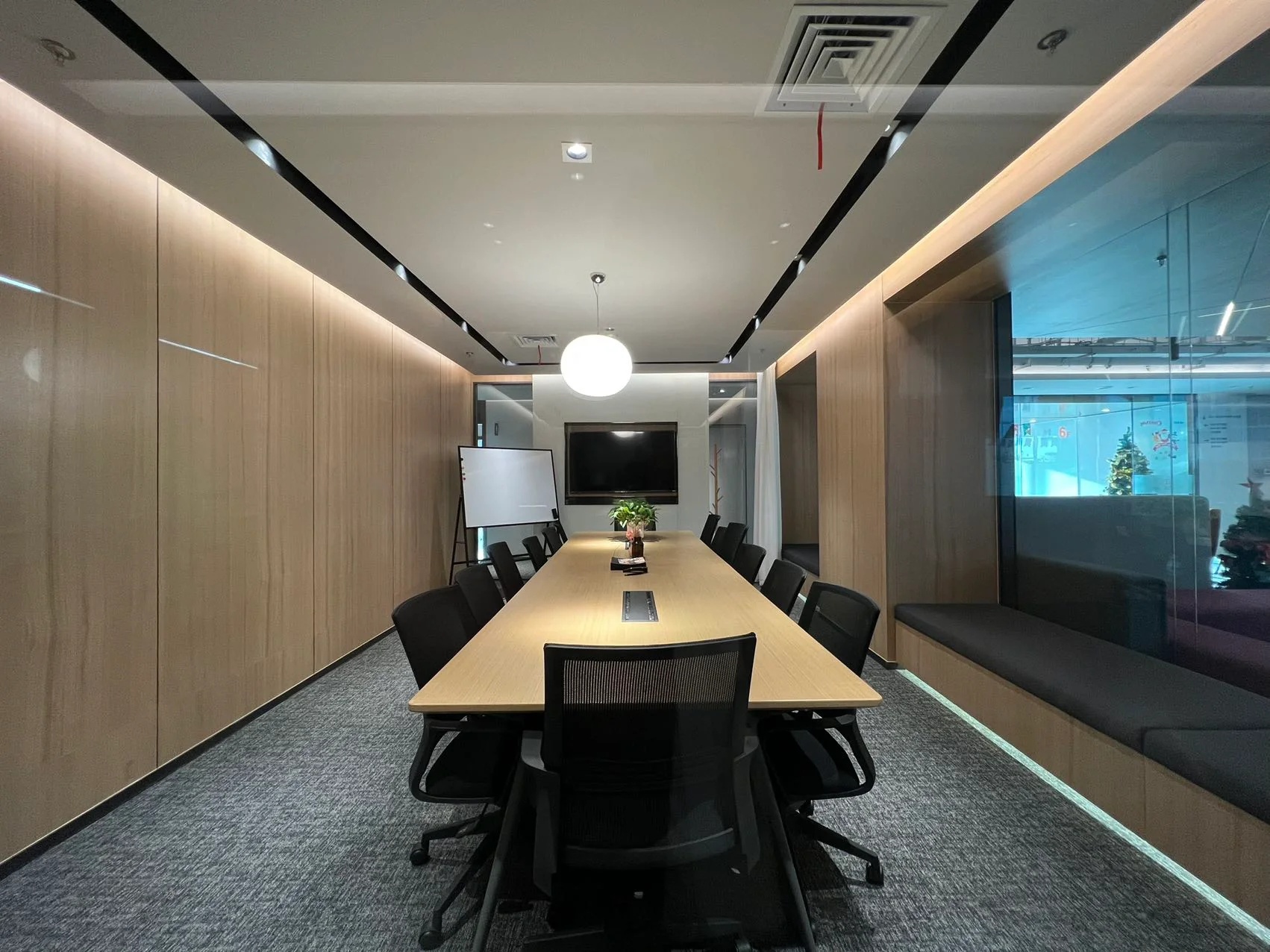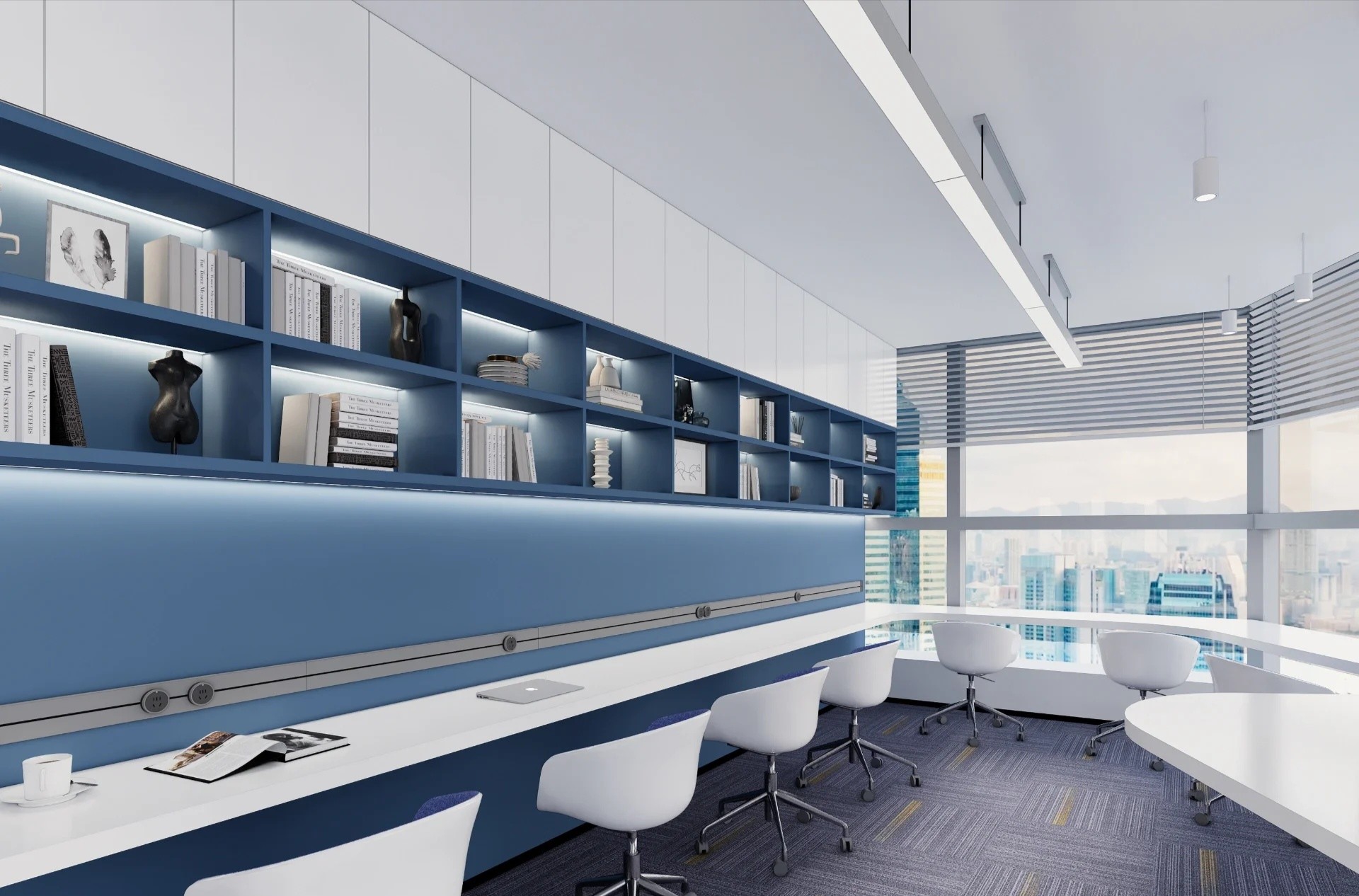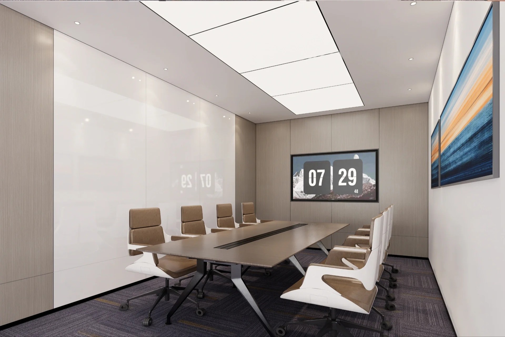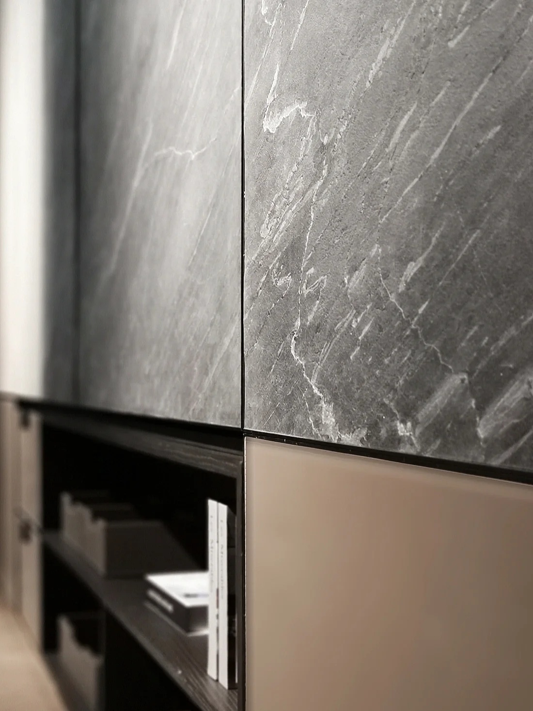 办公室设计| 设计理念:精致的设计和精心的编排并非奢华的代名词,物质世界中真正的奢华,应该更安静而经得起时间的打磨。-简洁的纵向线,岩板的大面积运用,即保证了空间简洁美学,细节之处也不失精细考究的设计处理,朴素材料的细微差别和它们的质感使构成空间简洁的元素,在这里空间本身得到了表现。-用柔和的方式展示对比本身,抛开一切外在诠释,追寻最纯粹的“艺术原点”。平静的色彩,简单的布局,展现简约、高级感的同时,也使体验更为栩栩如生,直击内心。