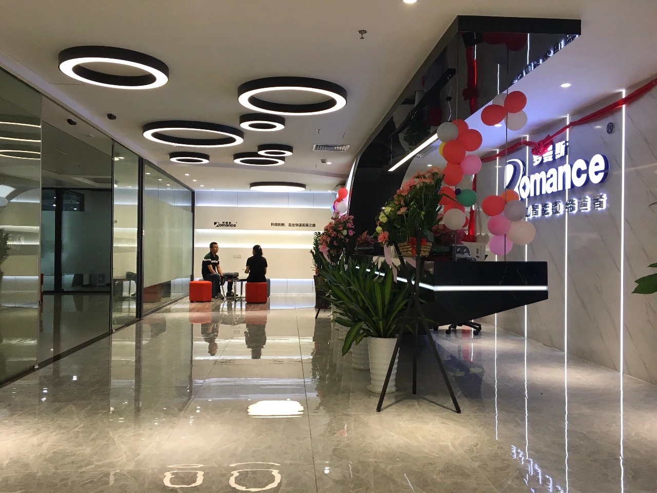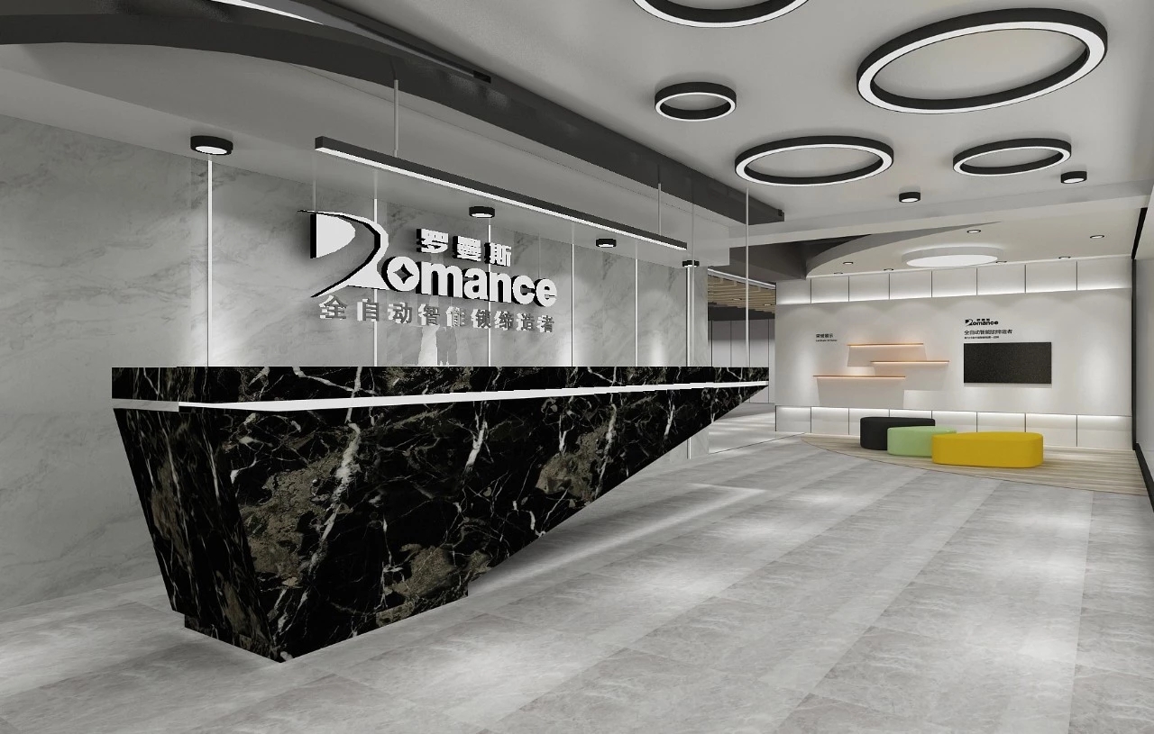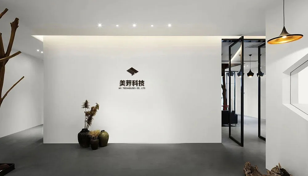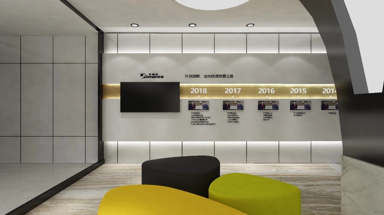 以迎客松生长的造型寓意罗曼斯和奋达科技强强联合的背景下欣欣向荣,茁壮成长的愿景结合左青右白的风水格局,通过北欧现代简约的科技感设计风格营造入口氛围,并且适合取景拍照.