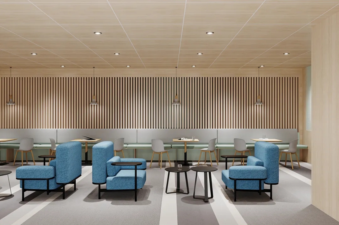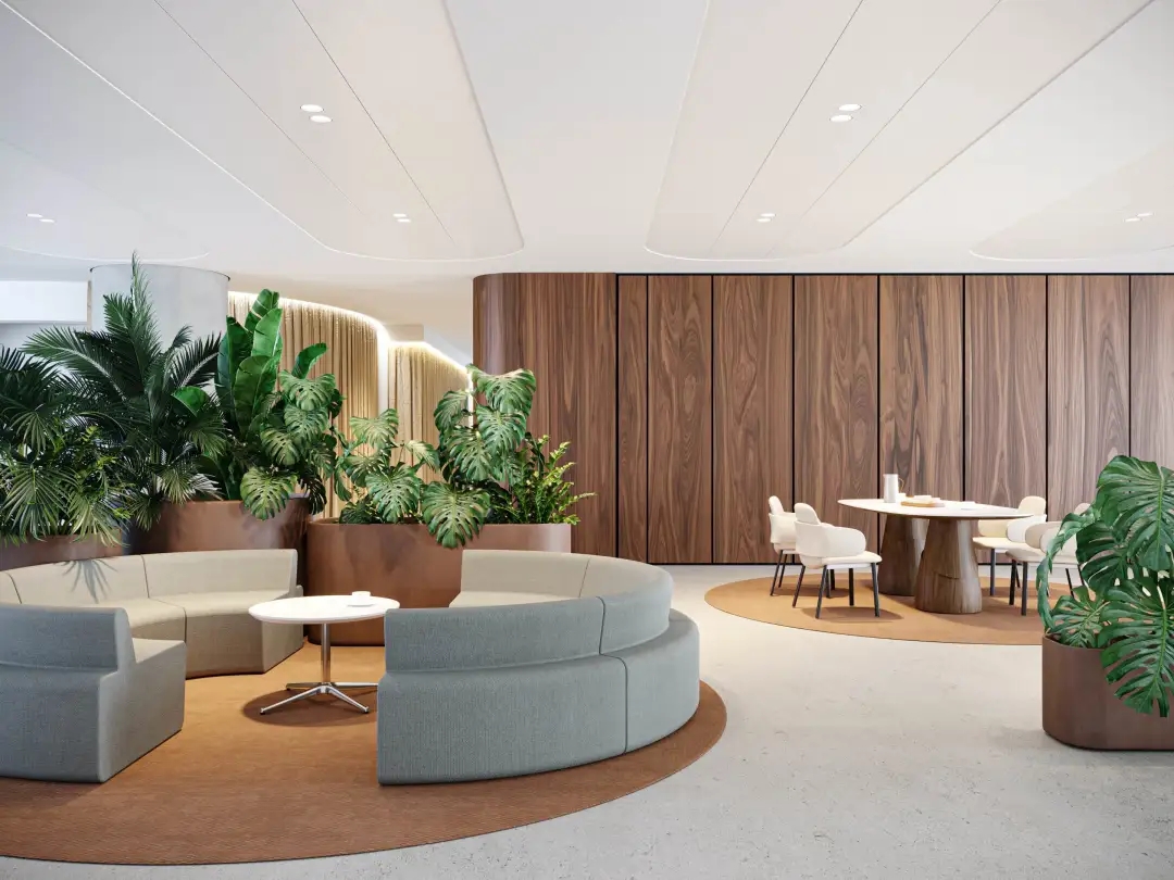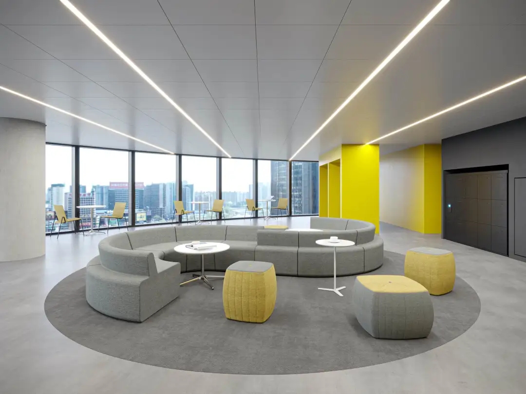#办公智造# 将自然的元素融入到前厅主题设计之中,【生长的力量】是艾图团队想要表达的思想:如竹苞矣,如松茂矣,出自《诗经·小雅·斯干》。