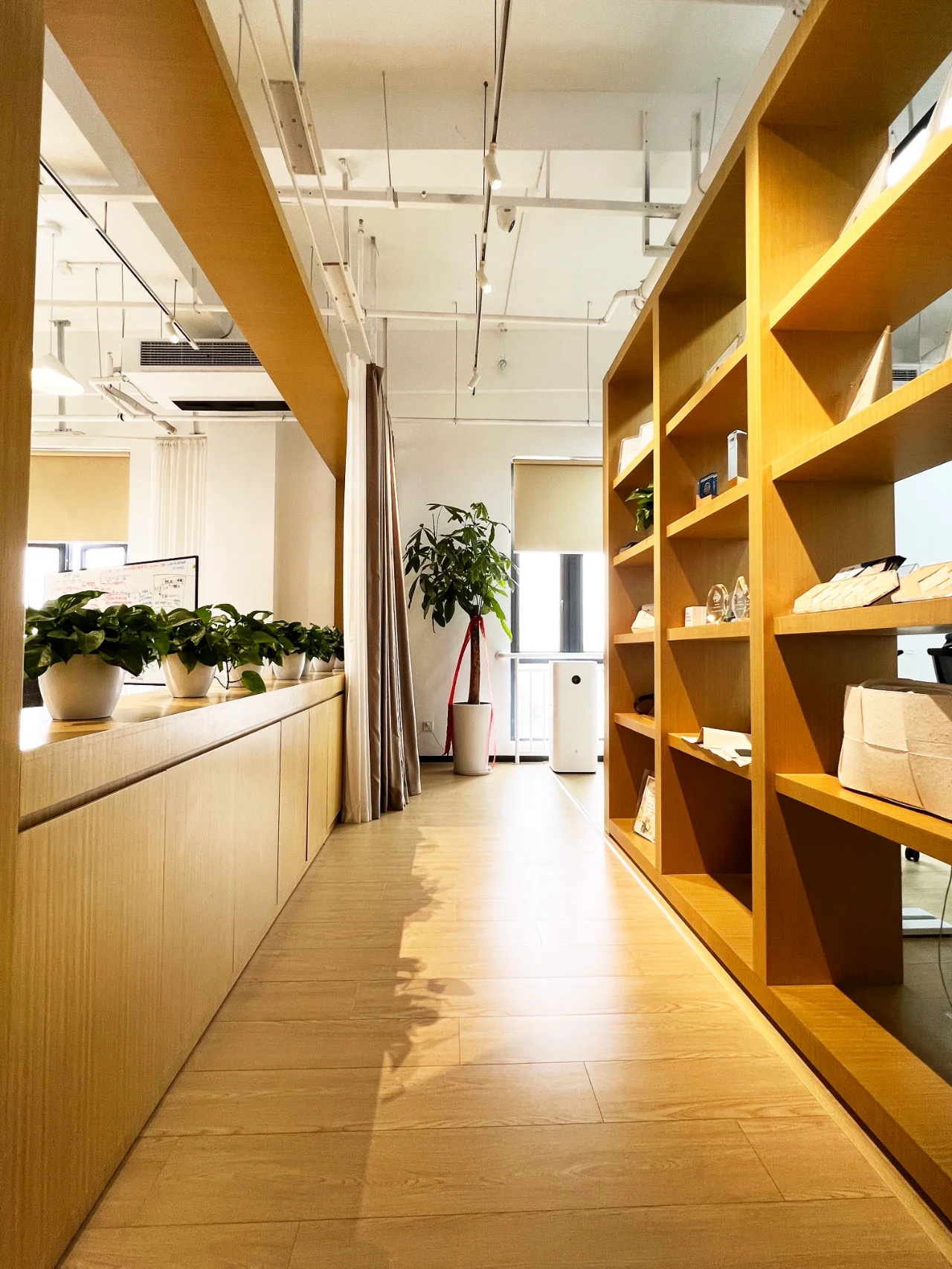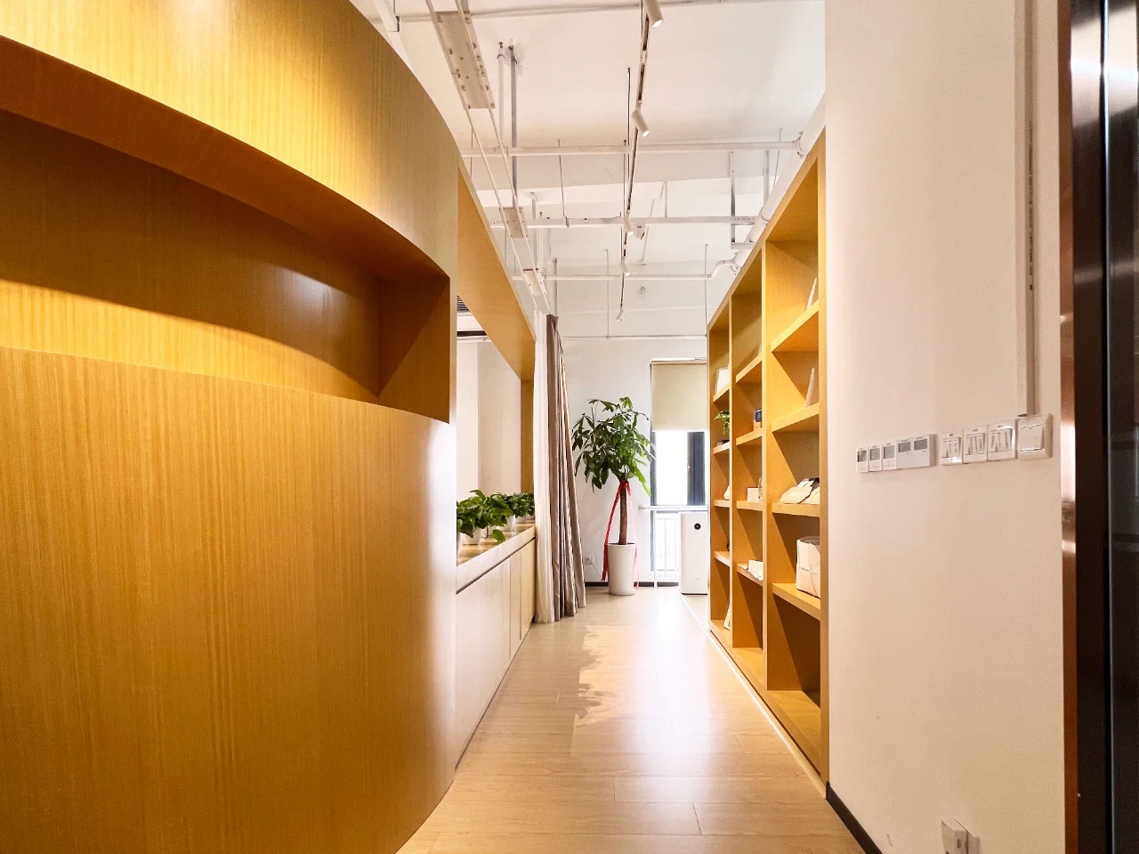 项目业主Synmetabio贻如生物科技是一家由三位年仅二十出头的年轻创业者成立的初创公司,这里是他们成立公司的第一个办公空间。项目整体包括一个约300㎡的实验室,和约130㎡的办公区,我们负责的便是后者。在一个仅有130㎡的空间内,业主提出需要14-16人办公位,同时还要提供对外洽谈的空间、宣讲的空间、会议的区域、员工休息的水吧、甚至包括“可供大家一起头脑风暴的冥想空间”。